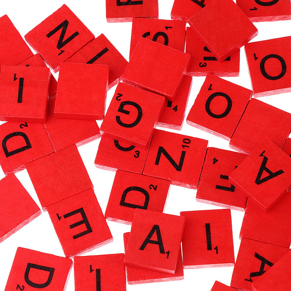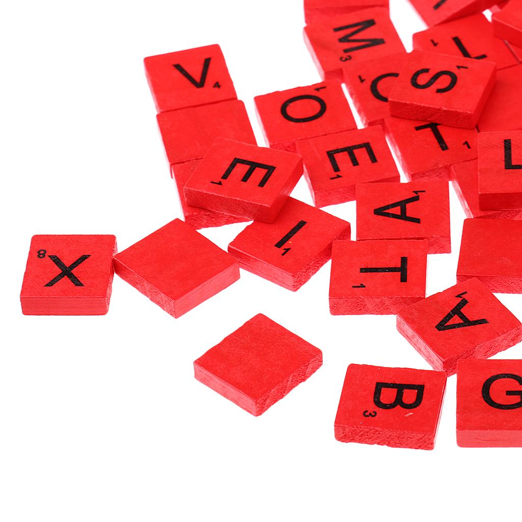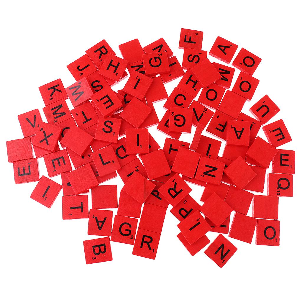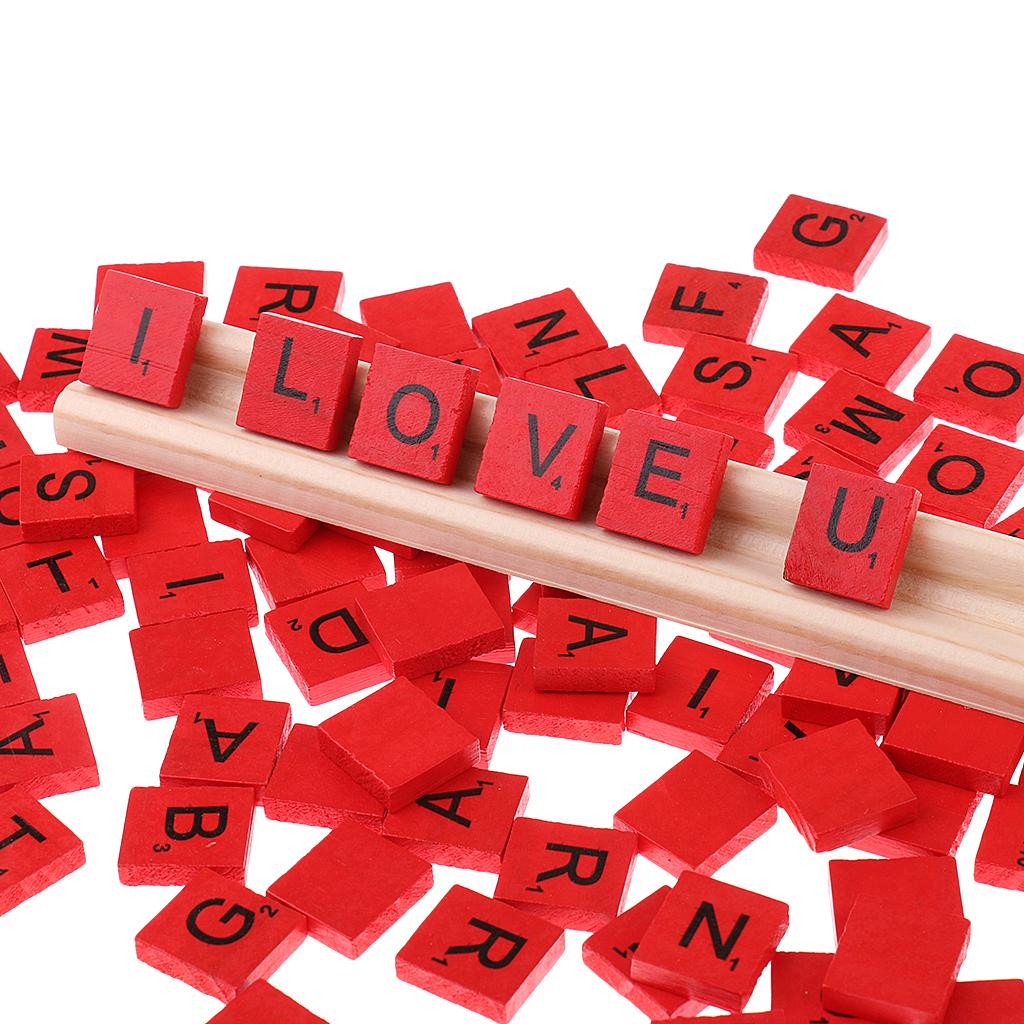 100pcs Wooden Red Letter Tiles with 2pcs Tile Racks for Crafts Scrapbook Game