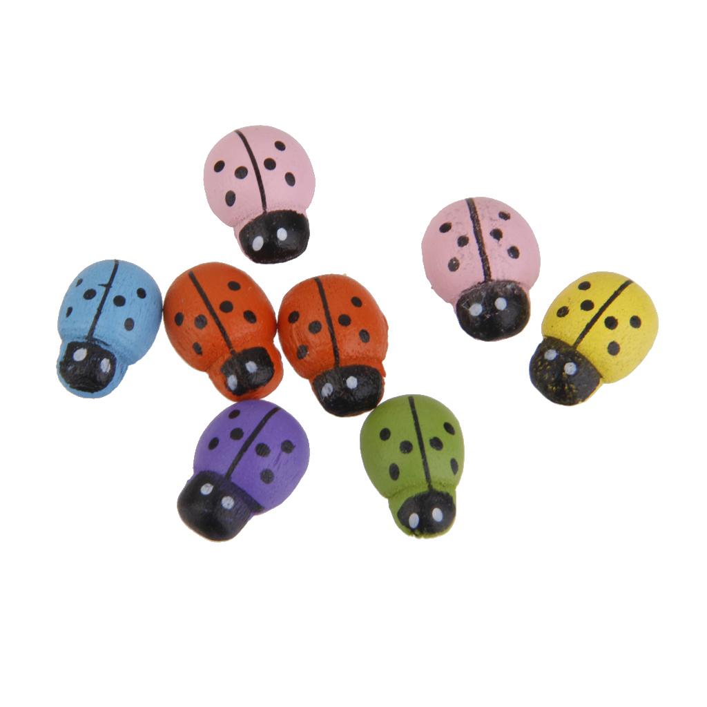 100x Colorful Wooden Ladybug Ladybird Flatback Embellishments Crafts DIY