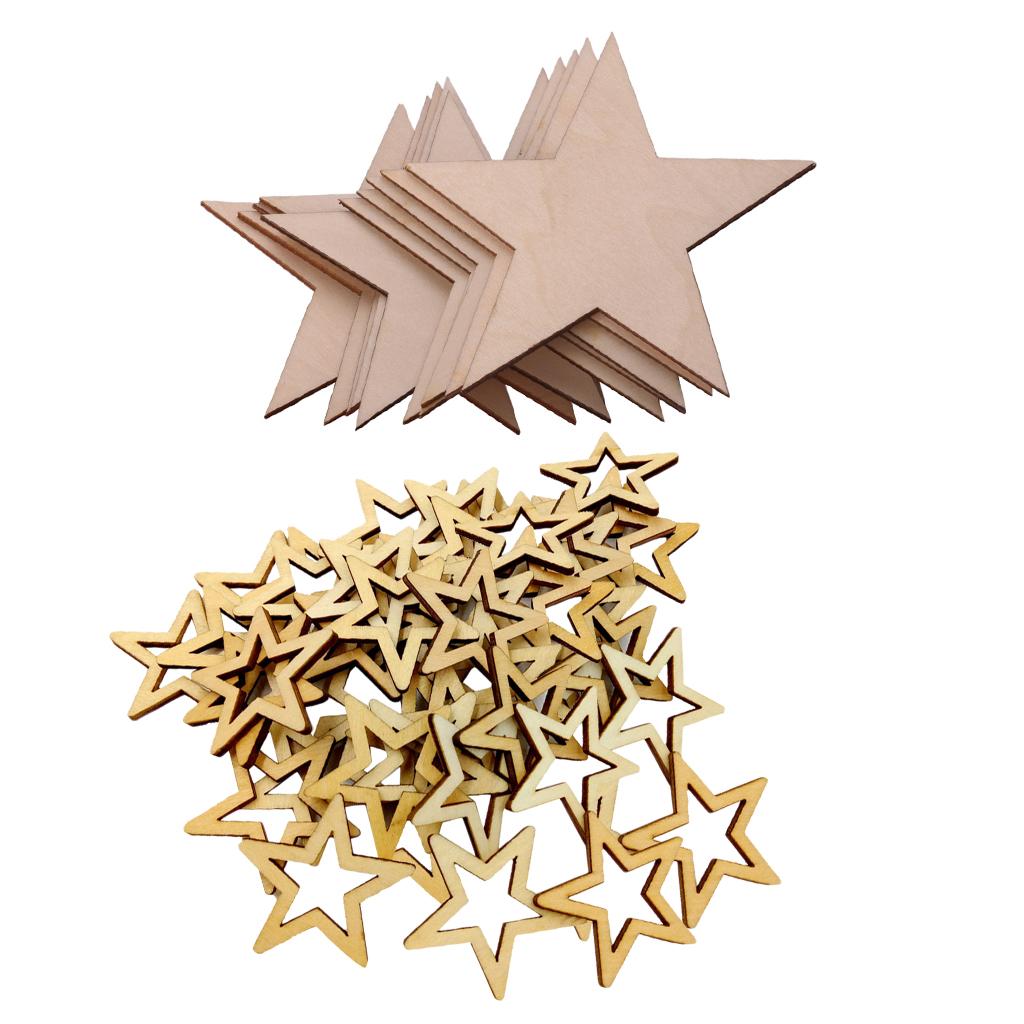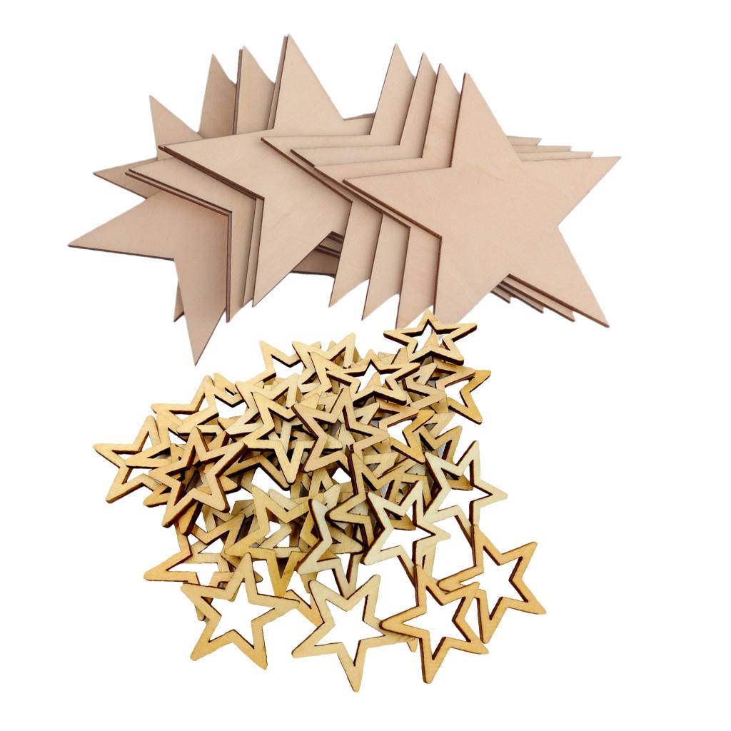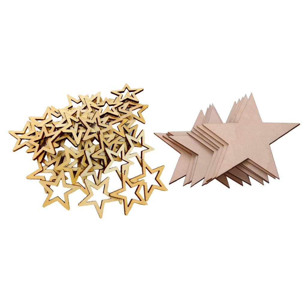 Mixed styles wood novety hollowed and blank star shape decorative embellishment .