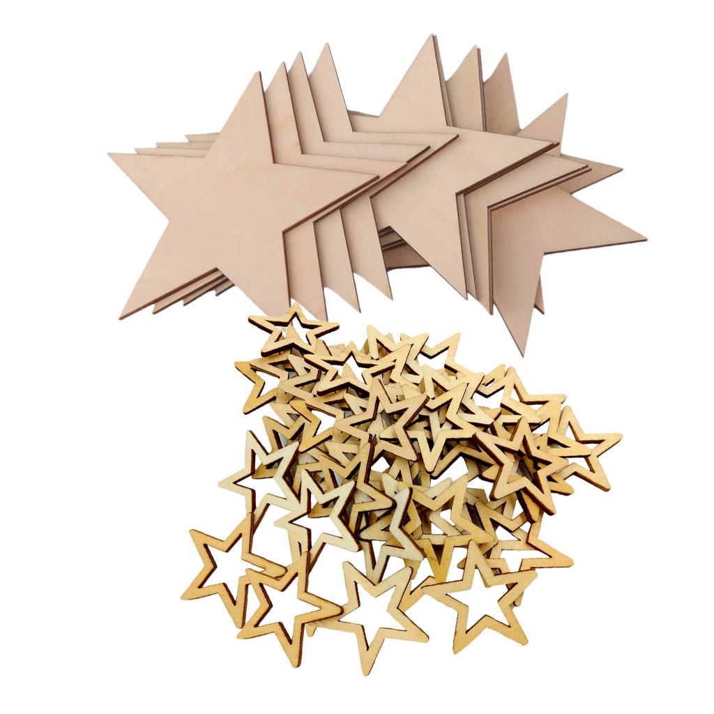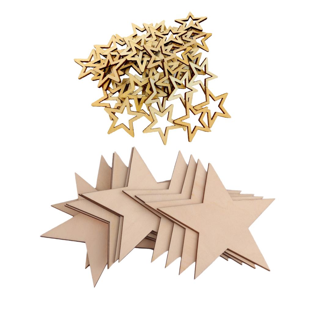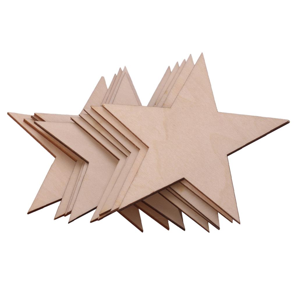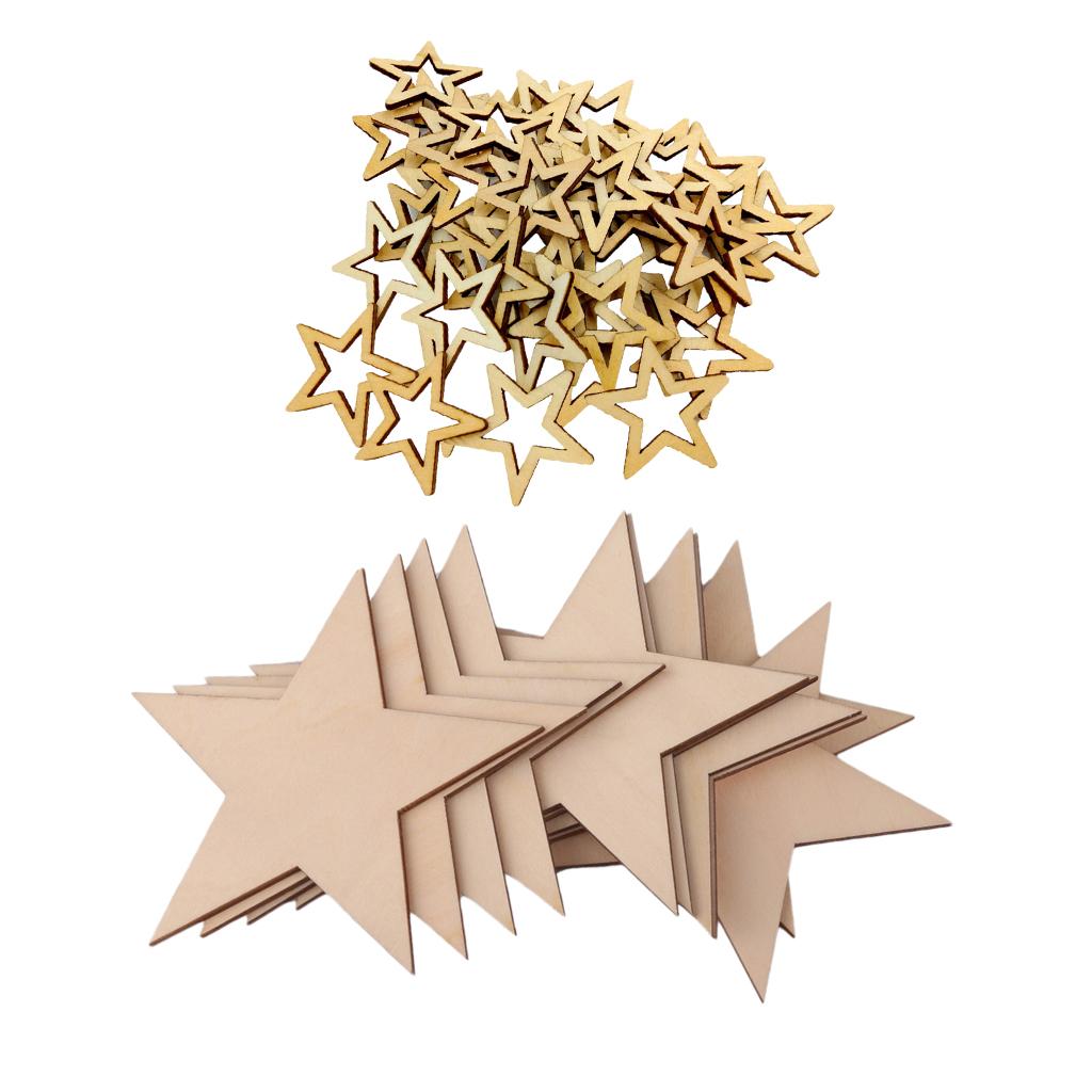Mixed styles wood novety hollowed and blank star shape decorative embellishment .
