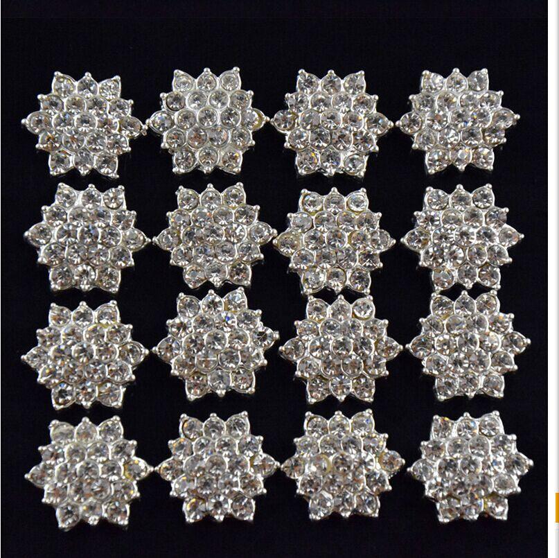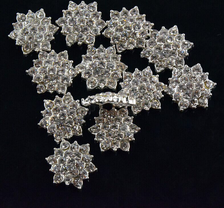 10pcs Clear Crystal Rhinestone Flower Buttons Flatback Embellishments 16mm