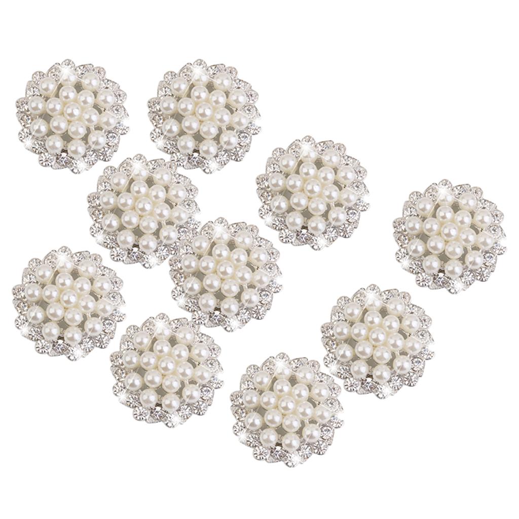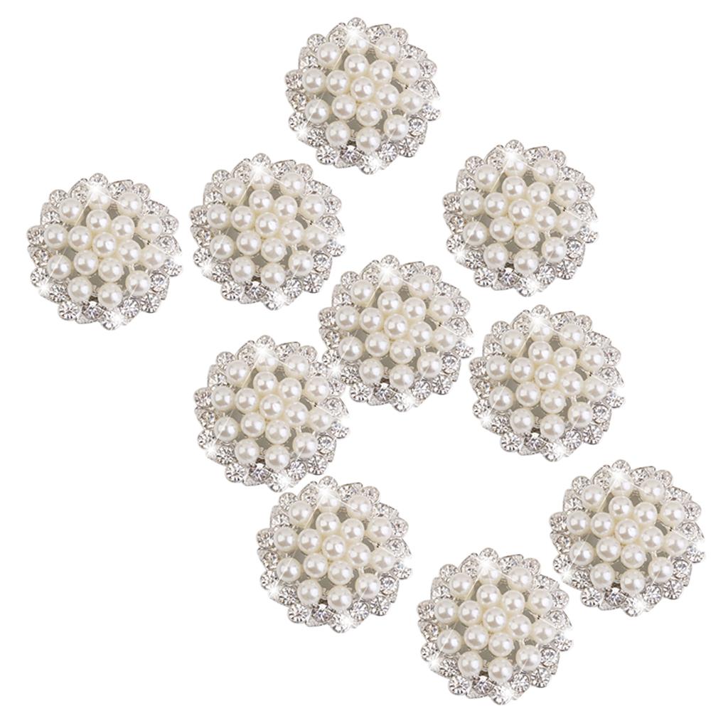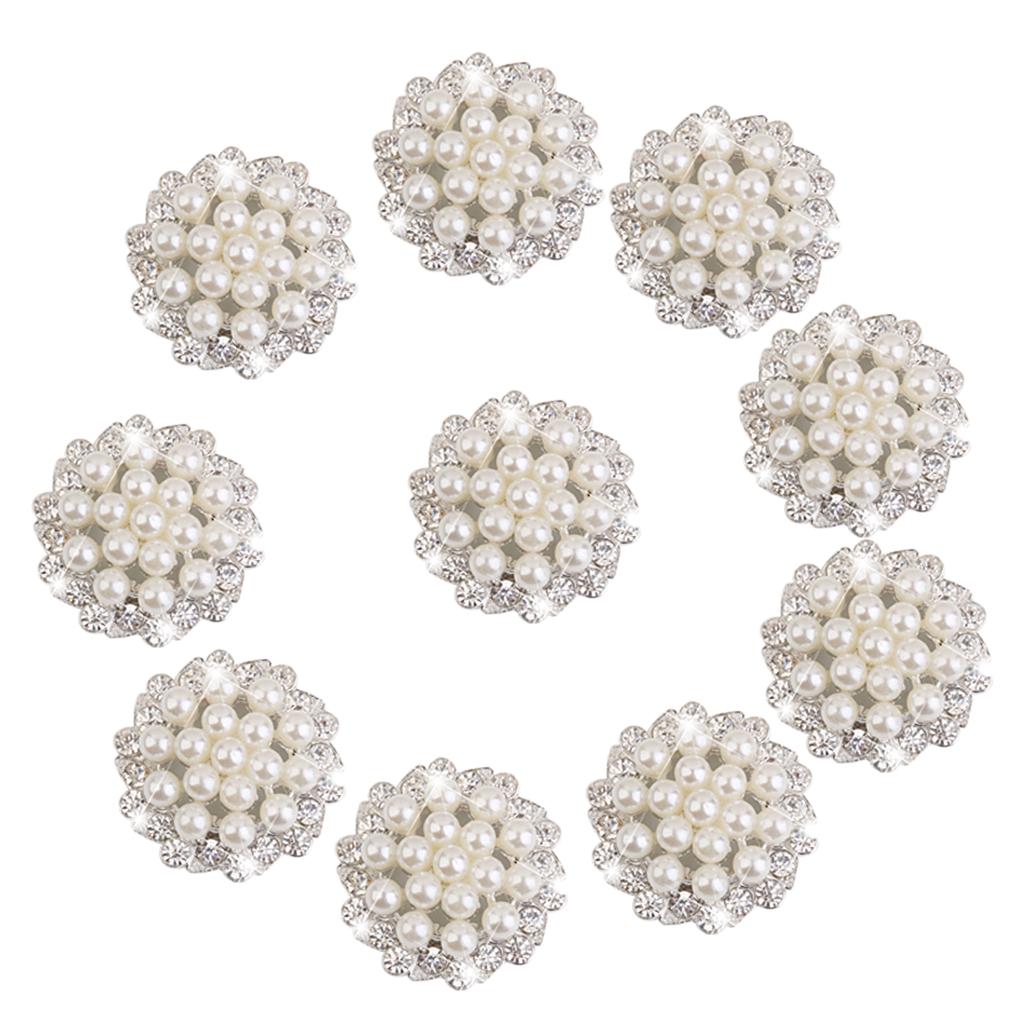 10pcs Crystal Rhinestone Pearl Flower Embellishments Button 30mm