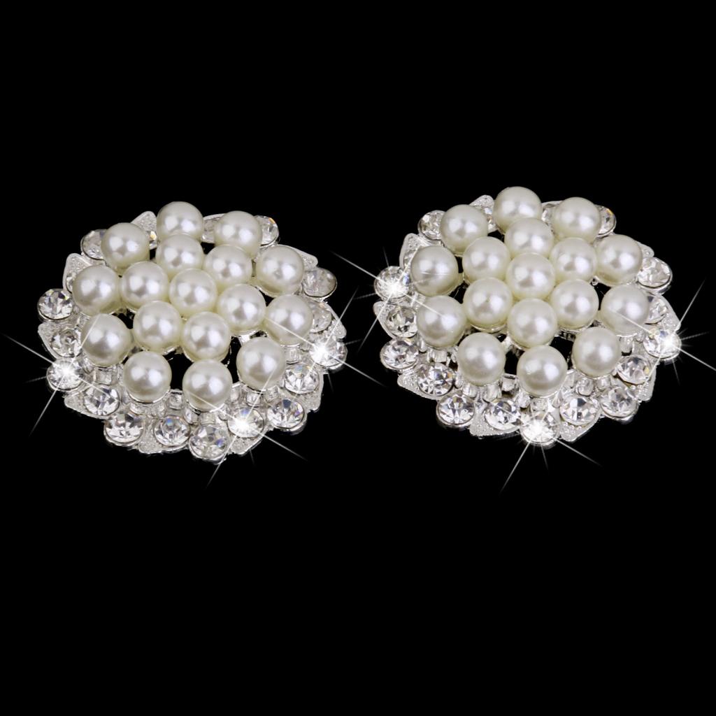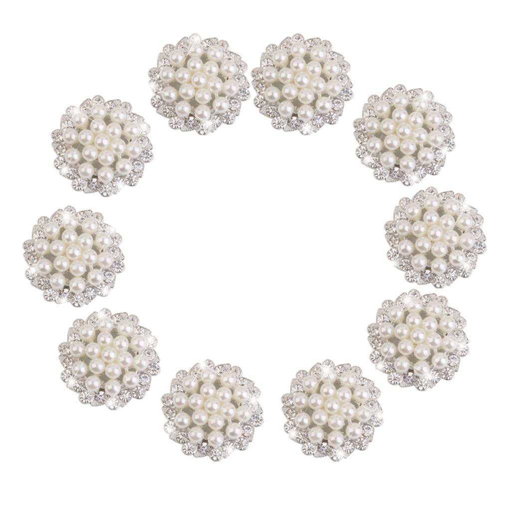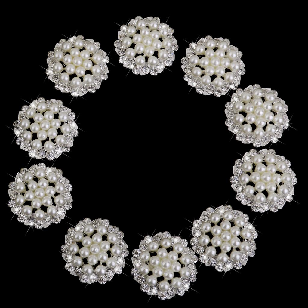 10pcs Crystal Rhinestone Pearl Flower Embellishments Button 30mm