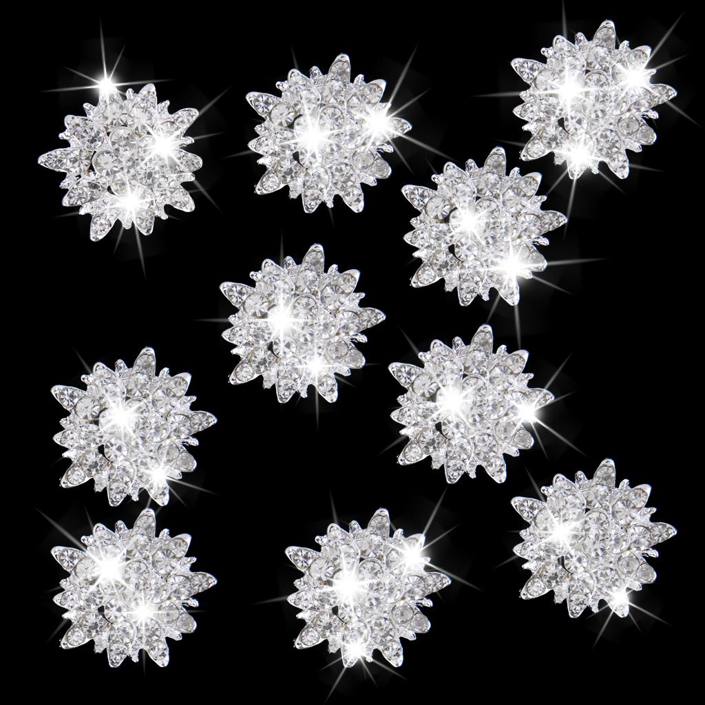 10pcs Crystal Rhinestone Sunflower Flower Buttons Embellishments 30mm