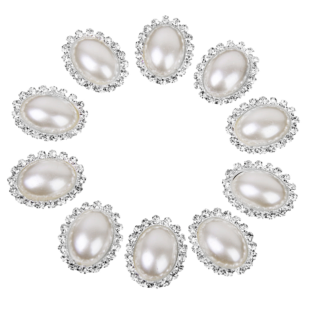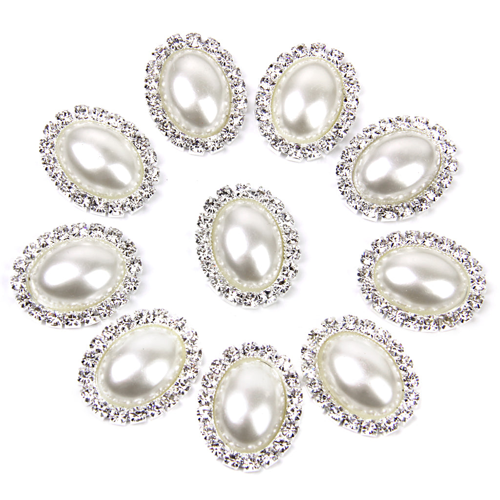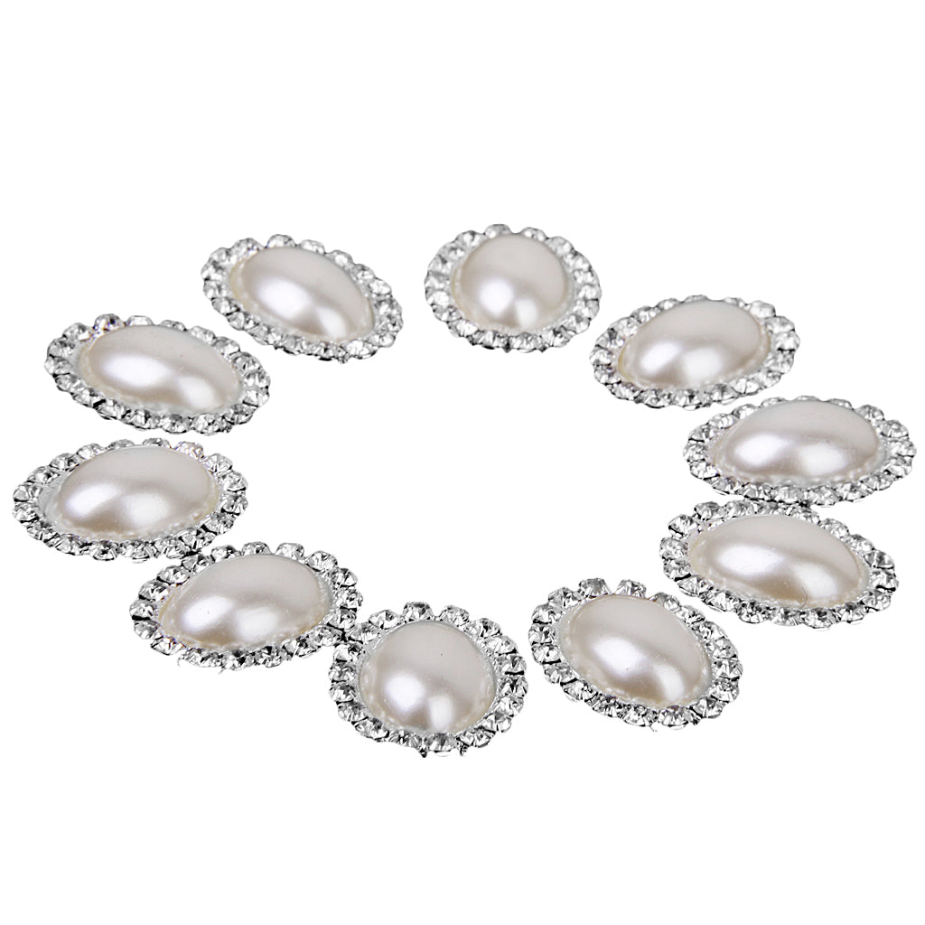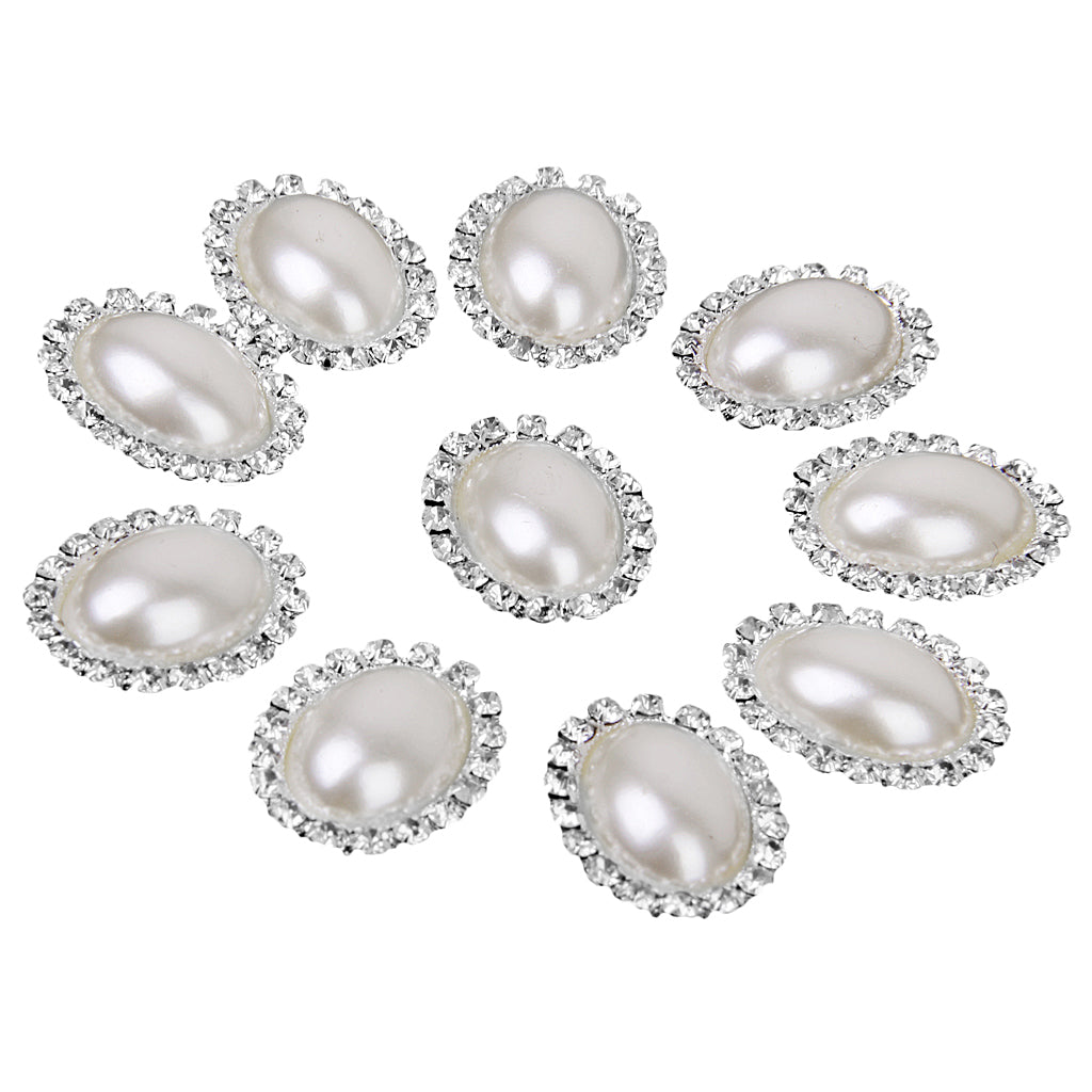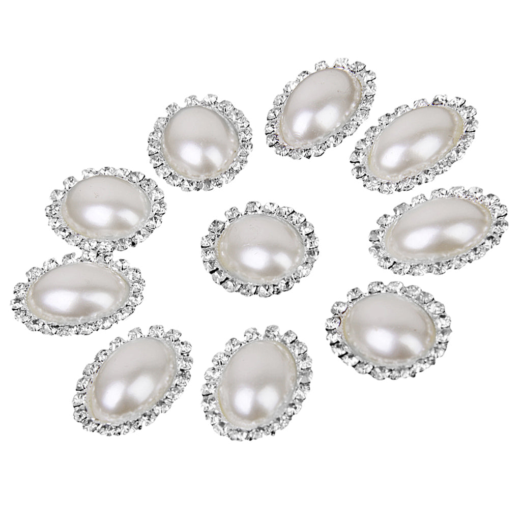 10pcs Oval Crystal Beige Faux Pearl Button Flatback Embellishment 20mm x 25mm