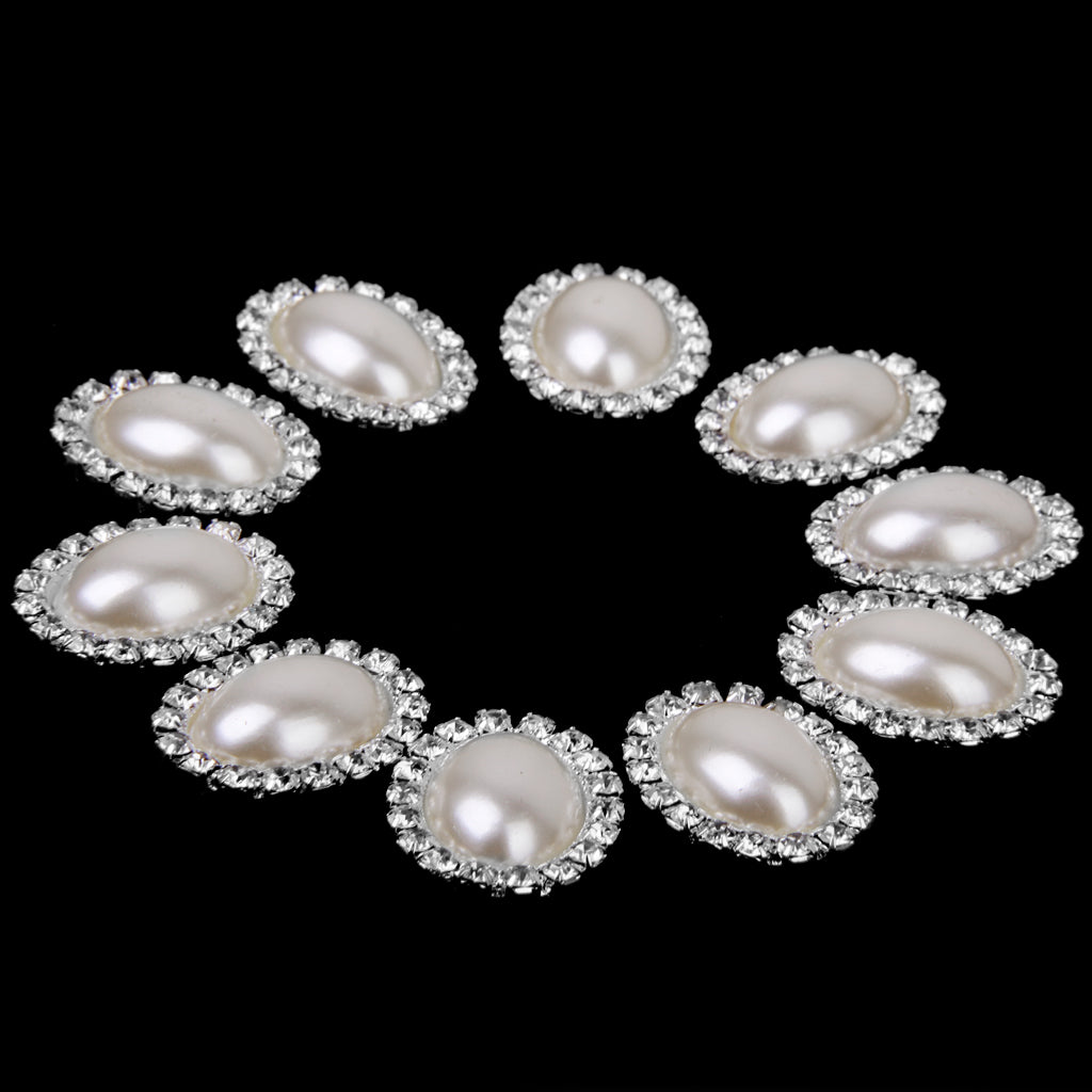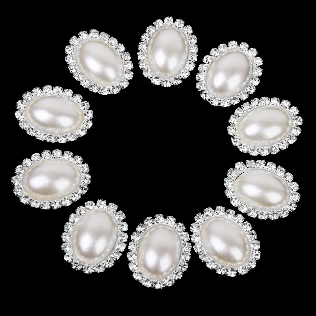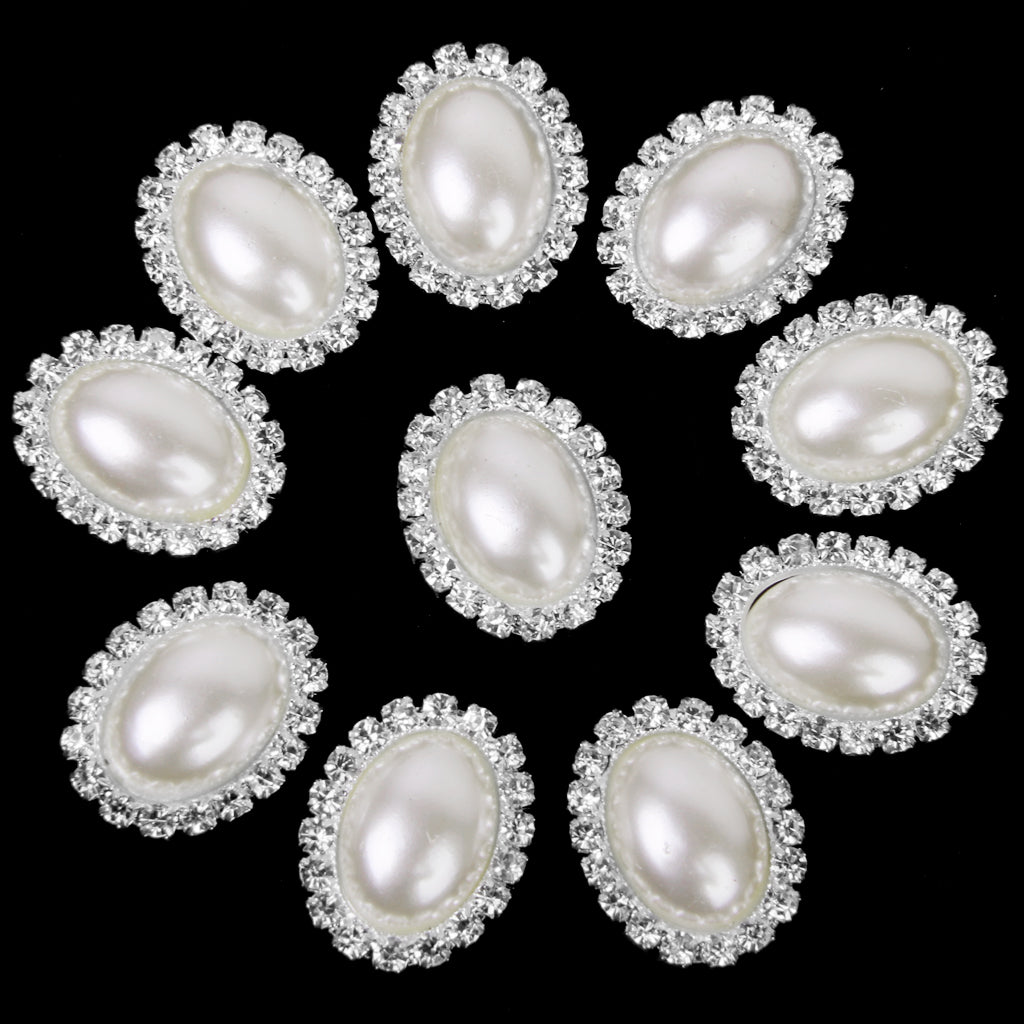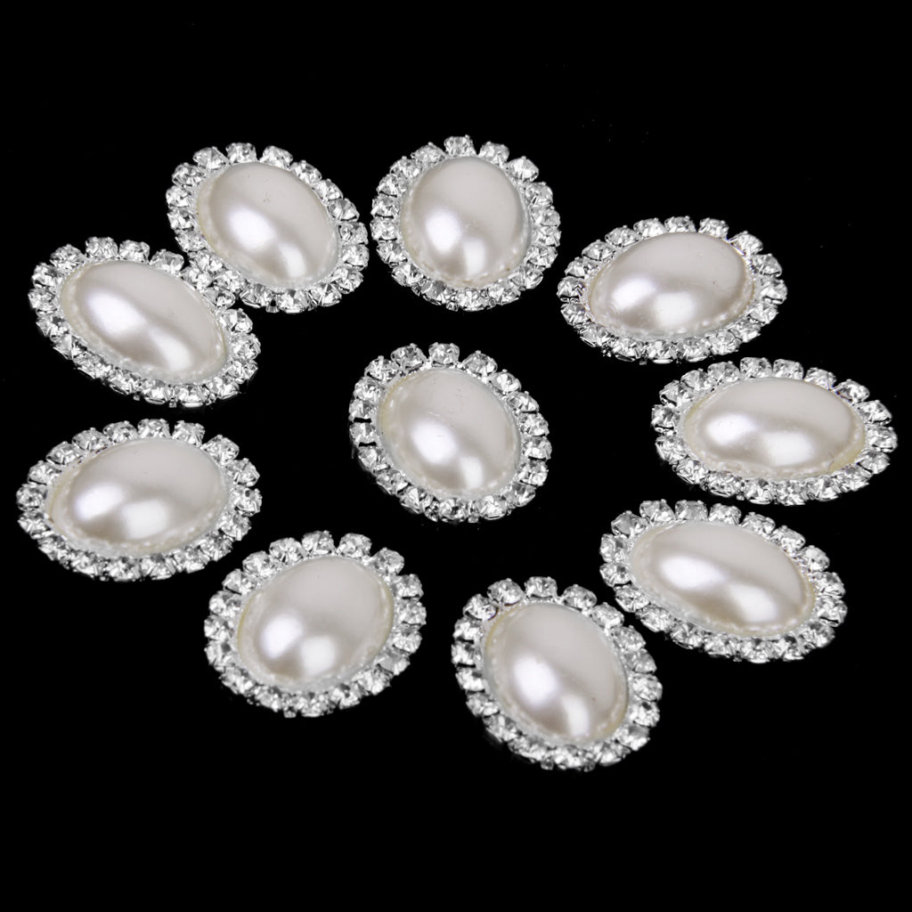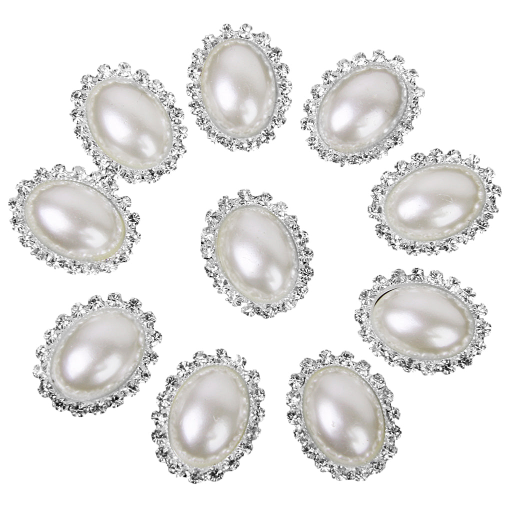 10pcs Oval Crystal Beige Faux Pearl Button Flatback Embellishment 20mm x 25mm