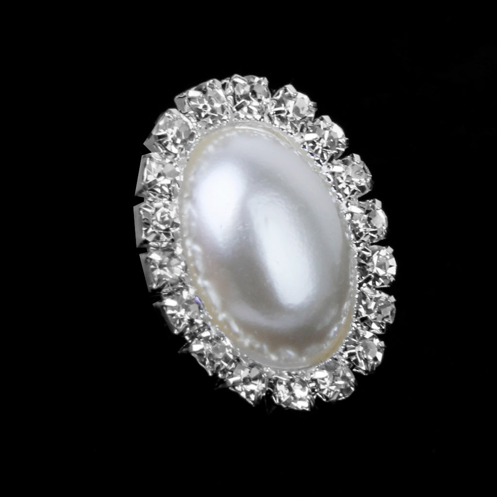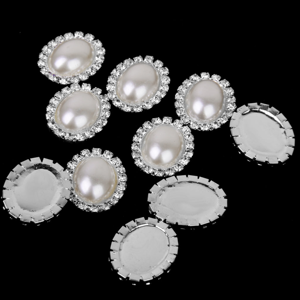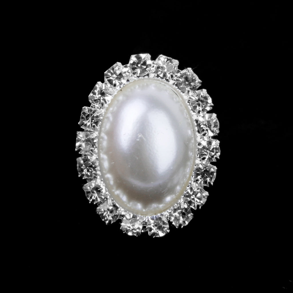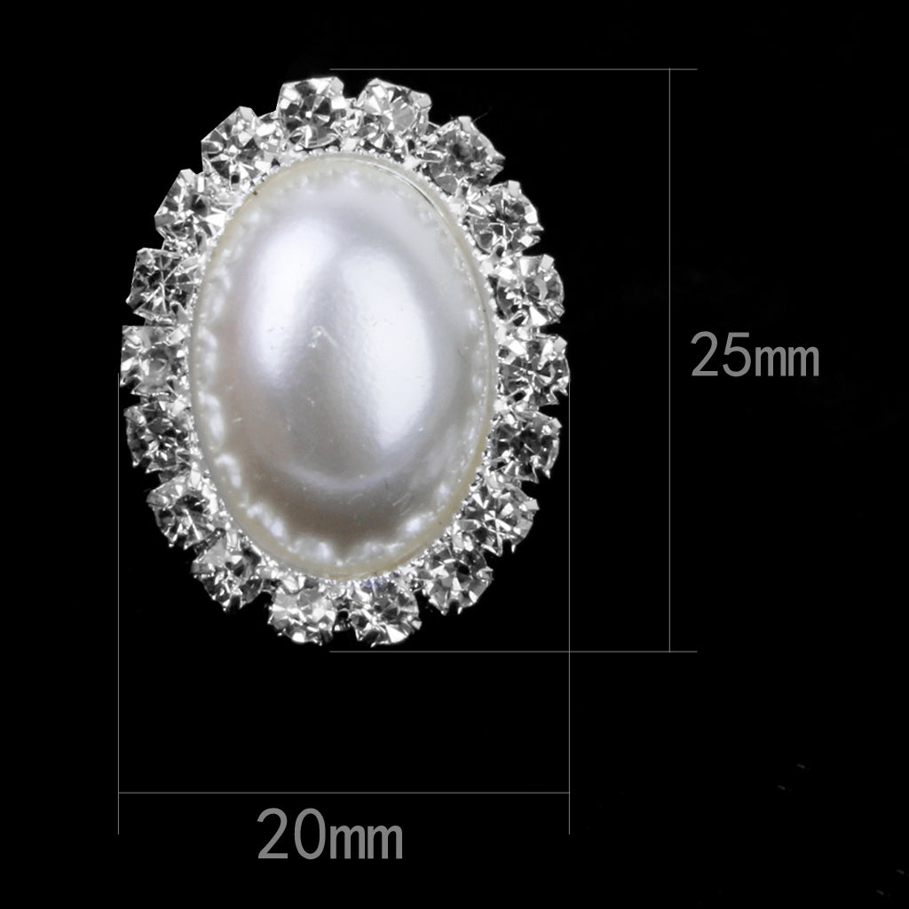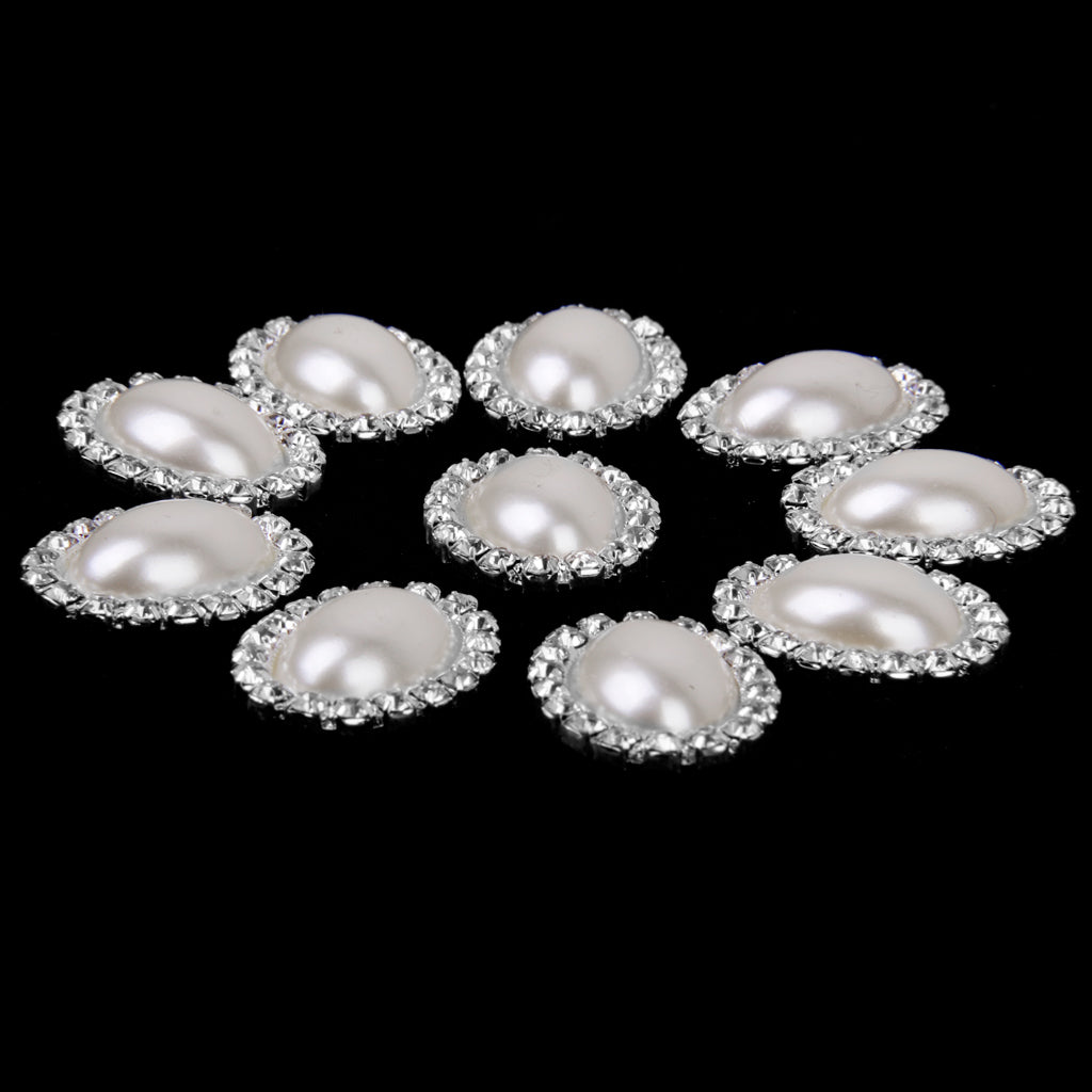 10pcs Oval Crystal Beige Faux Pearl Button Flatback Embellishment 20mm x 25mm