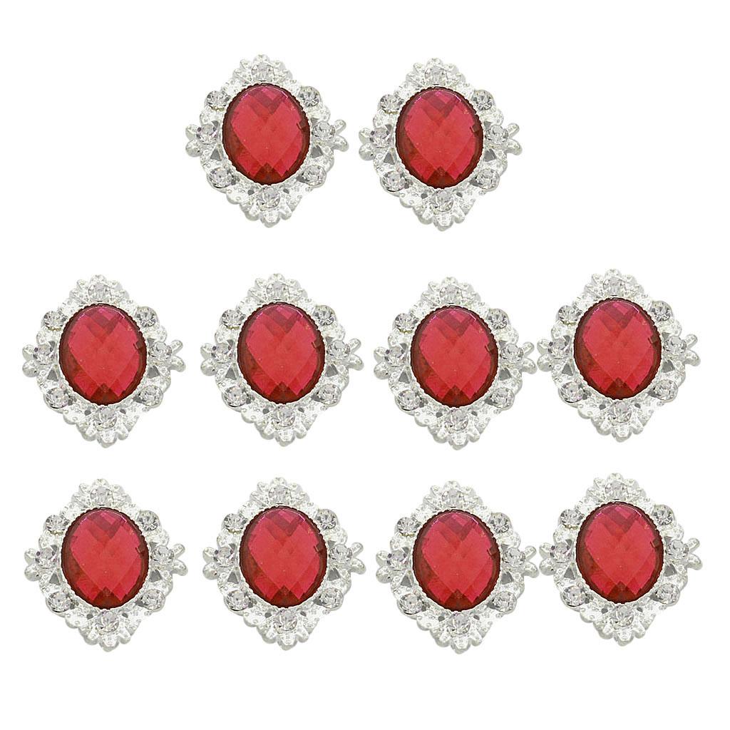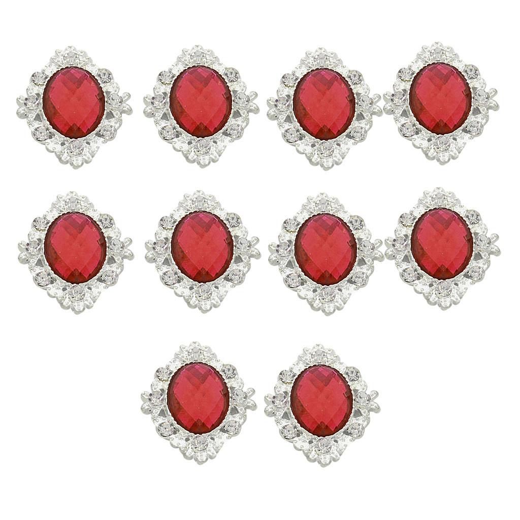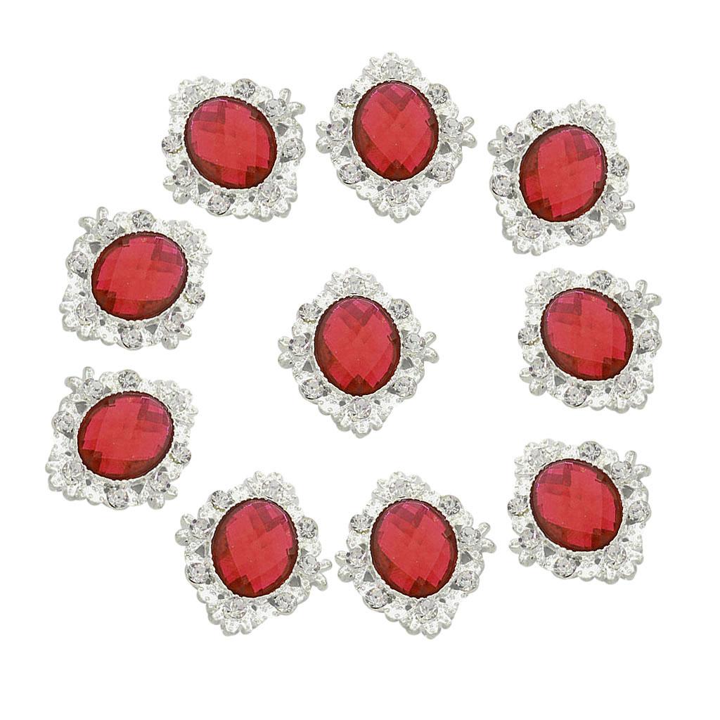10pcs Oval Flatback Acrylic Crystal Rhinestone Button DIY Craft Dark Red