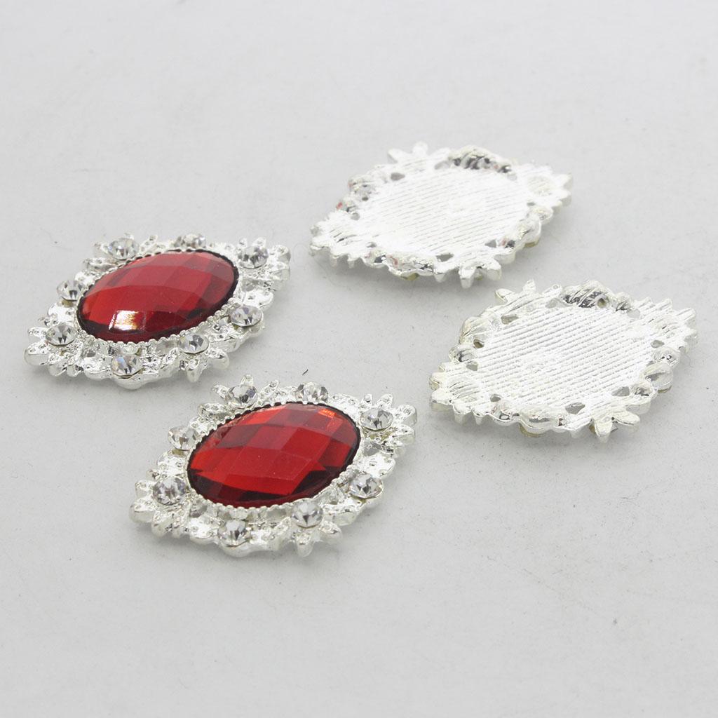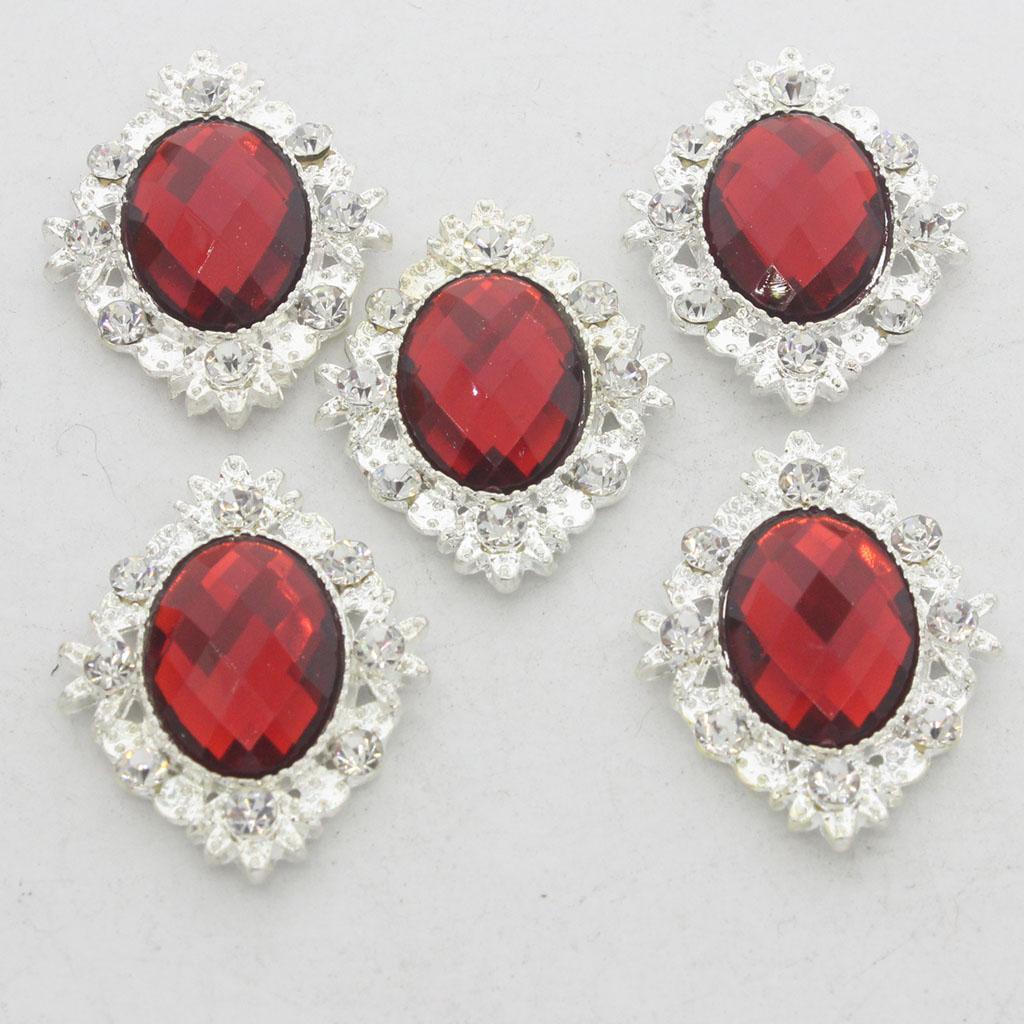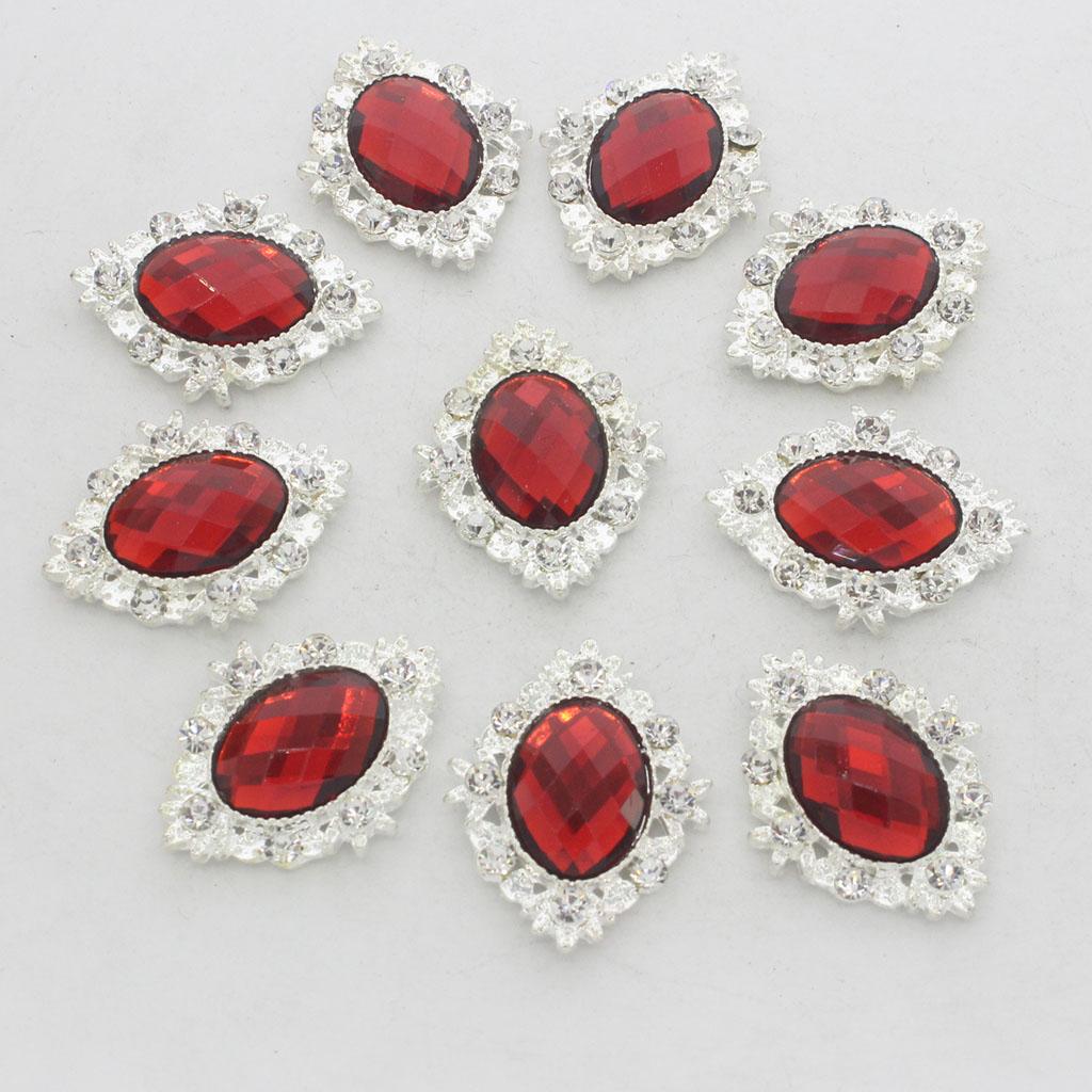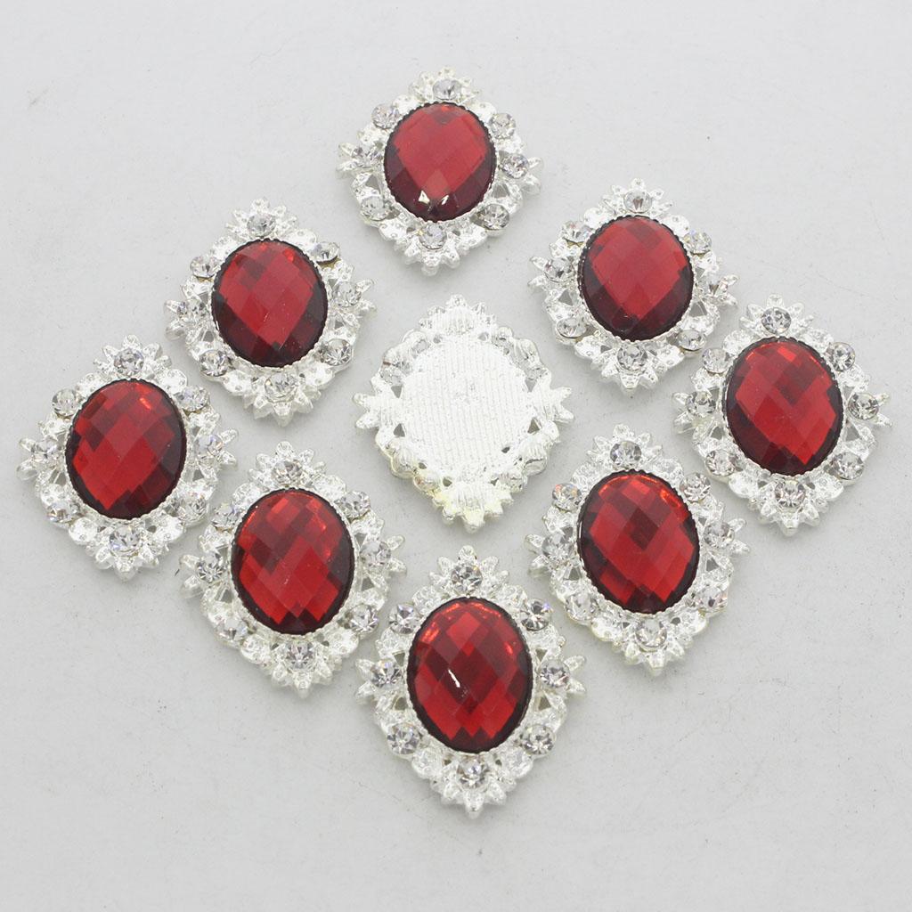 10pcs Oval Flatback Acrylic Crystal Rhinestone Button DIY Craft Dark Red