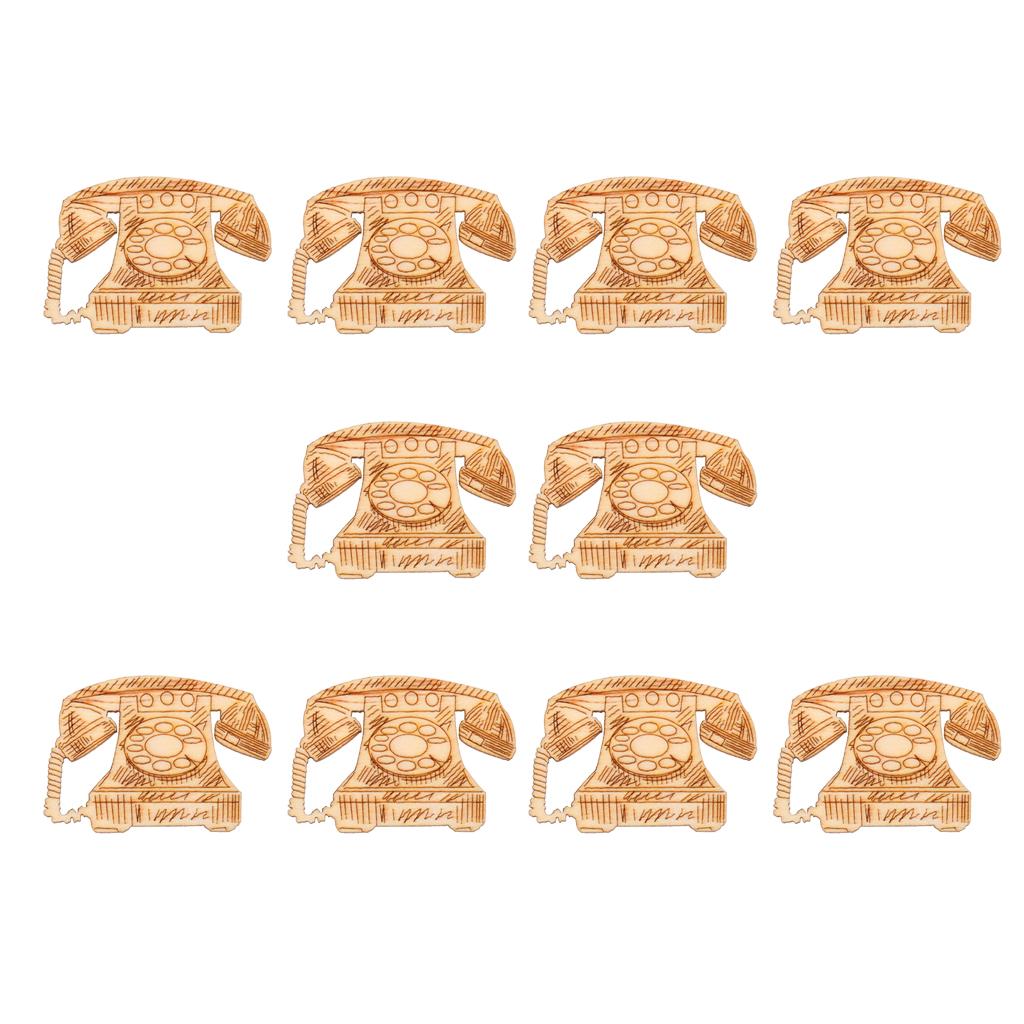 10pcs Phone Shaped Rustic Wooden Pieces Slices Wooden Embellishment Wedding Table Scatter Decoration Crafts Children DIY Manual Patch