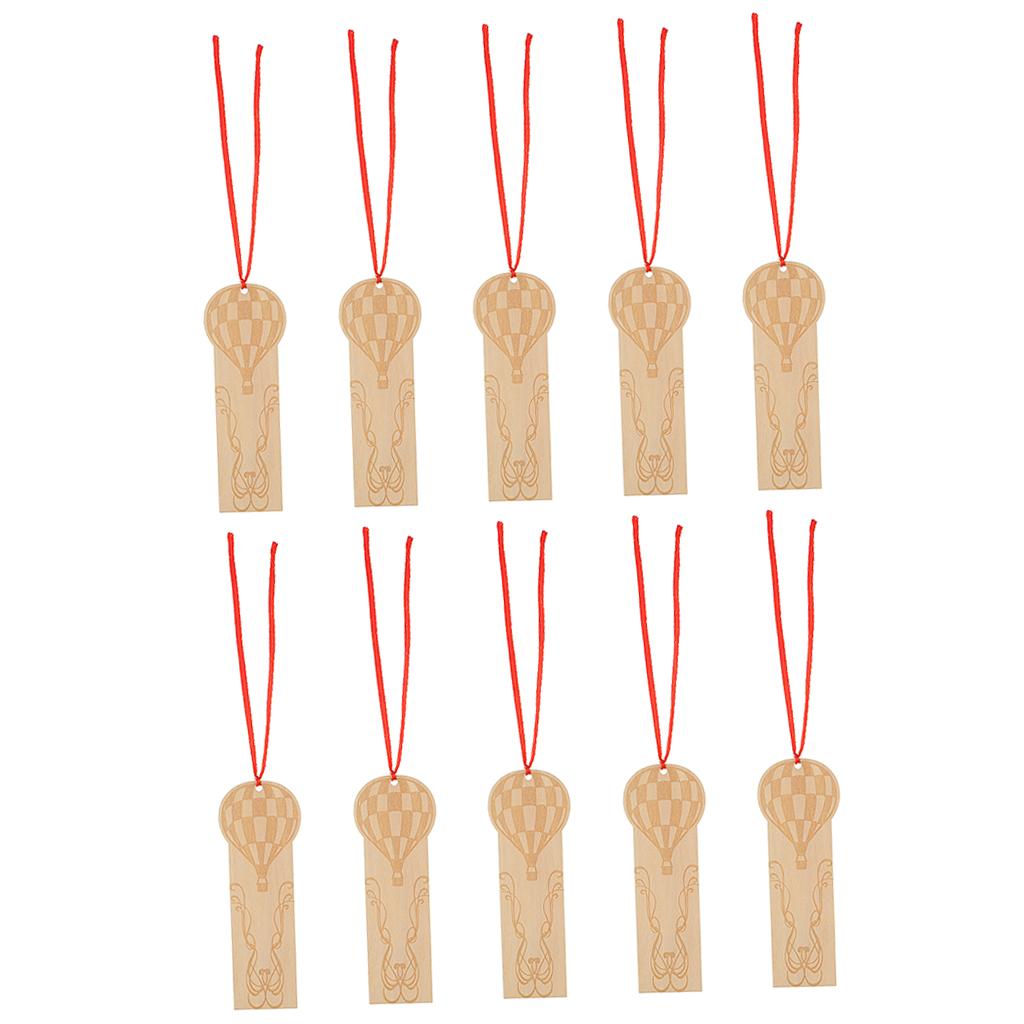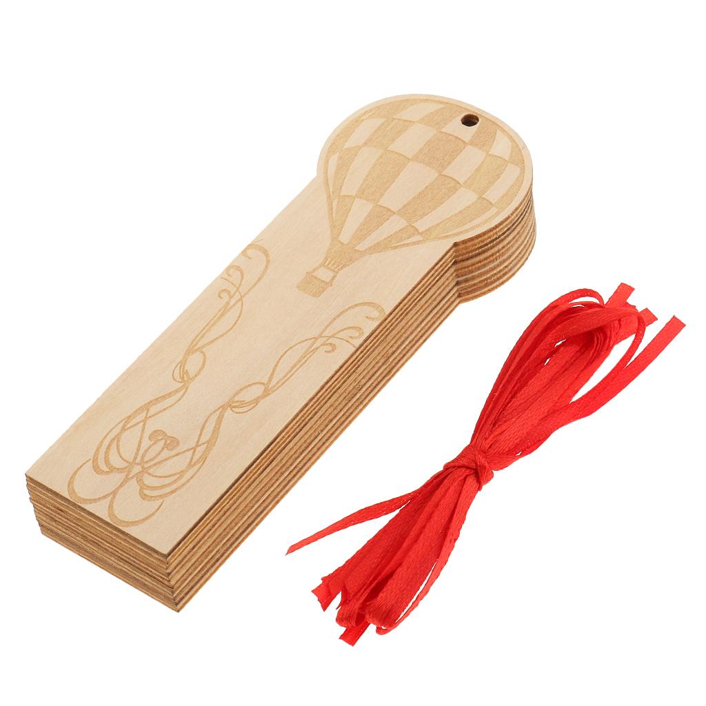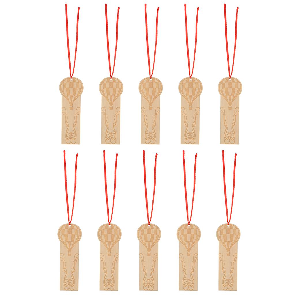 Unfinished plain hot-air balloon wood tags with red ribbon rope