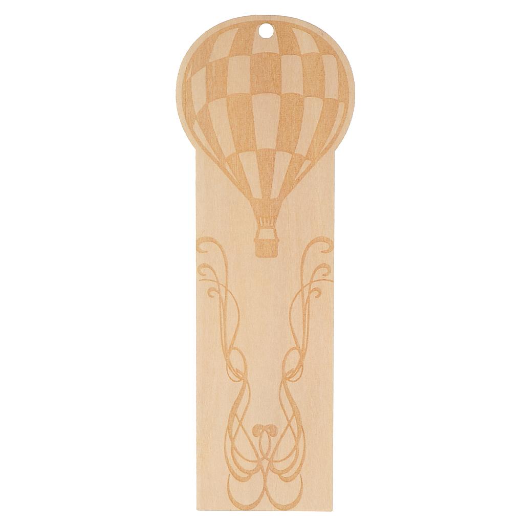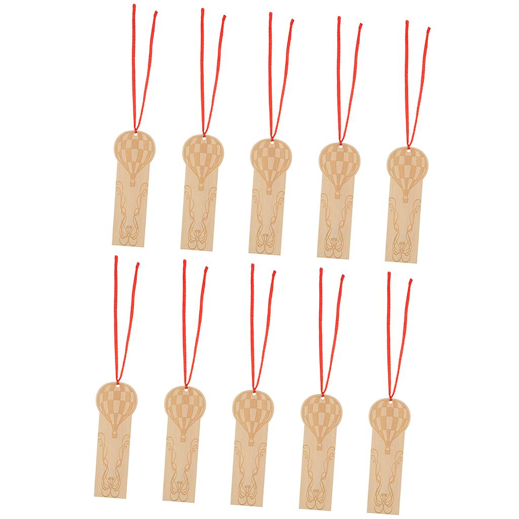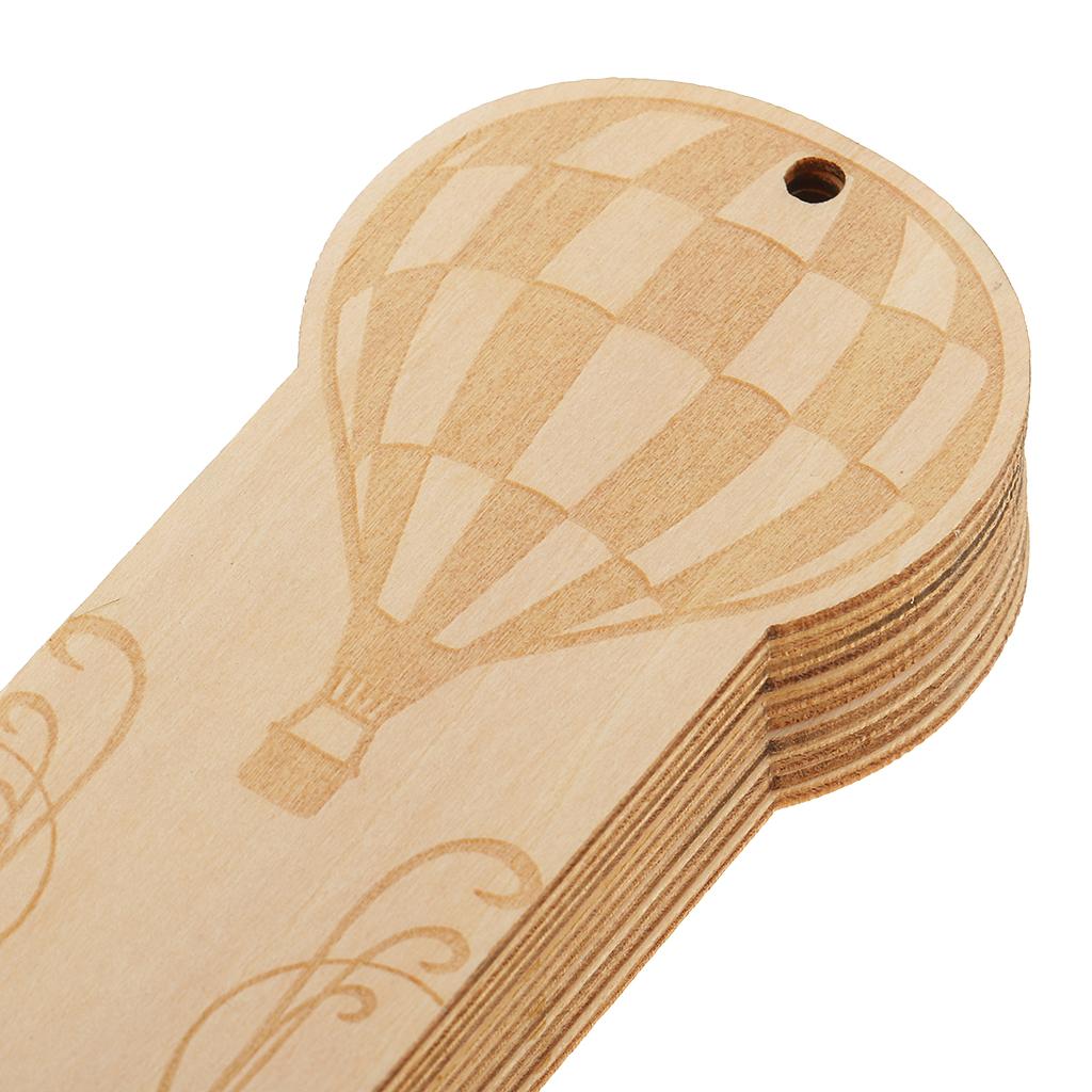 Unfinished plain hot-air balloon wood tags with red ribbon rope