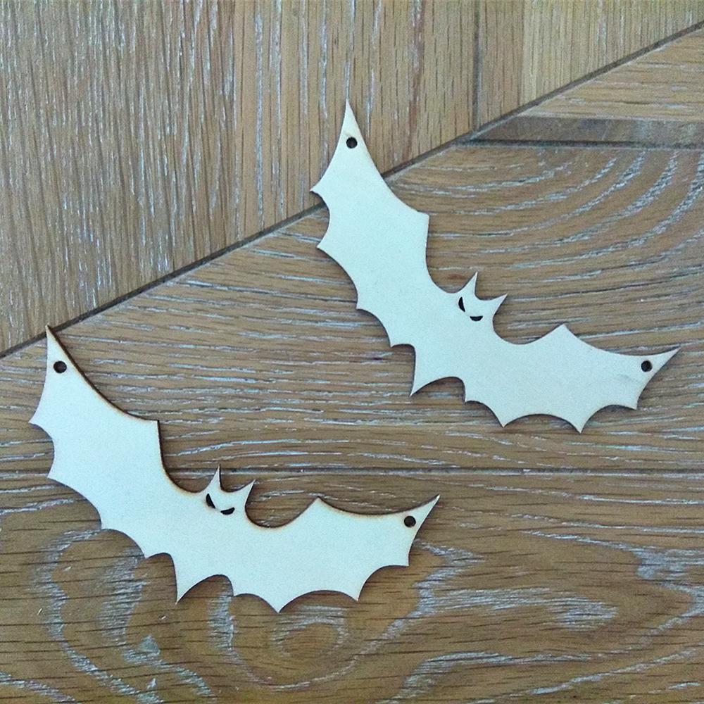 10x Unfinished Wooden Bat Shapes Craft Halloween House Decoration Hanger DIY