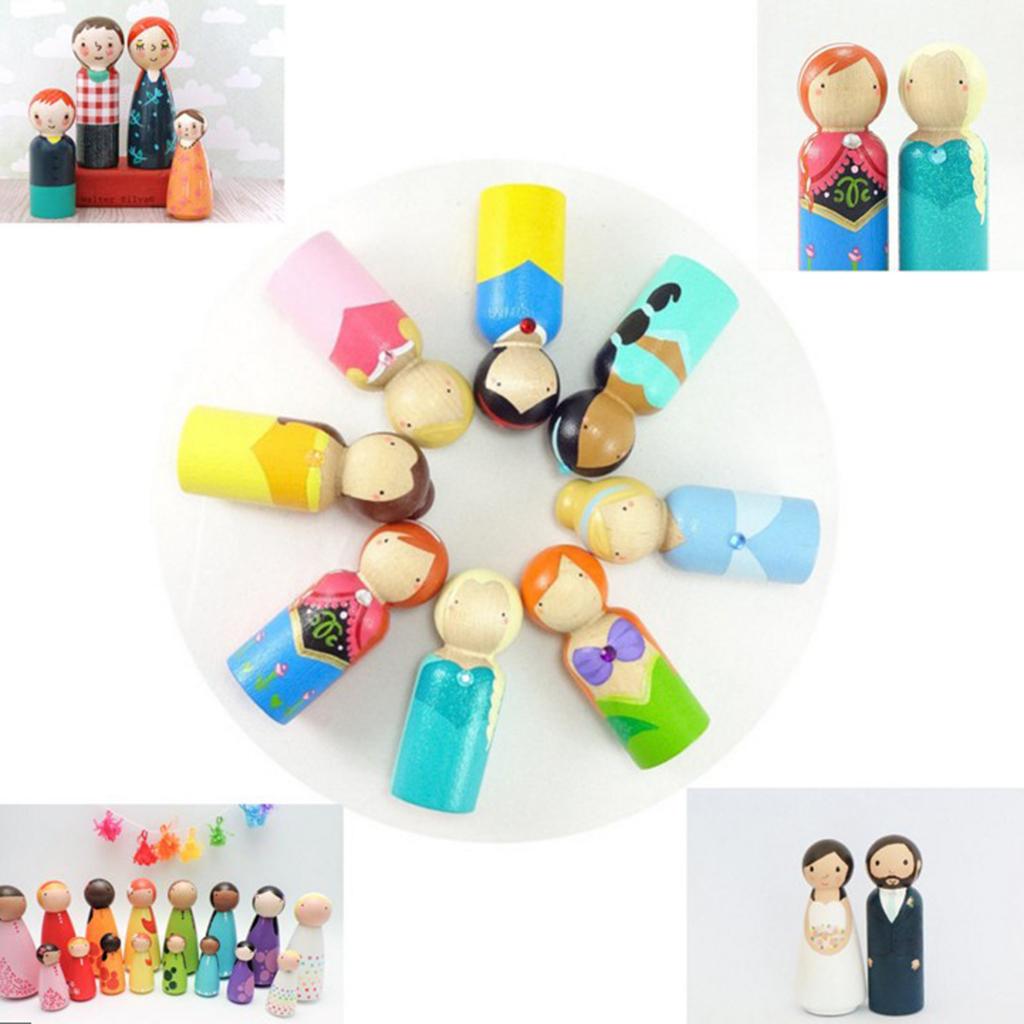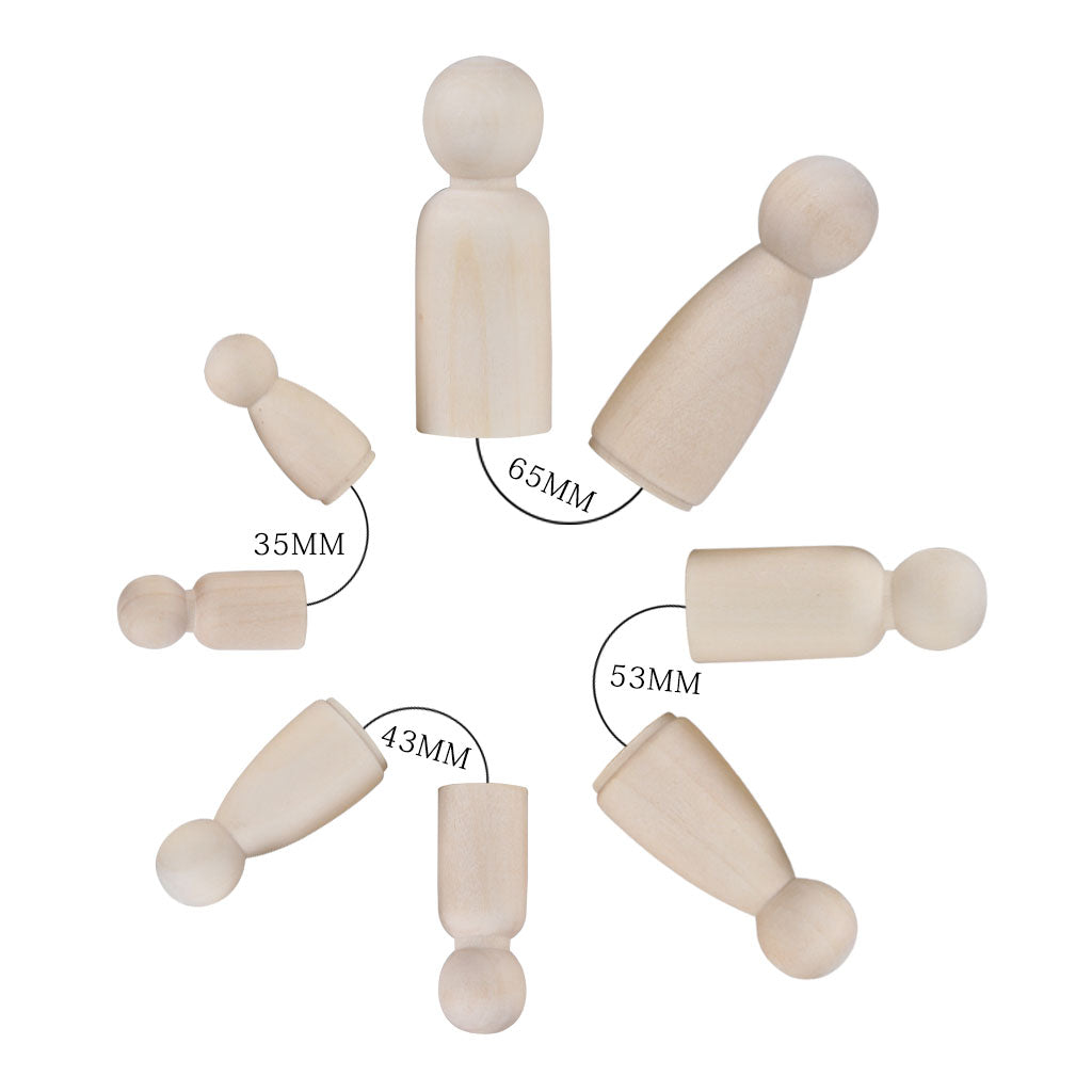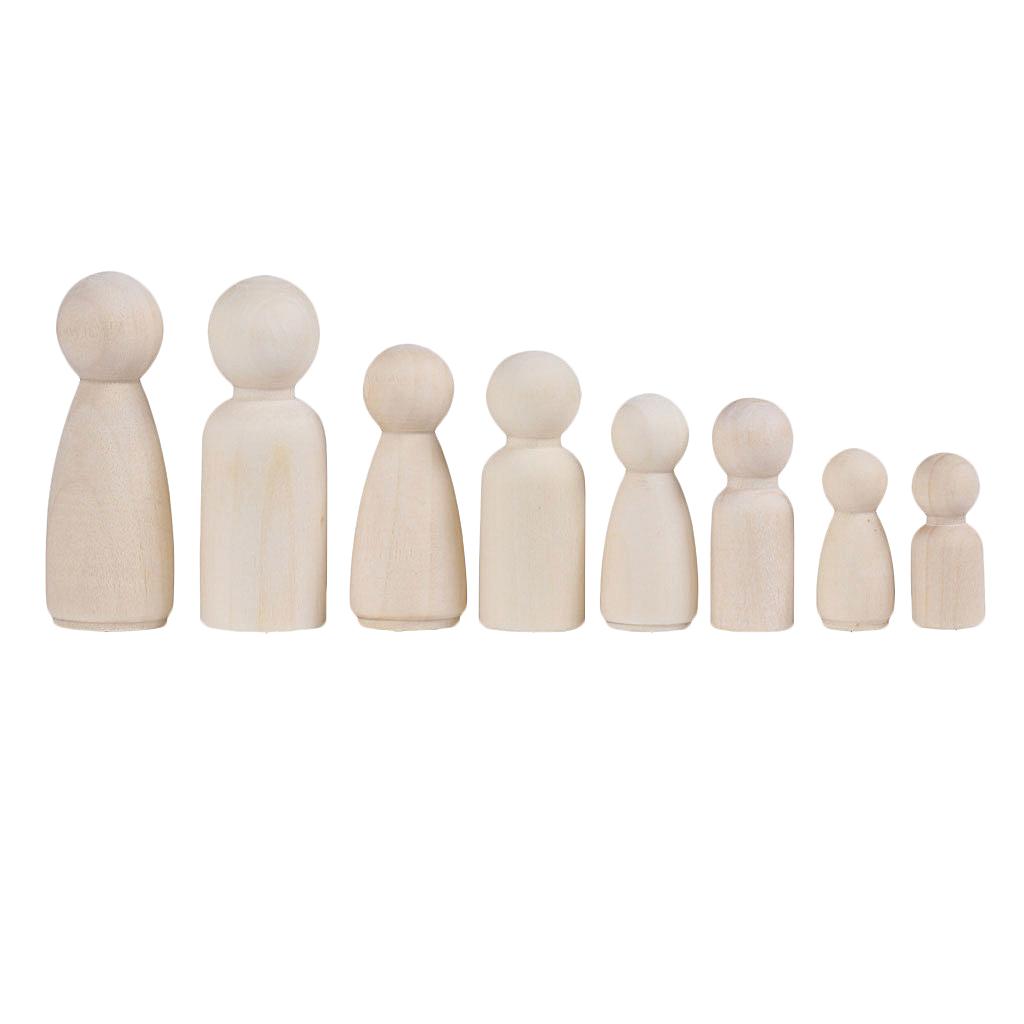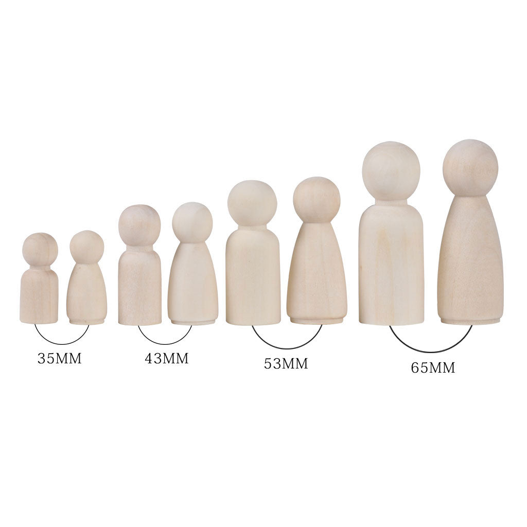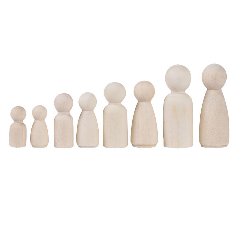 12 Pieces 4 Size 2 Shapes / Gender Natural Wood Peg Dolls Unpainted Kids Birthday Gifts Handmade Unfinished Weddings Cake Dolls Decoration Dolls Home Ornaments Toys Set