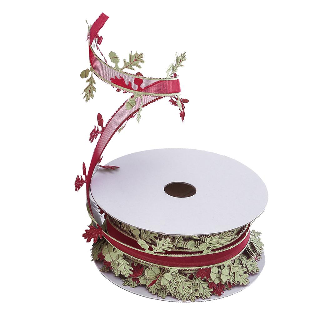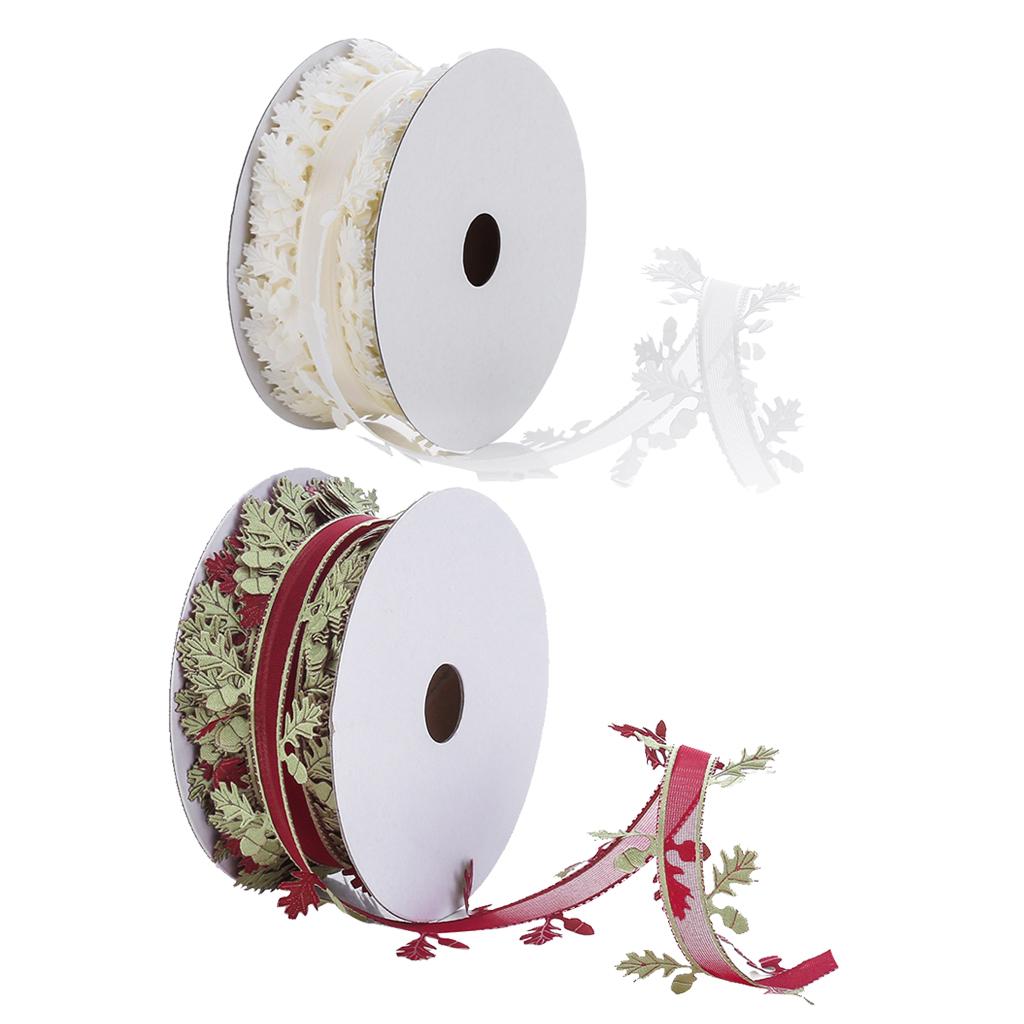 20 Meter Leaf Trim Lace Ribbon Embellishment for Gift Wrapping Red and green
