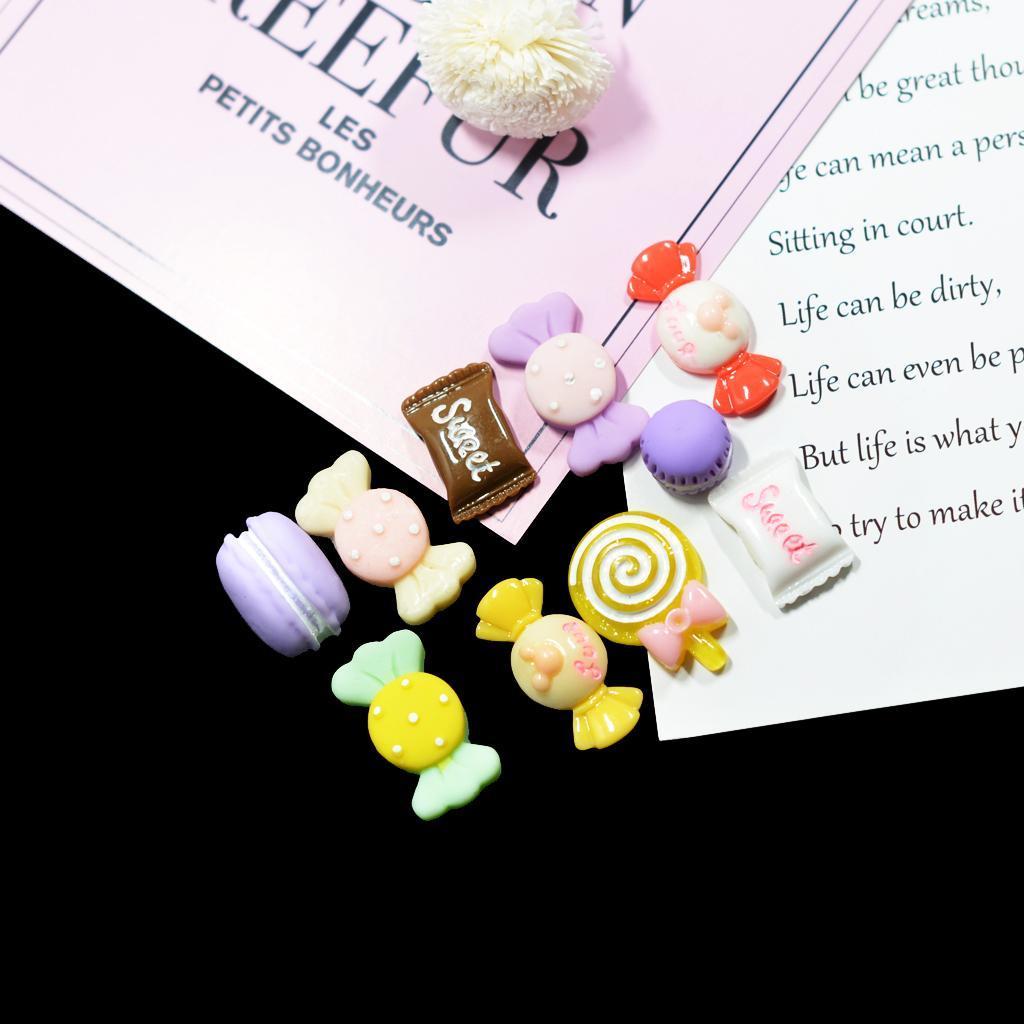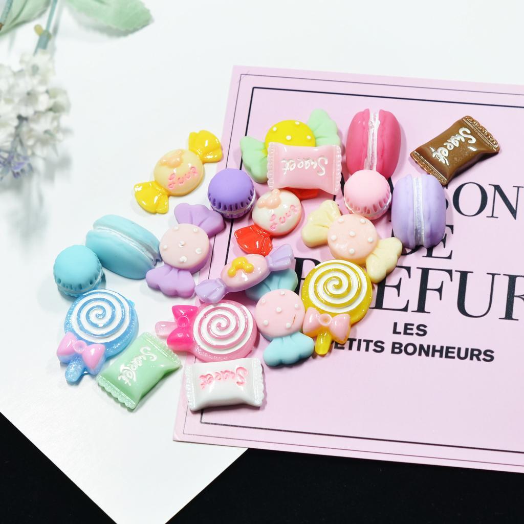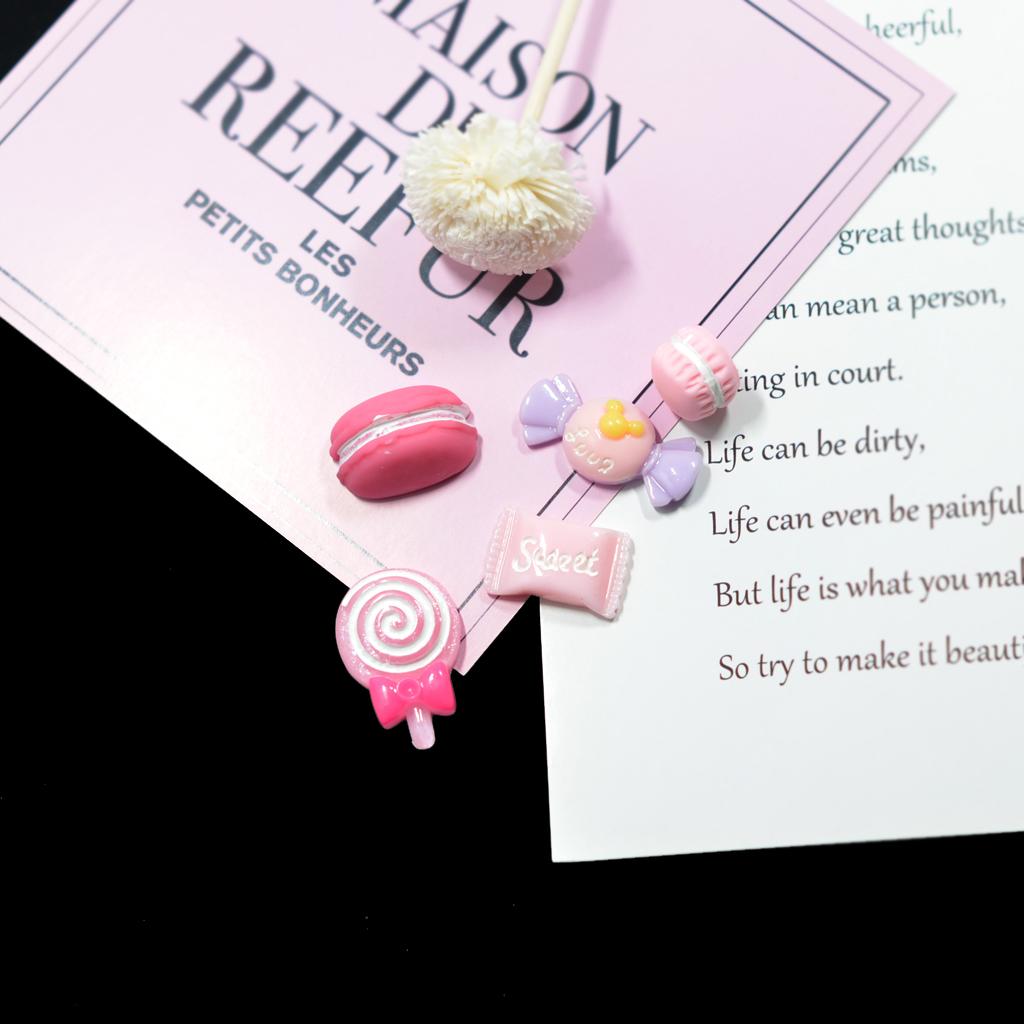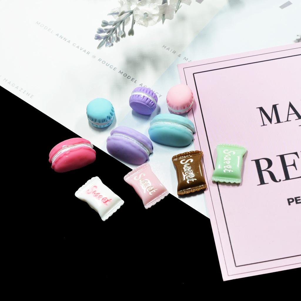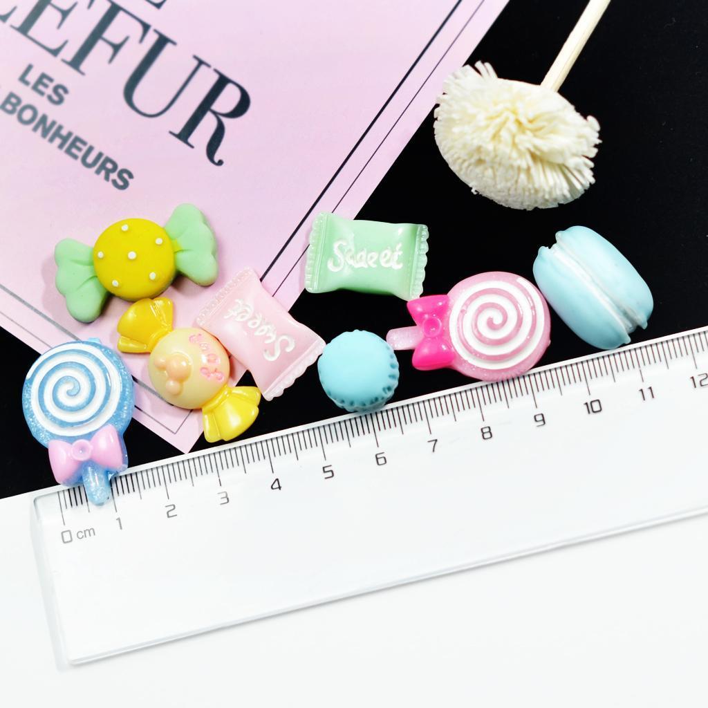 Size: Approx. Macarons 15x10mm; 25x16x13mm; Lollippop: 20x30x6mm Rectangle Candy: 23x16x6mm Candy: 31x14x7mm; Rubber colors candy: 31x15x7mm