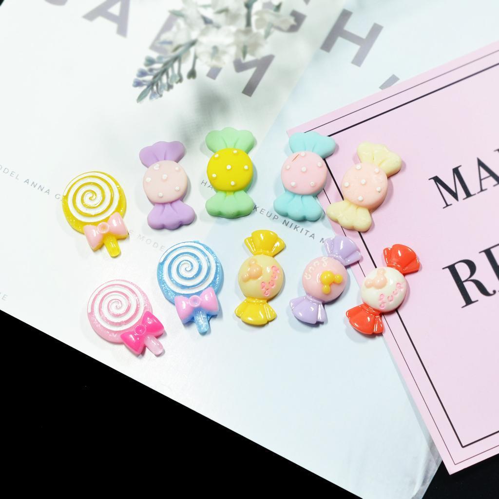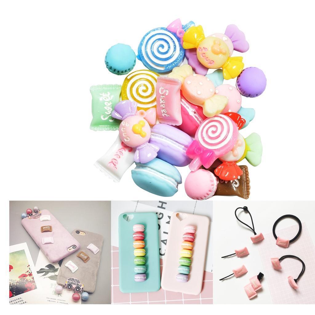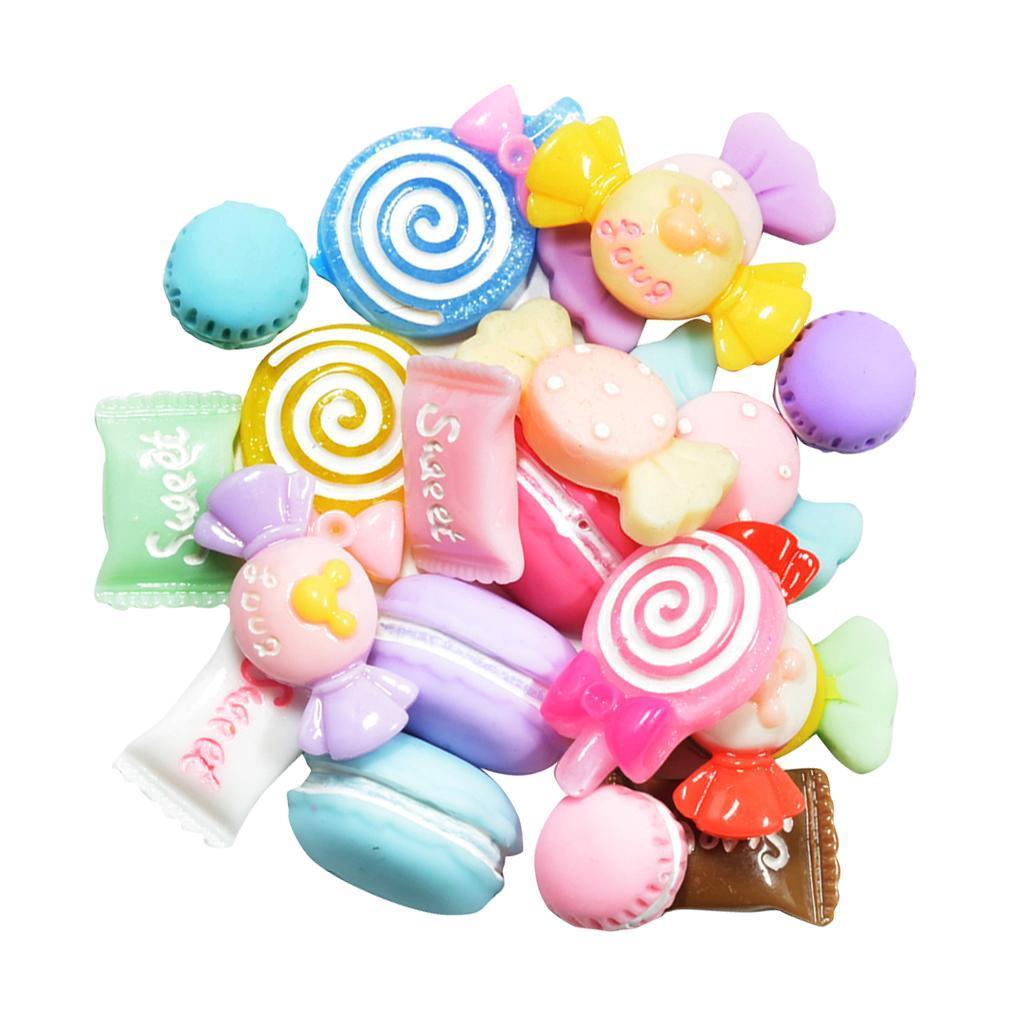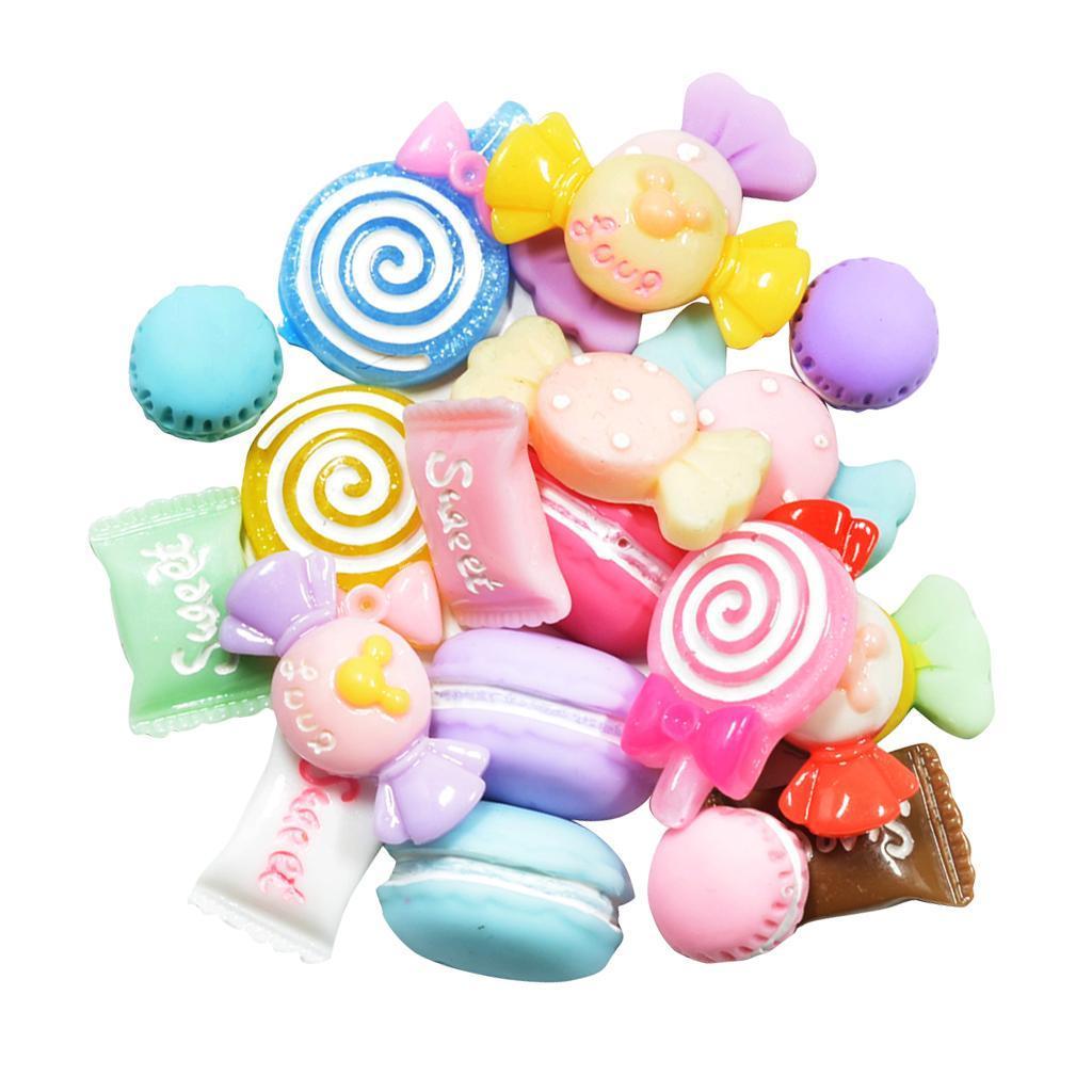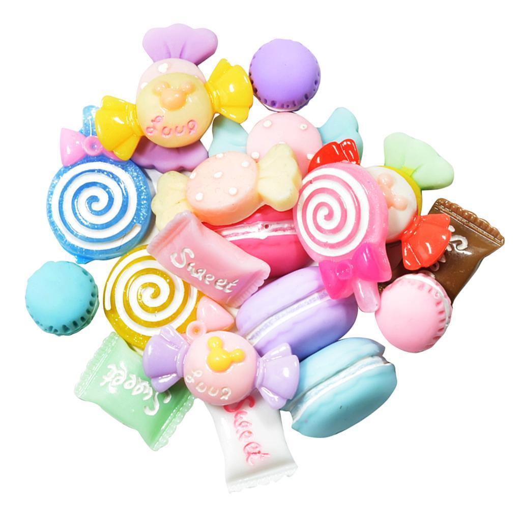 Size: Approx. Macarons 15x10mm; 25x16x13mm; Lollippop: 20x30x6mm Rectangle Candy: 23x16x6mm Candy: 31x14x7mm; Rubber colors candy: 31x15x7mm