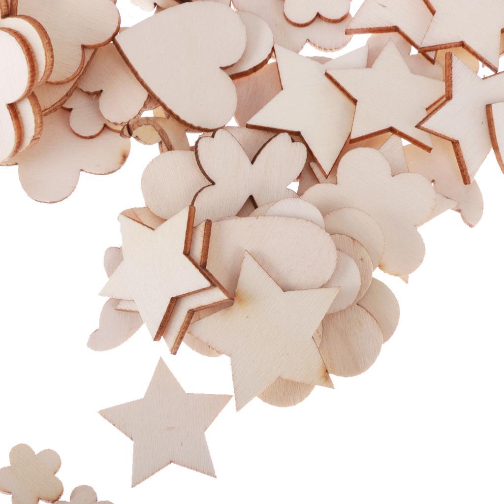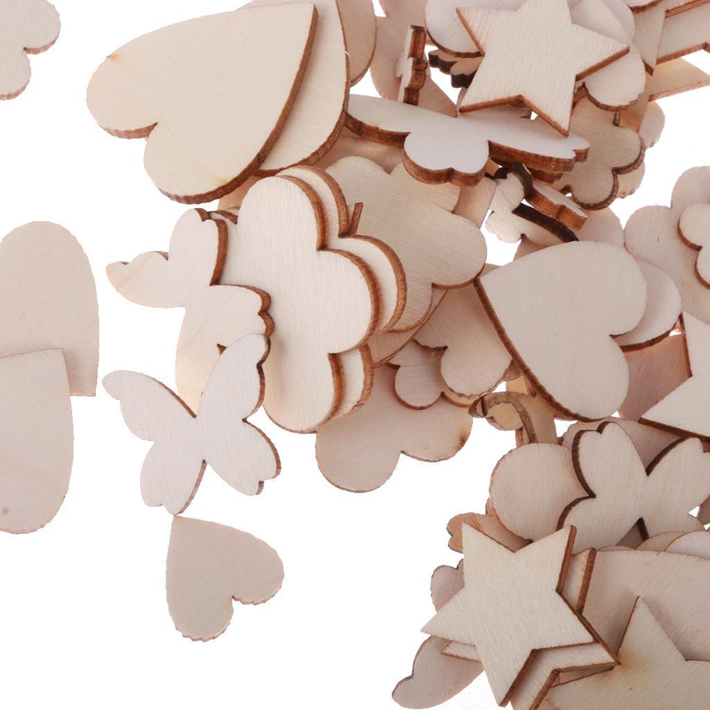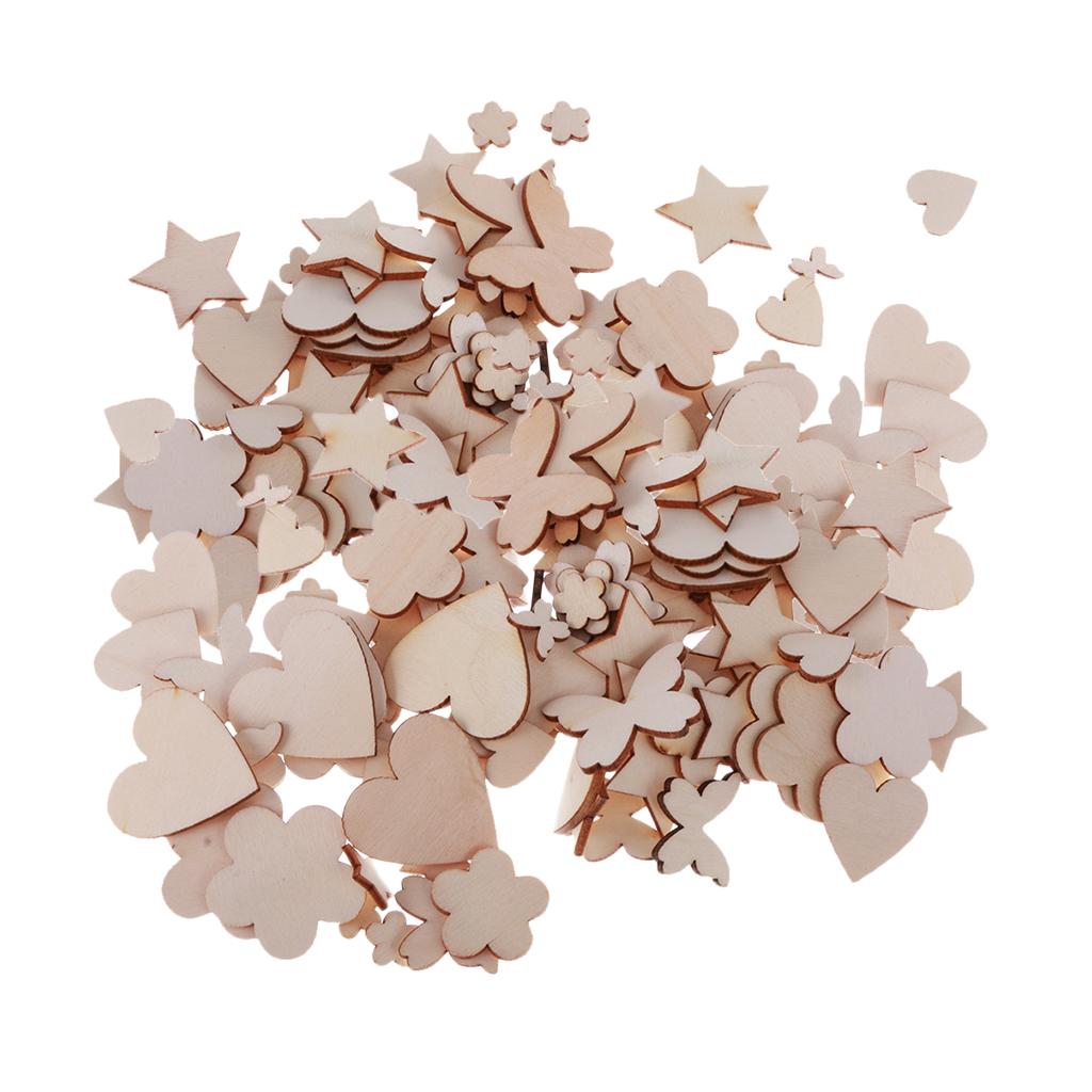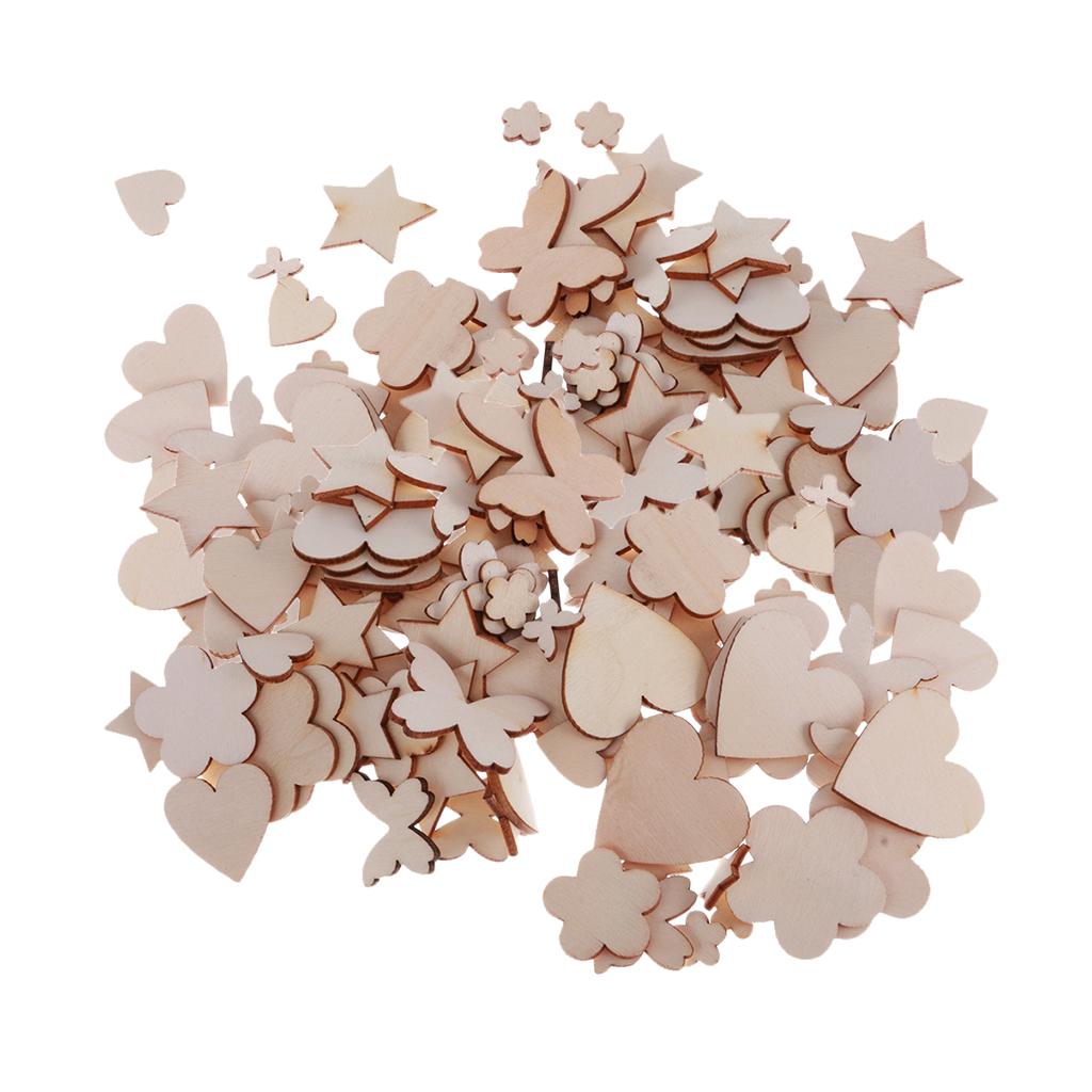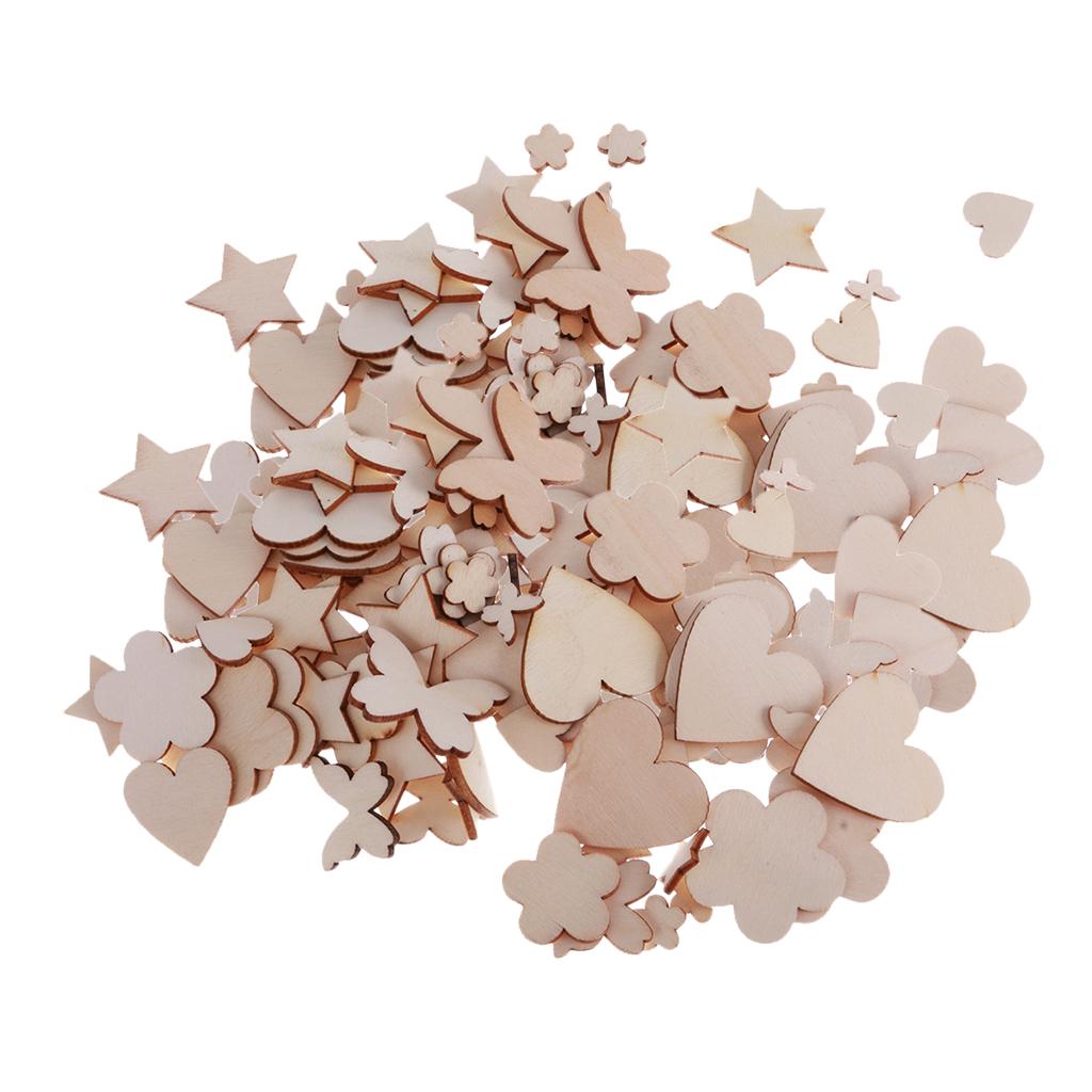 200Pcs Lots natural cutout wood embellishment crafts comes with star heart plum butterlfy shapes, assorted sizes meet all your needs.