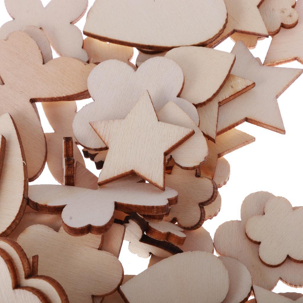 200 Pieces Assorted Natural Cut Wooden Shapes Embellishment DIY Craft