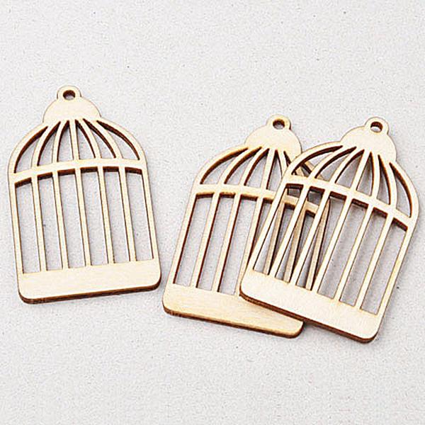 25pcs Wood birdcage Shape Cutout Wooden Embellishment Art Craft Making Decor