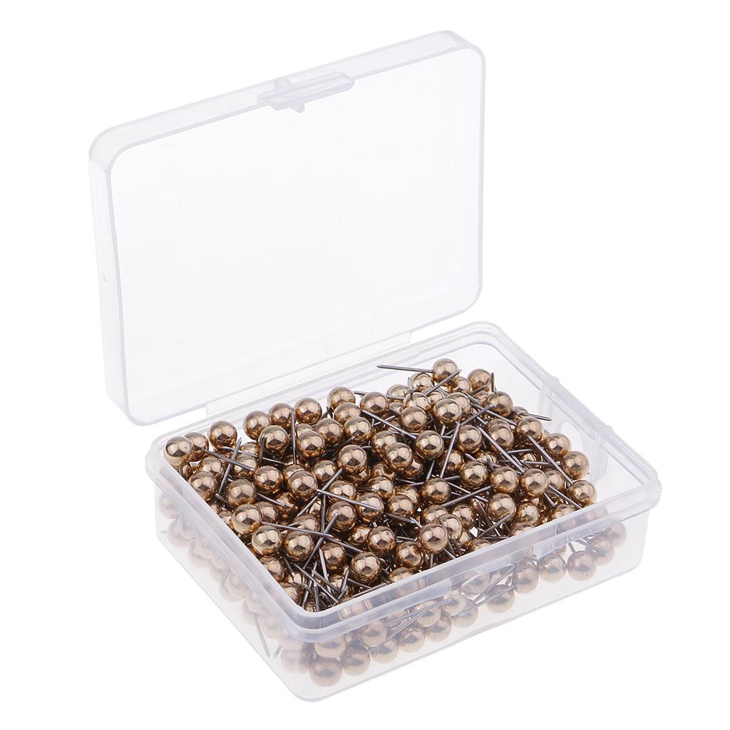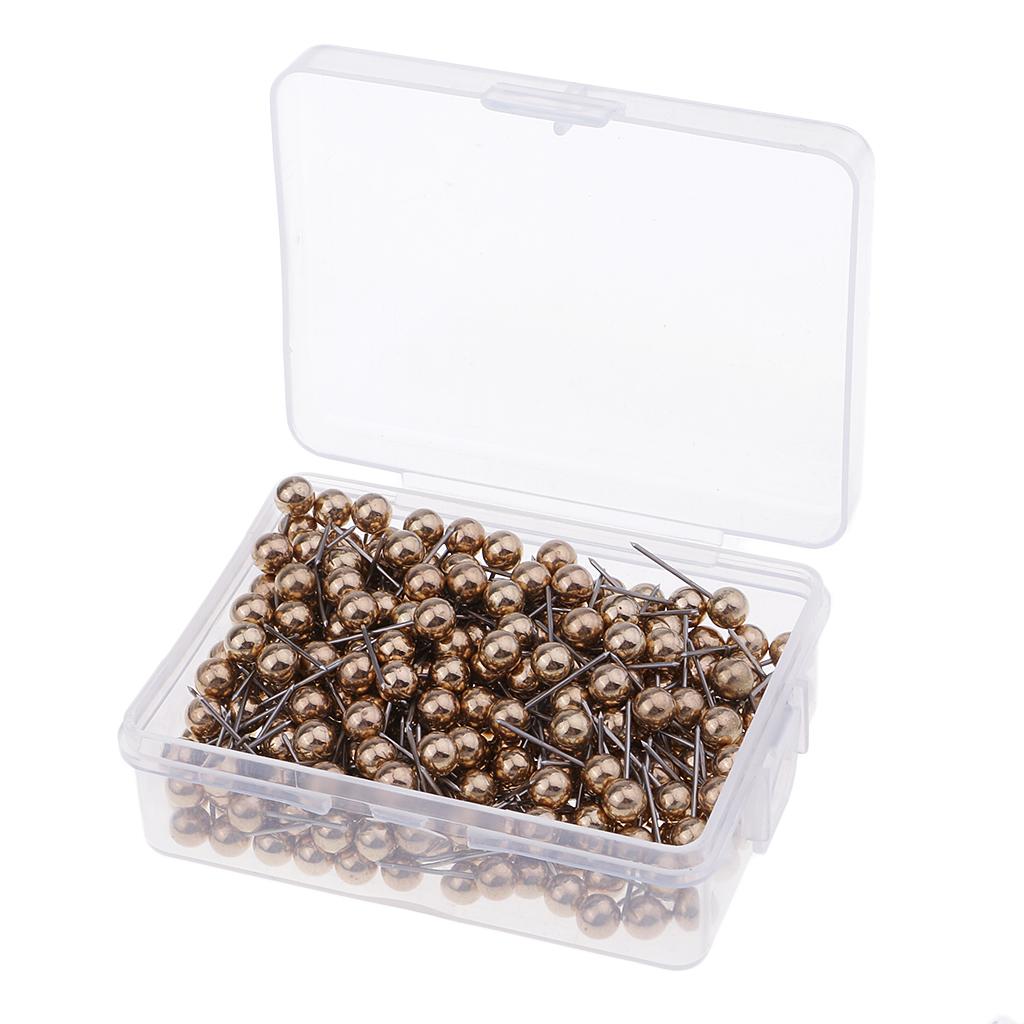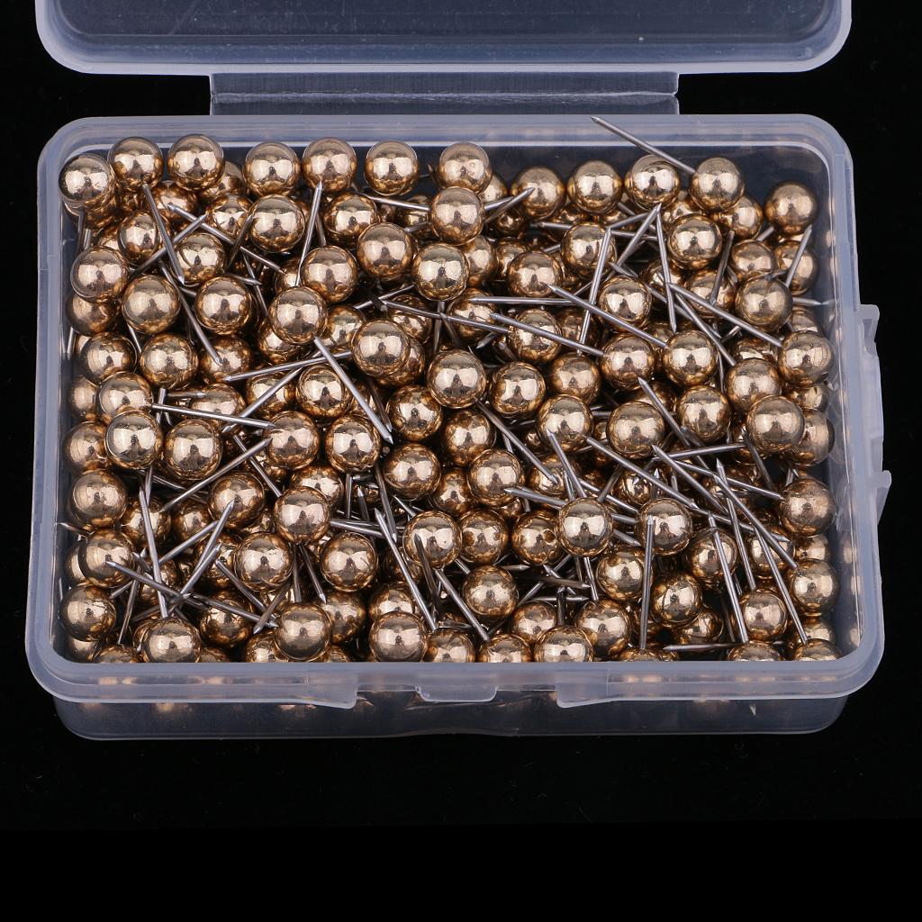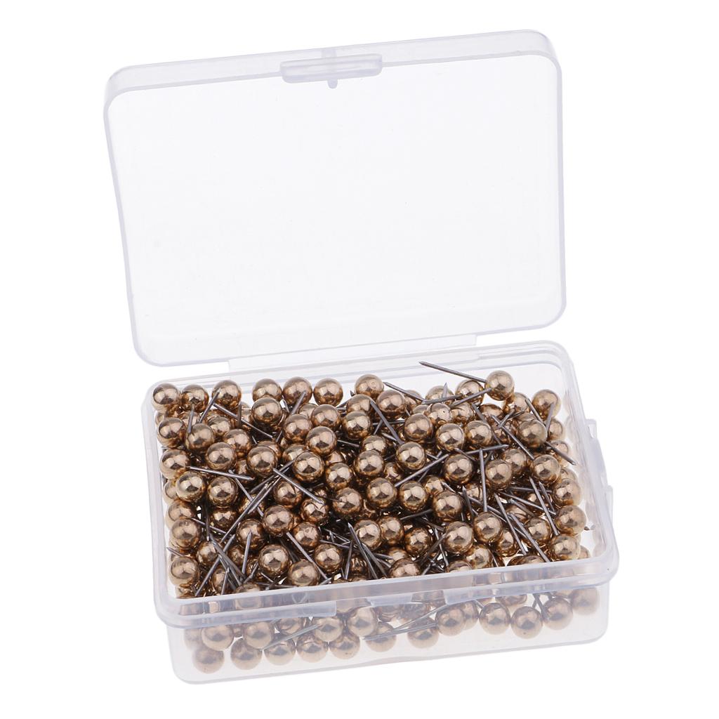 300 Pcs Metallic Color Map Thumbtack Push Pins Plastic Head Steel Point Gold