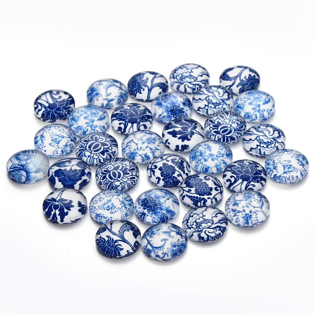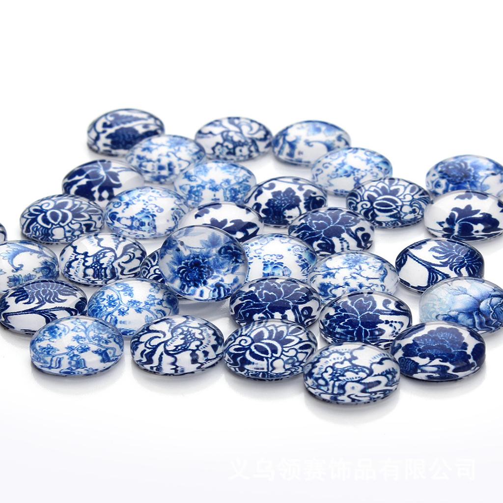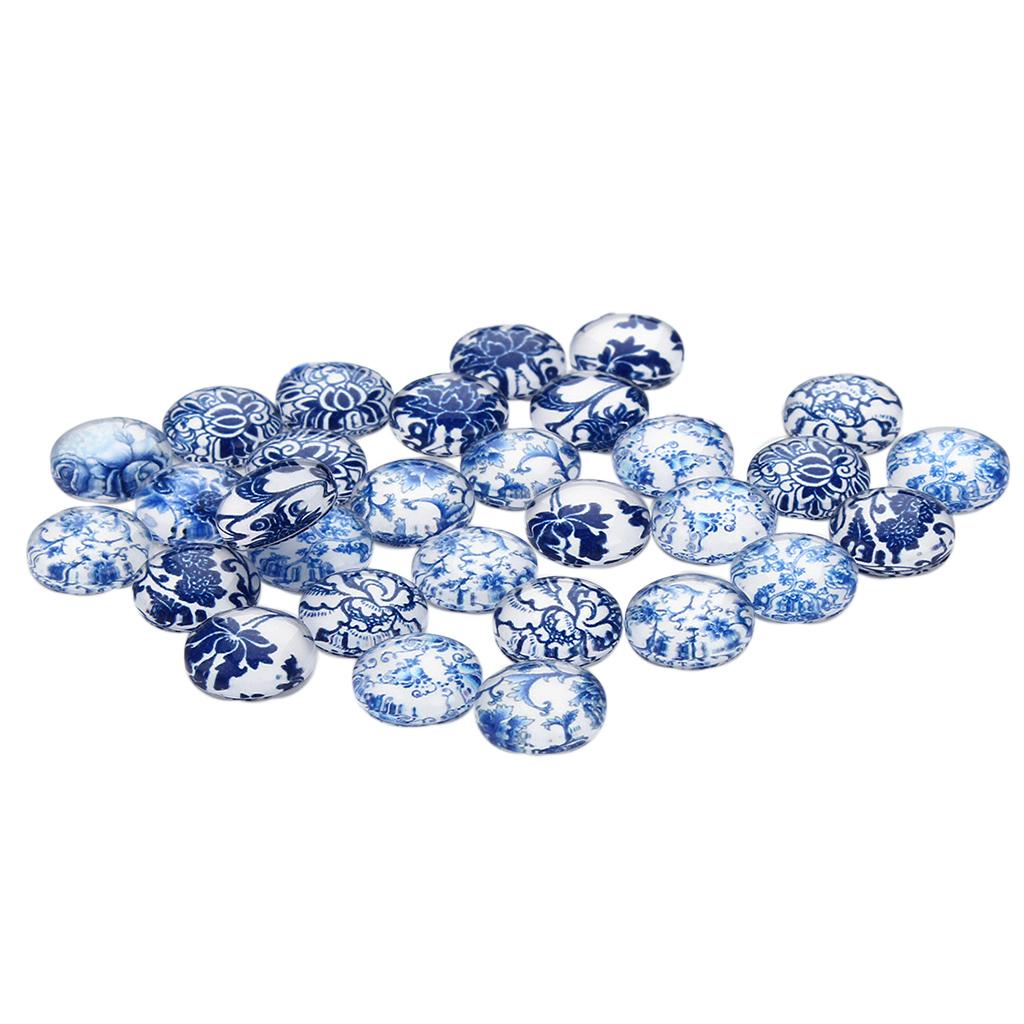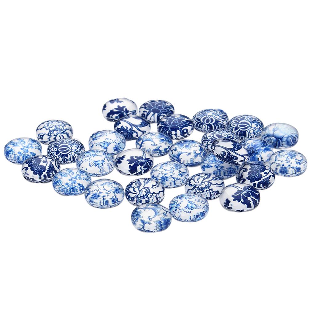30pieces Blue and White Porcelain GLASS CABOCHON 12mm Round Flatback Cameo for Jewelry DIY Accessories