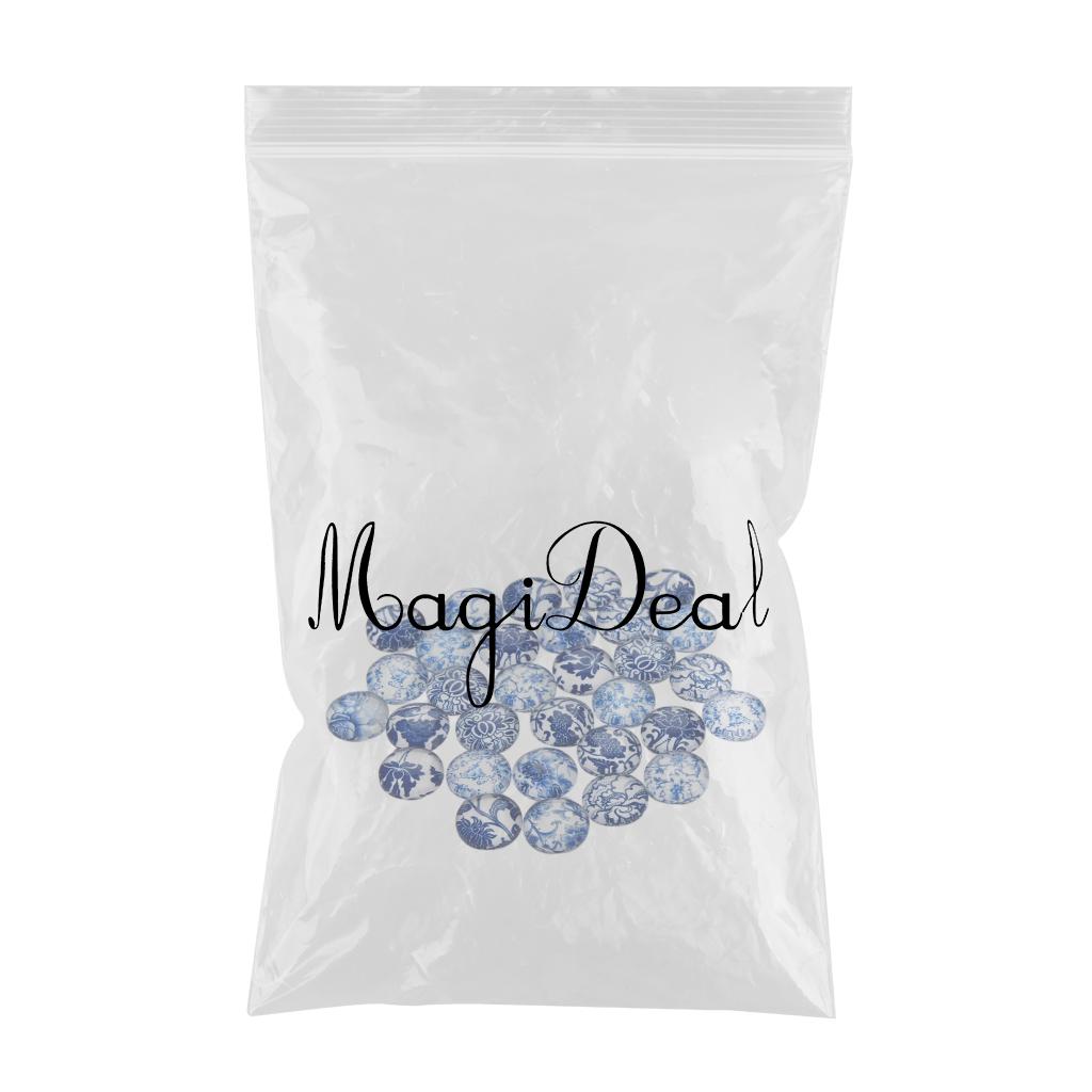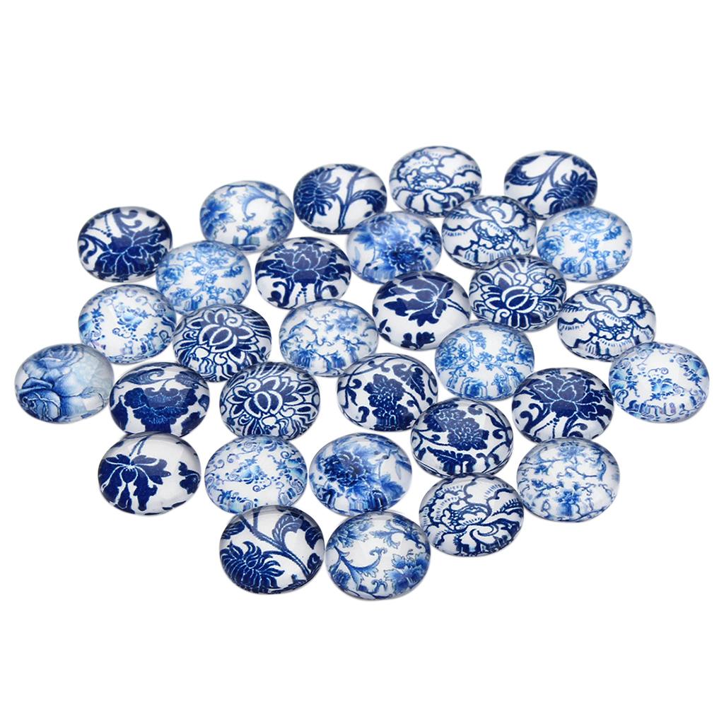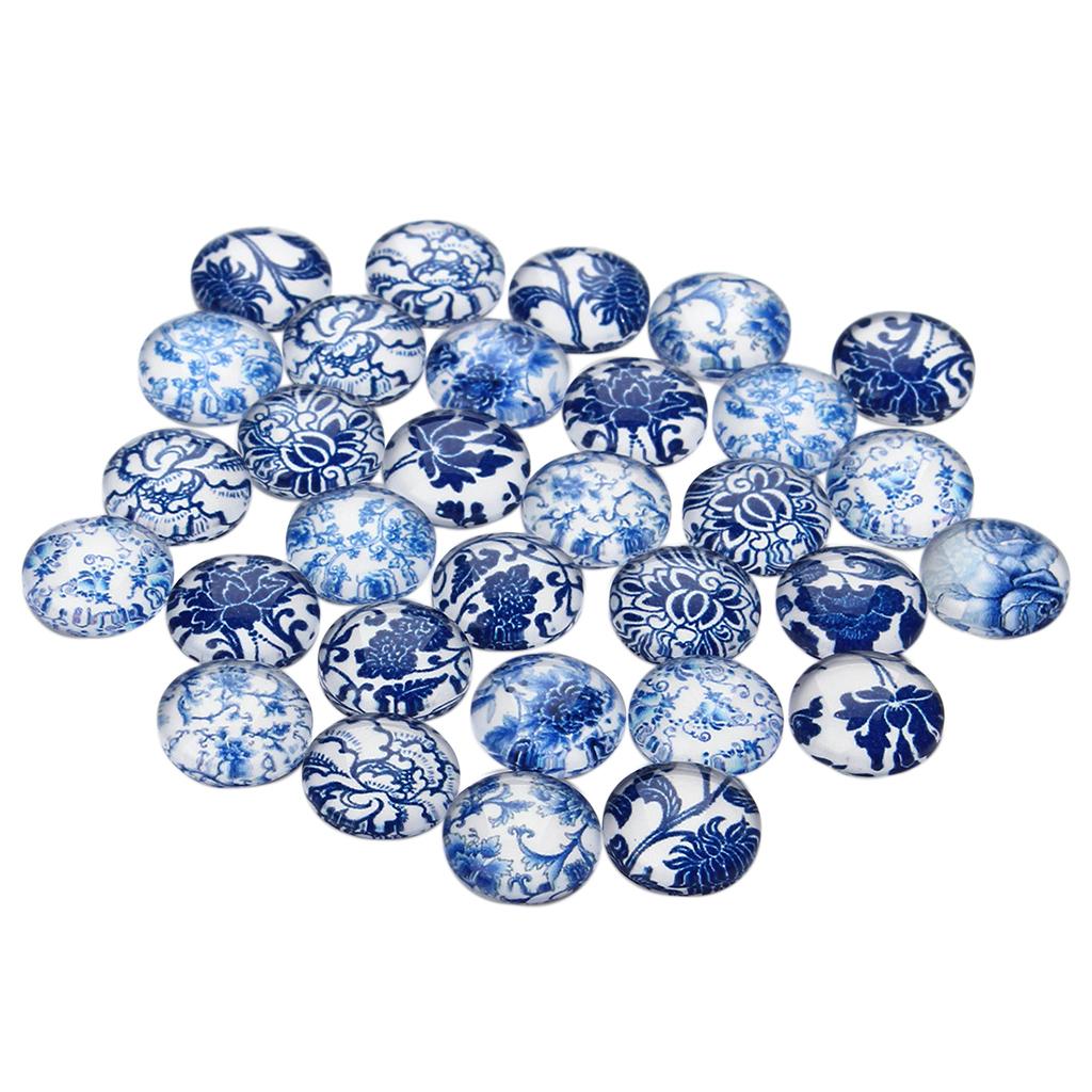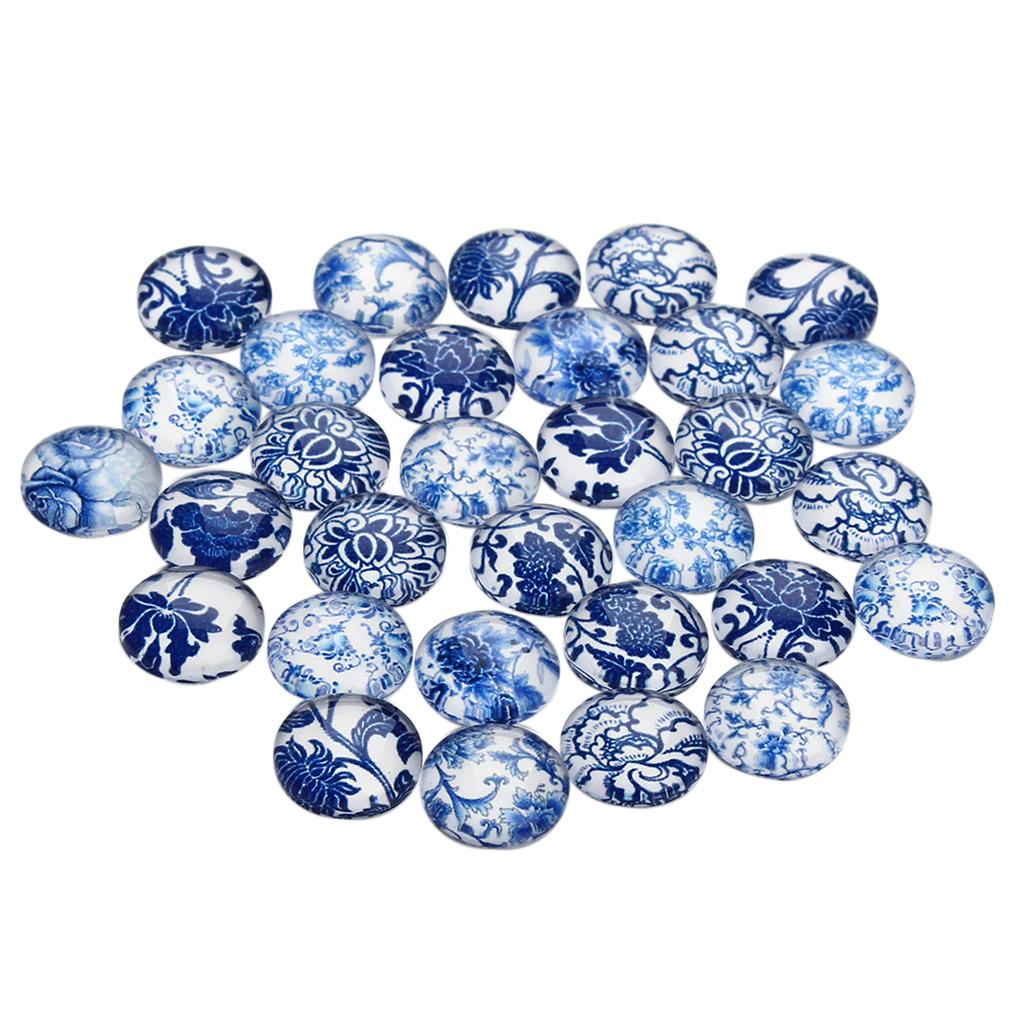 30pieces Blue and White Porcelain GLASS CABOCHON 12mm Round Flatback Cameo for Jewelry DIY Accessories