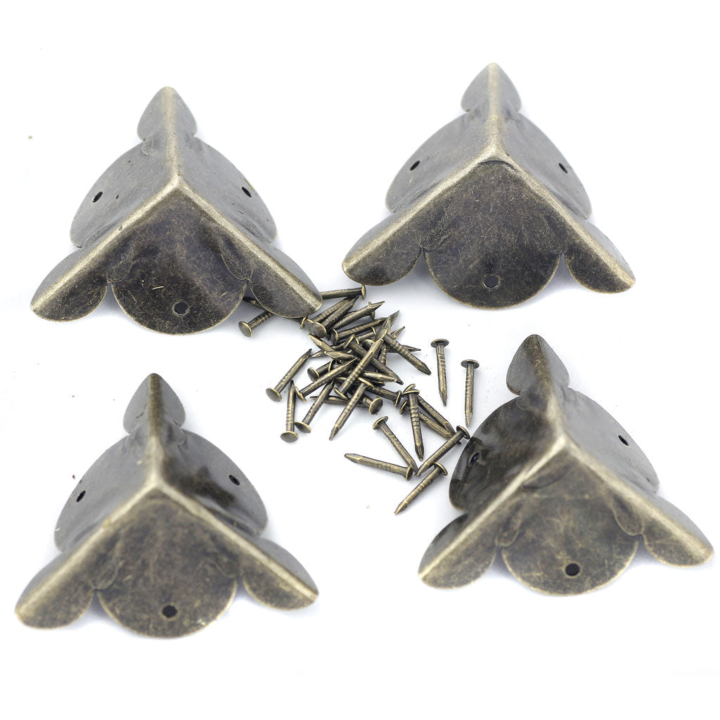 4Pcs Antique Alloy Triangle Box Corner Protector Guards Edge Cover 30mm