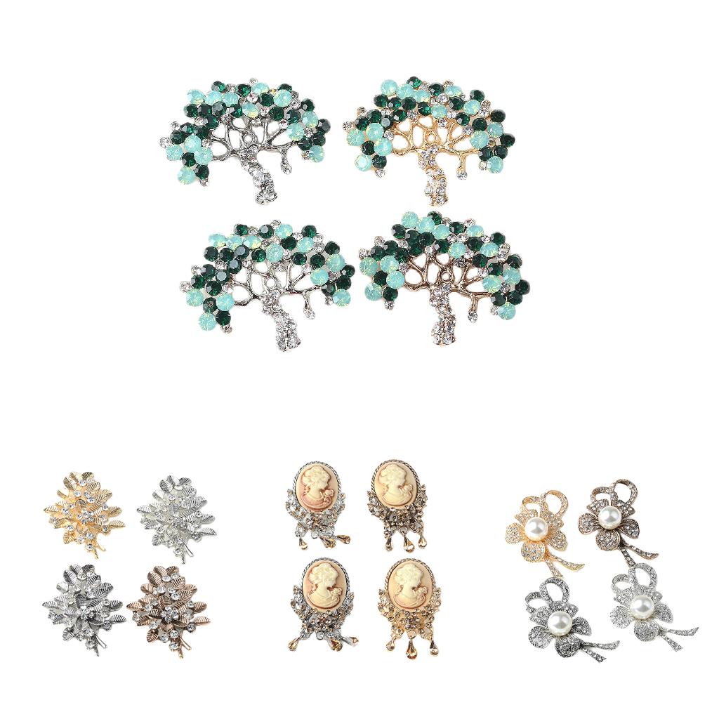 4pcs Assorted Style Flatback Jewelry Buttons 36x53mm rhinestone pearl flower