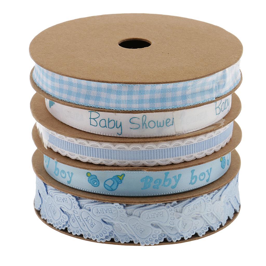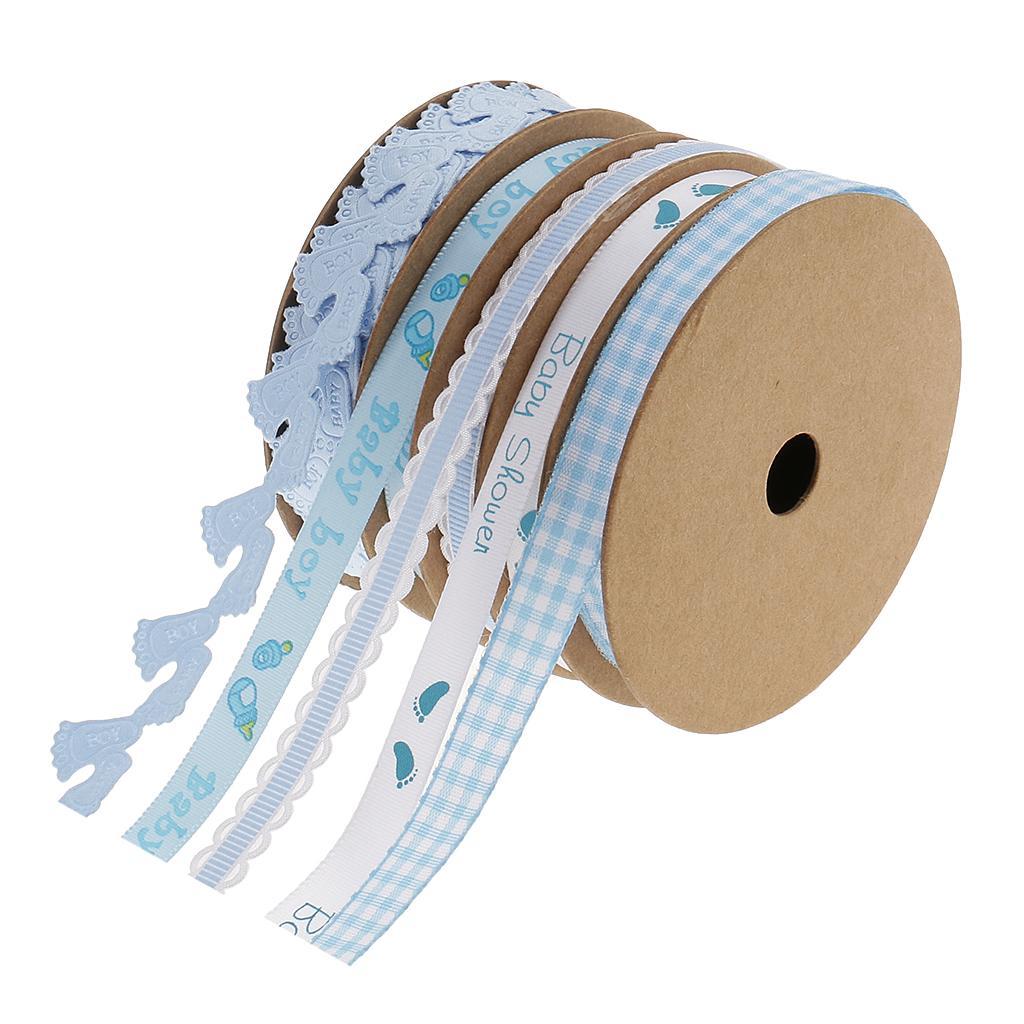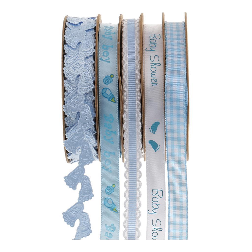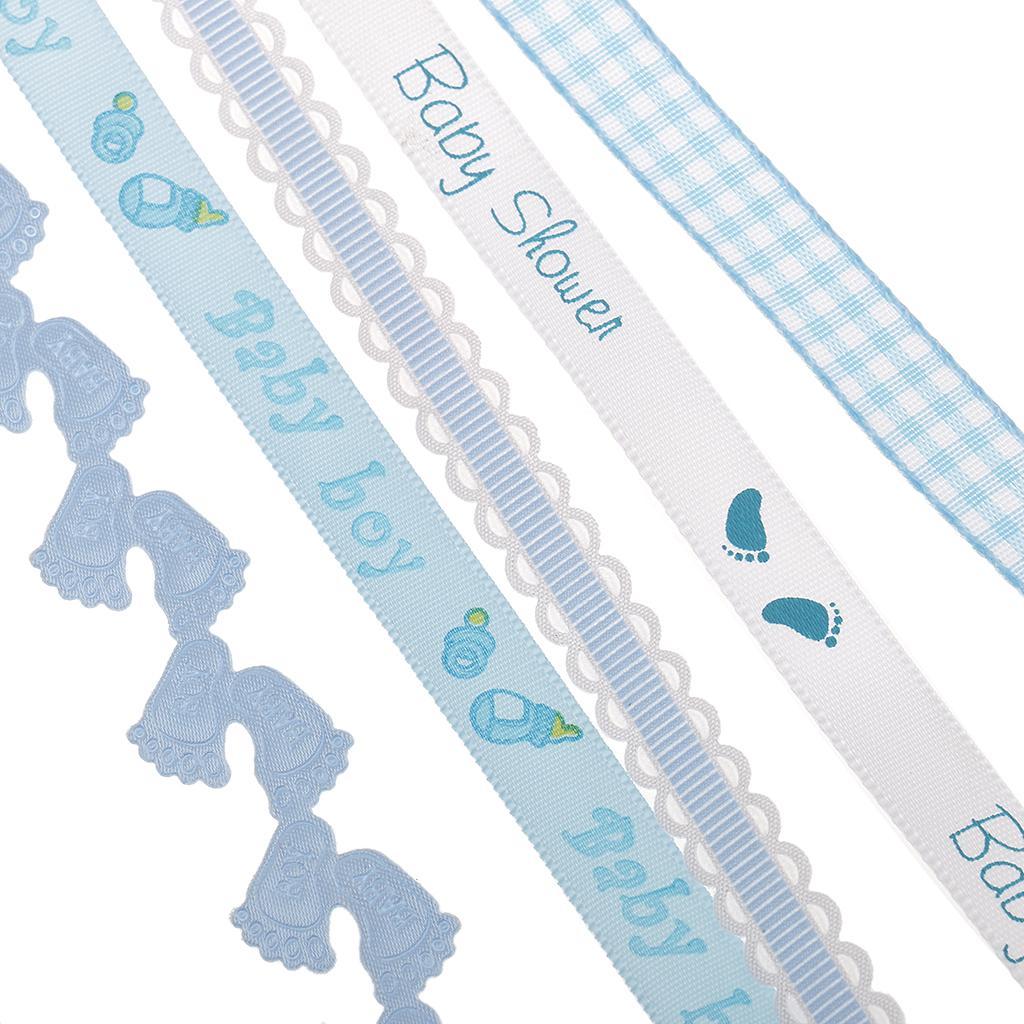 5 Pack Baby Shower Blue Polyester Ribbon Decorations Foot Prints Flowers for Boys Party Favors