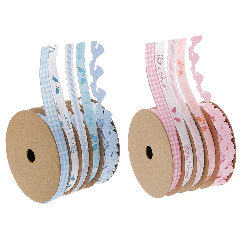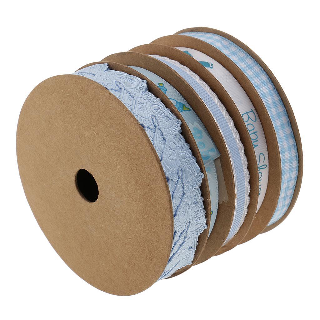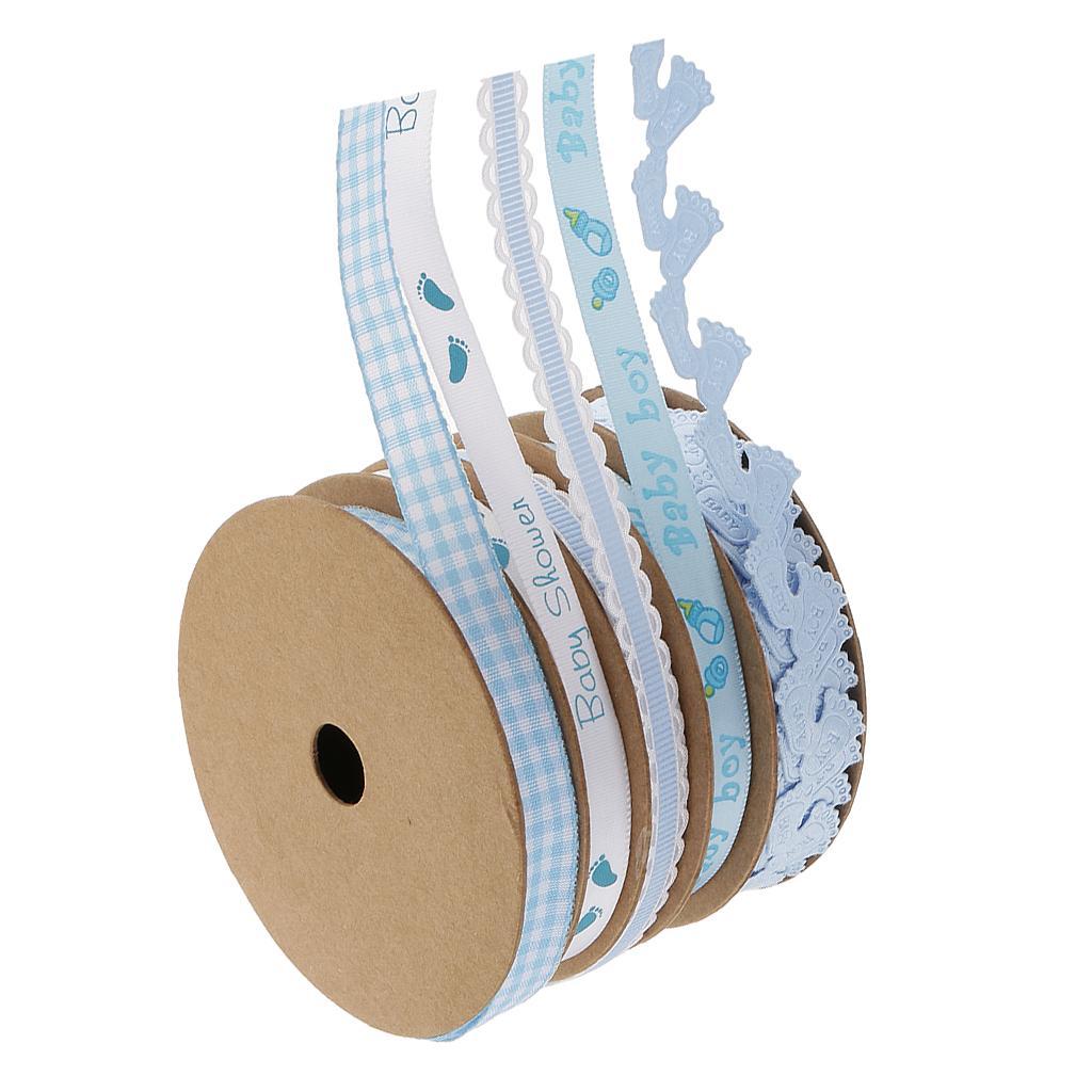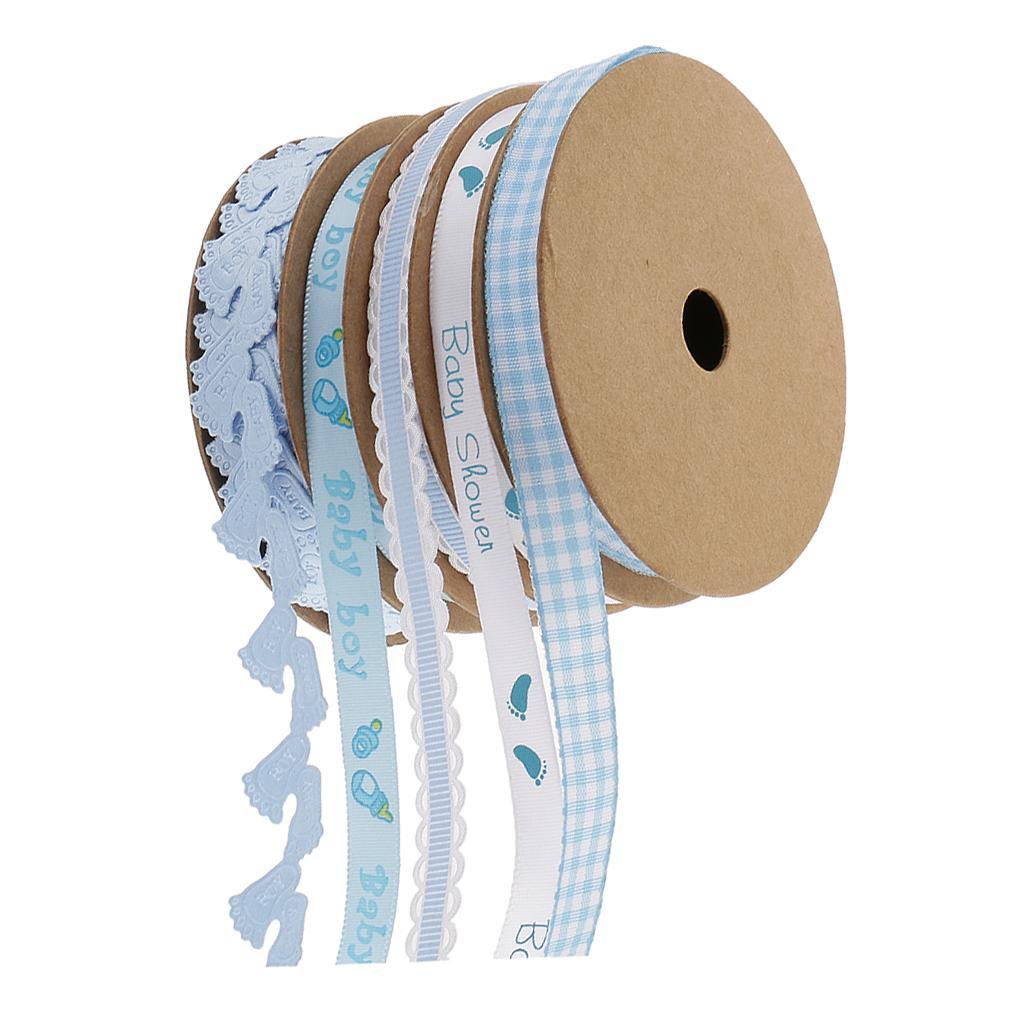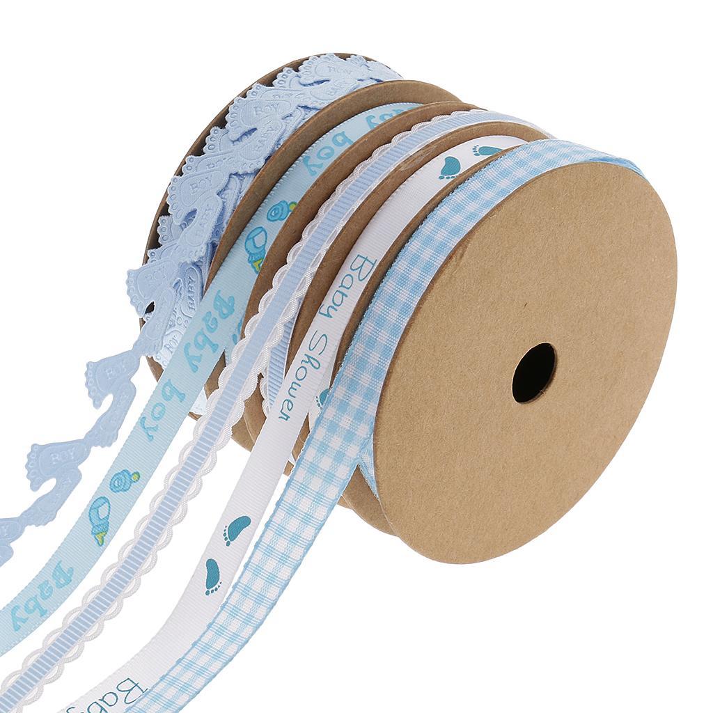 5 Pack Baby Shower Blue Polyester Ribbon Decorations Foot Prints Flowers for Boys Party Favors