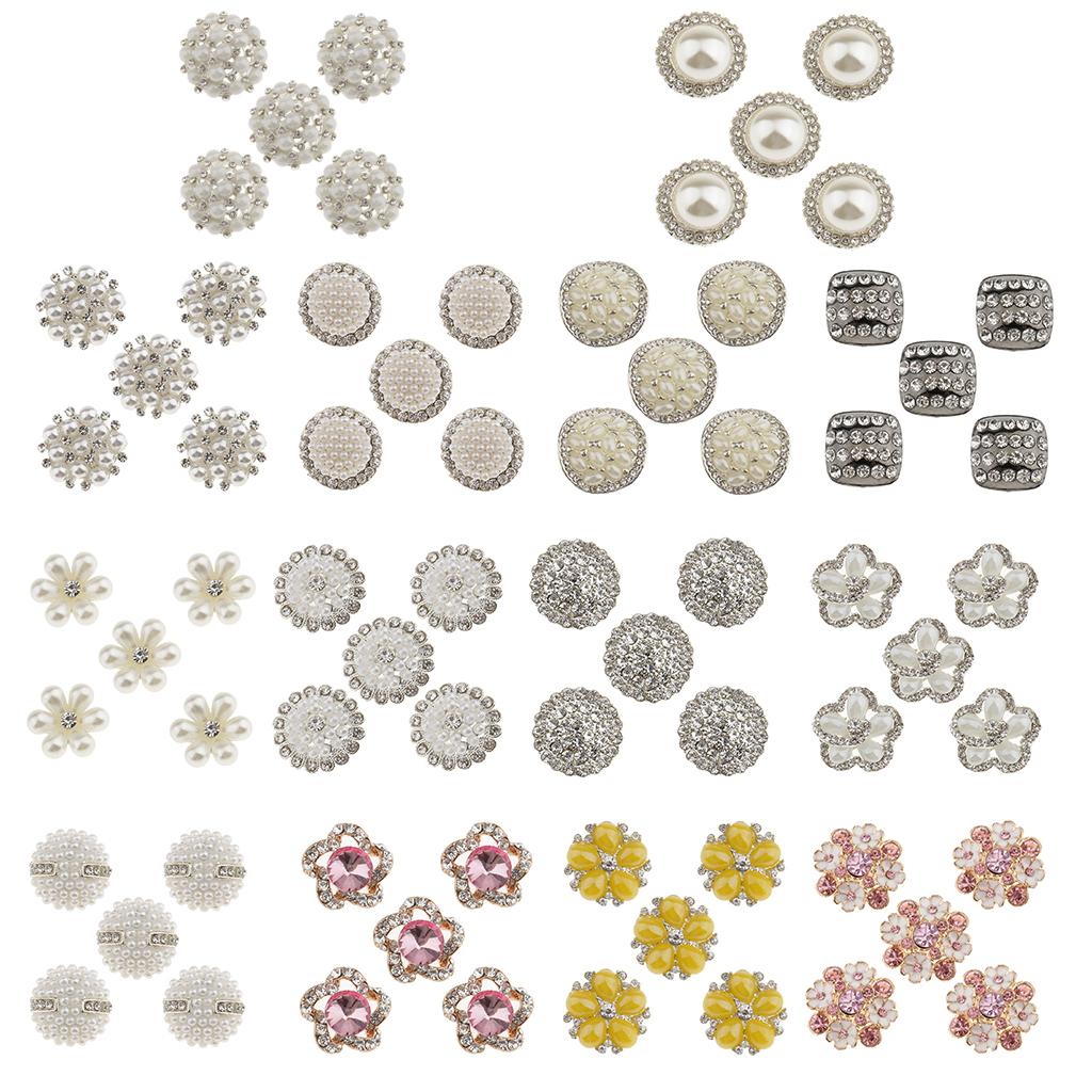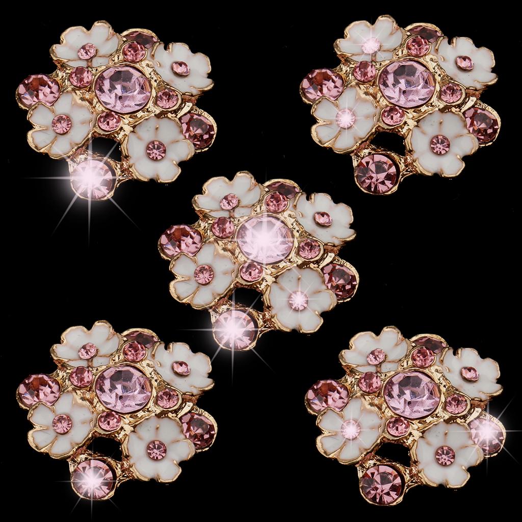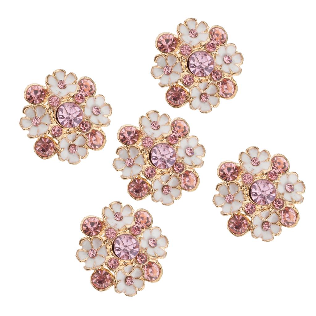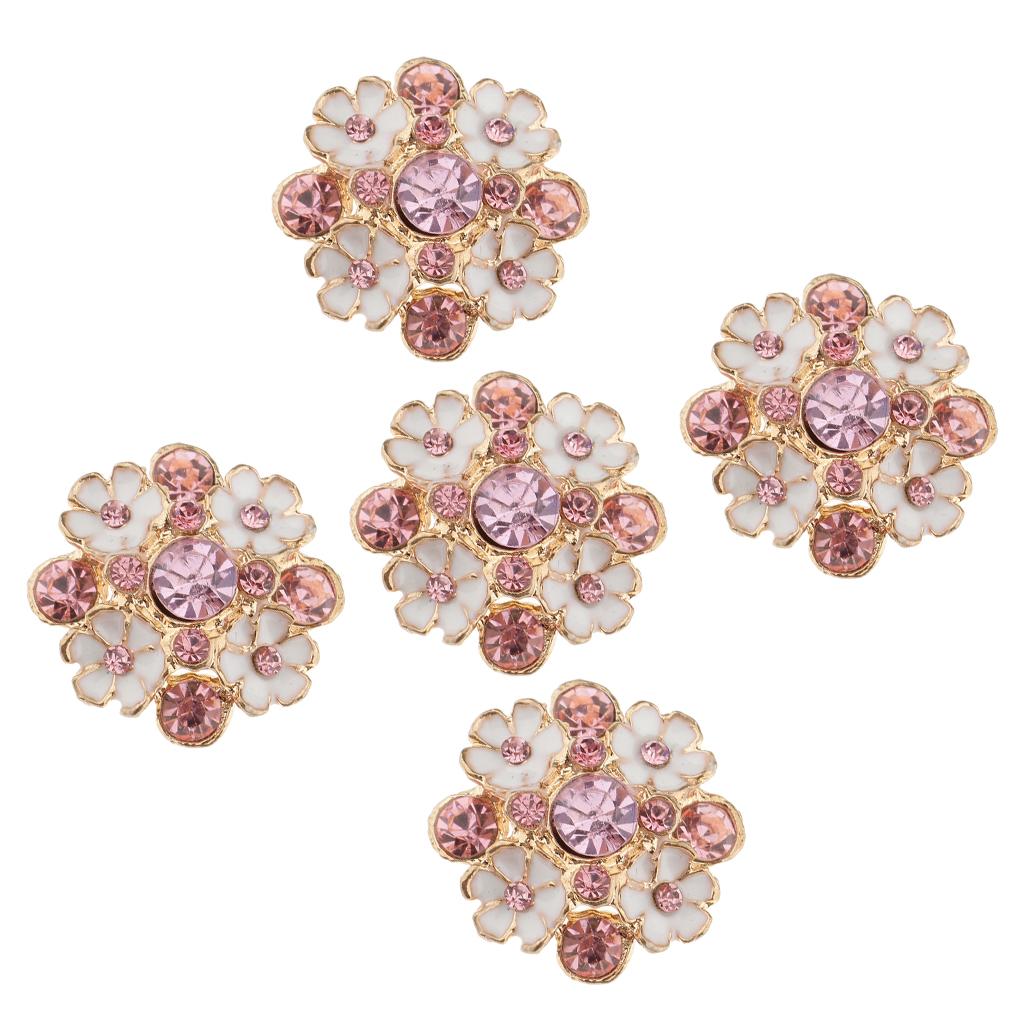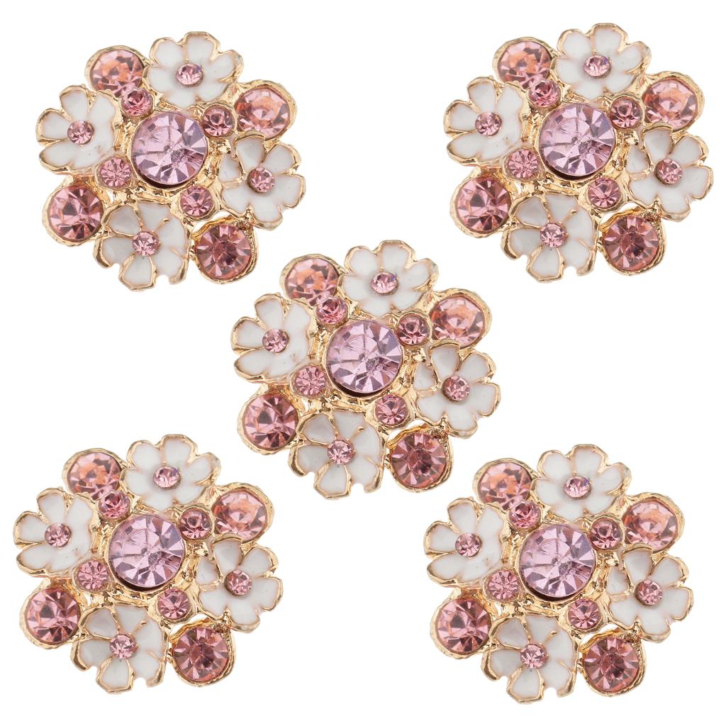 5 Piece Diamante Flower Rhinestone Shank Buttons Decoration Embellishments for Wedding Sewing Crafting 23mm