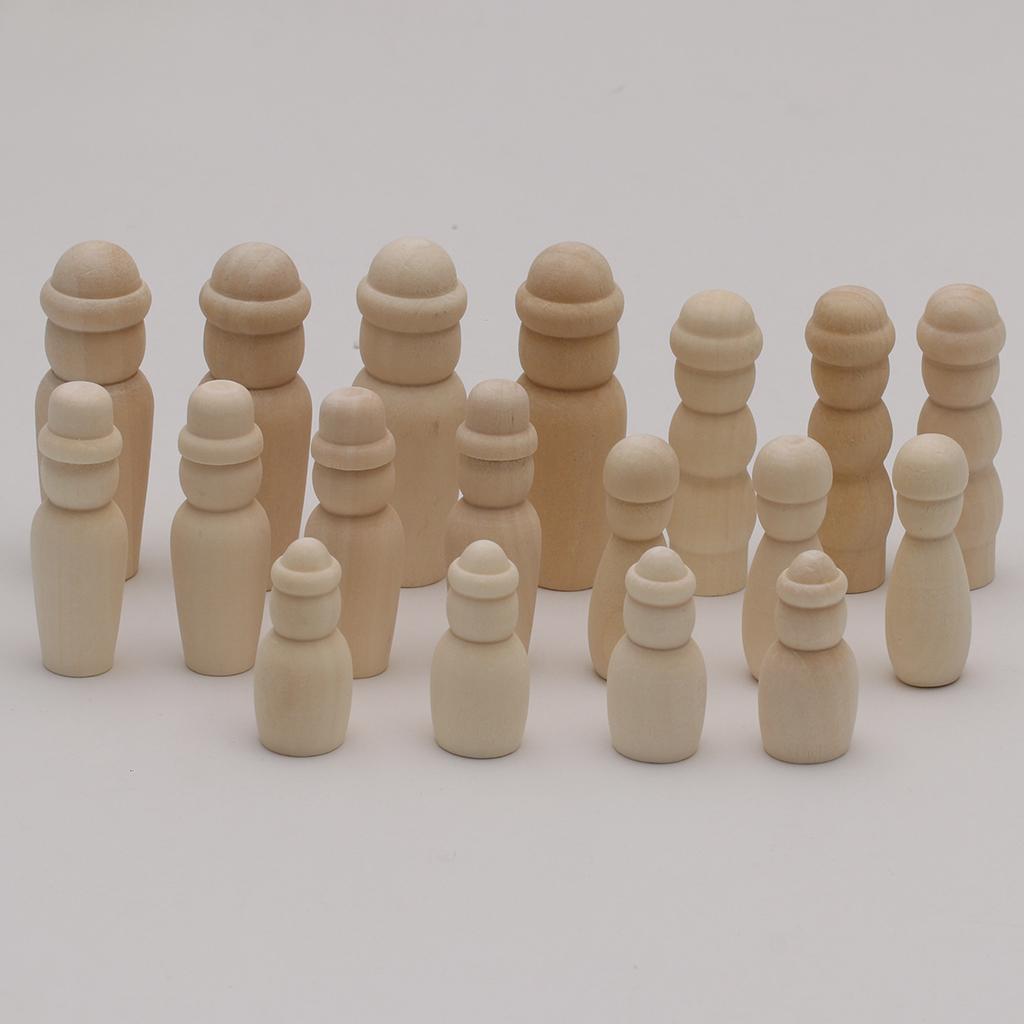 Unfinished wooden natural peg dolls-family people shapes