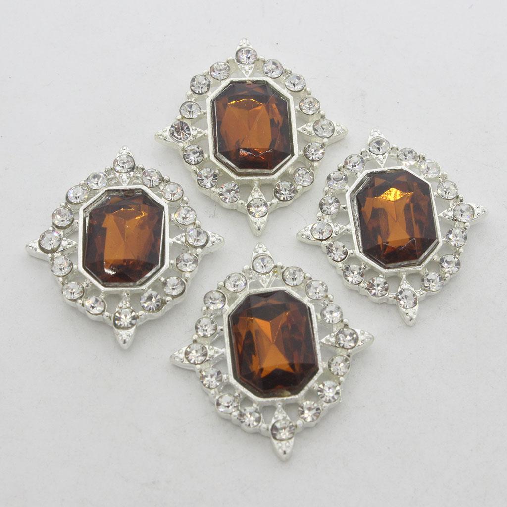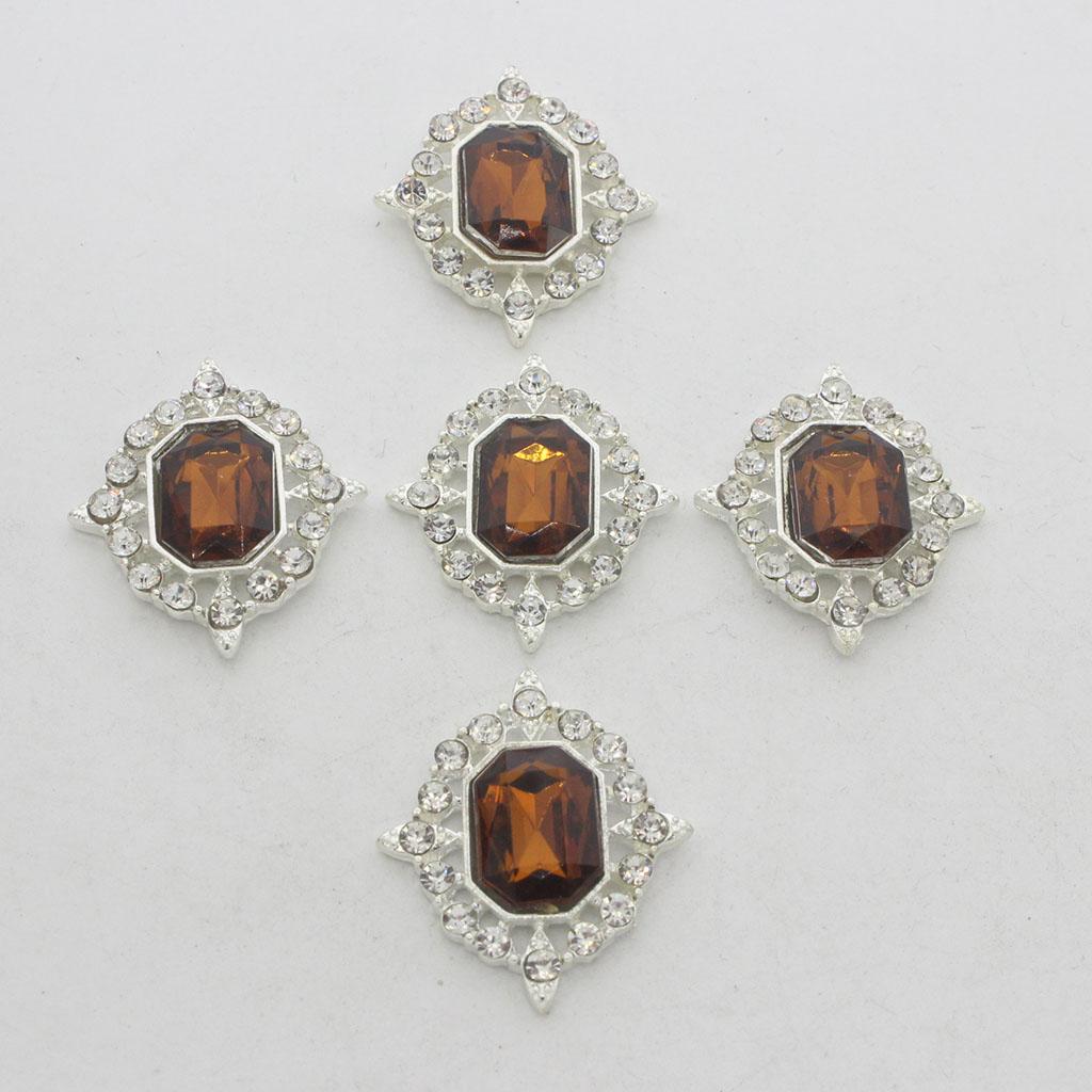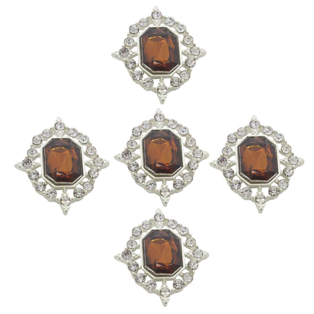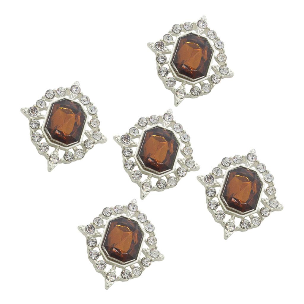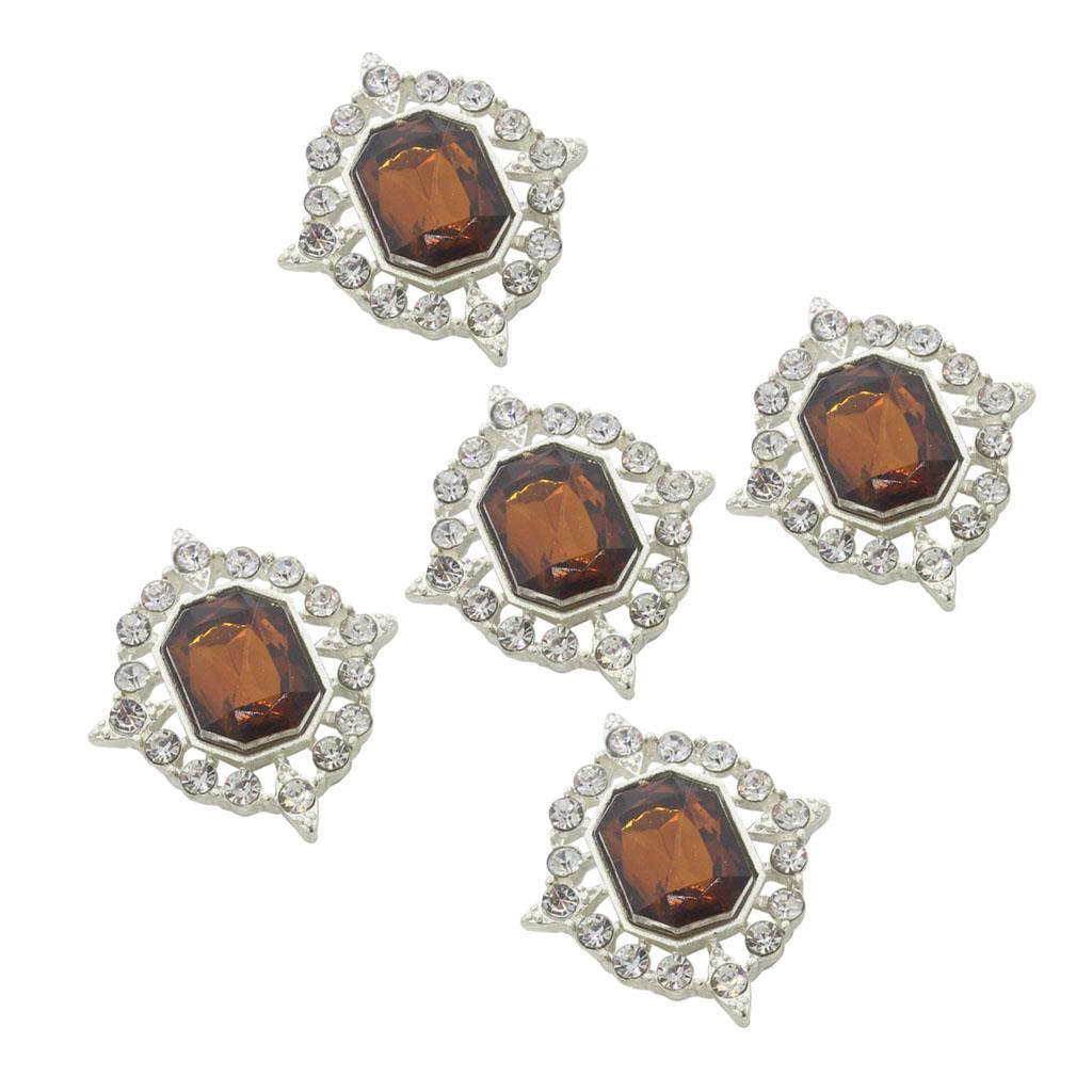 5 Pieces Acrylic Rhinestone Buttons Flat Back for DIY Crafts Brown