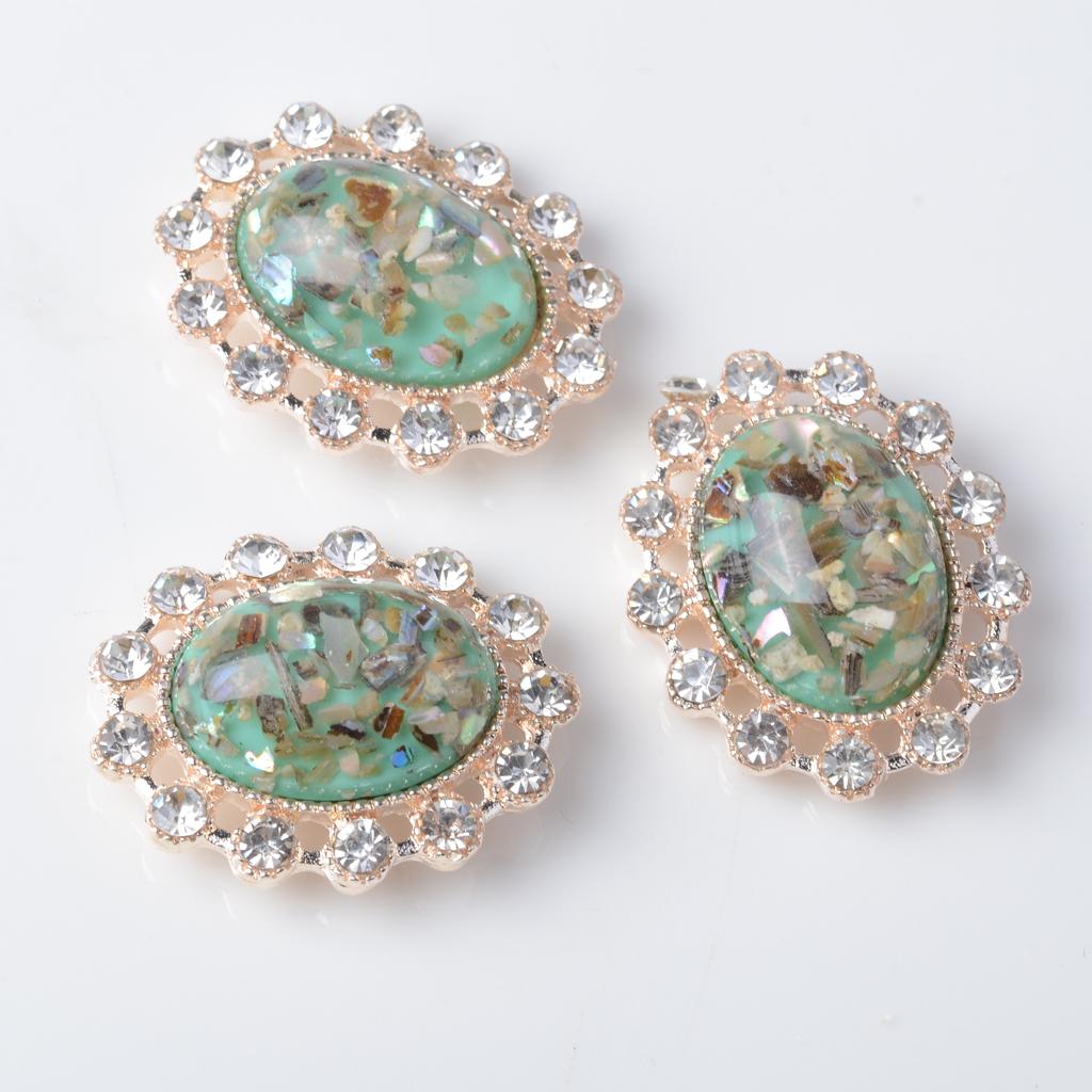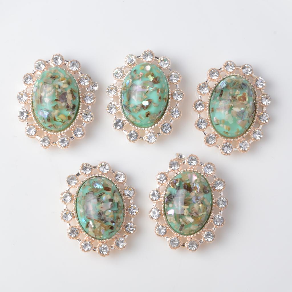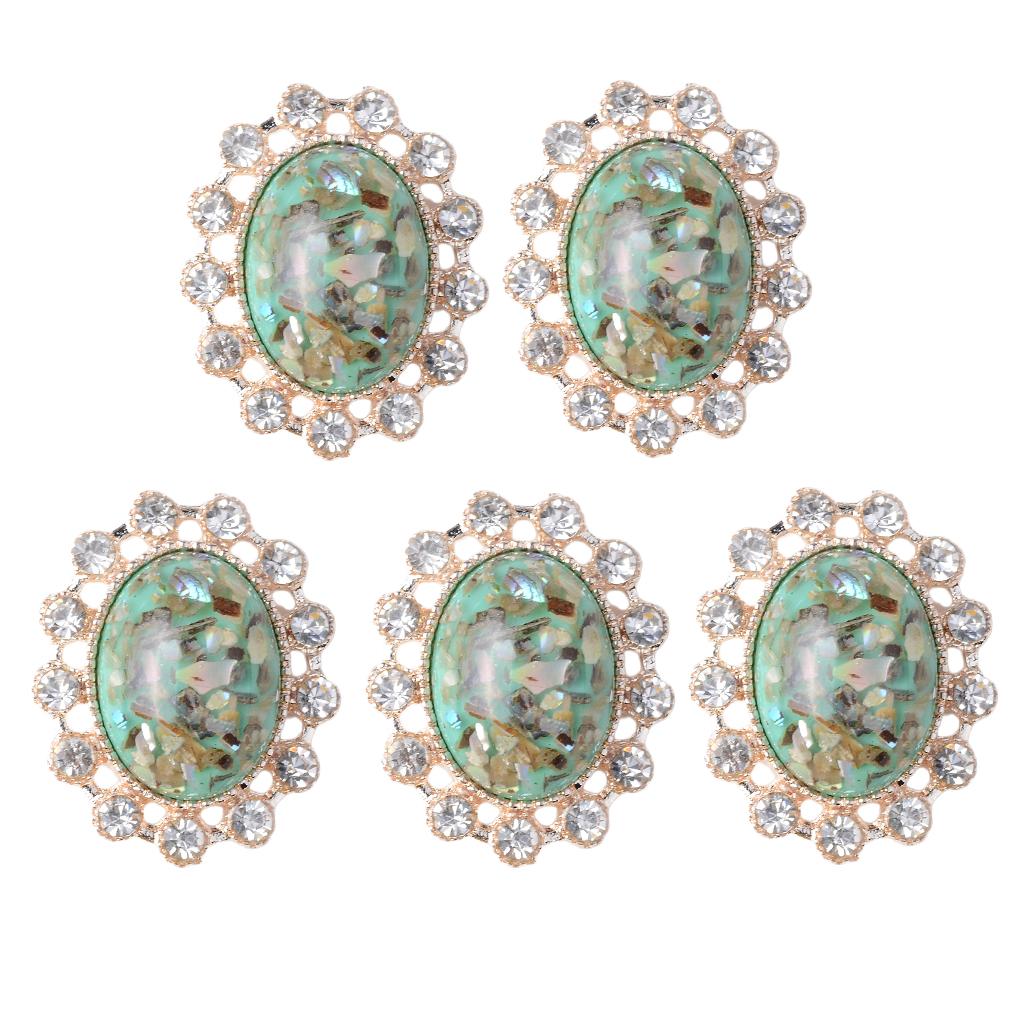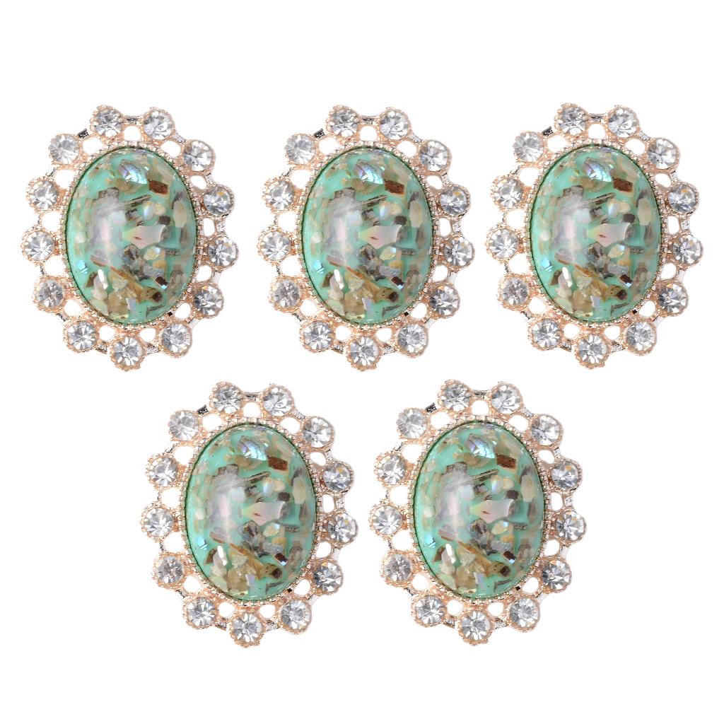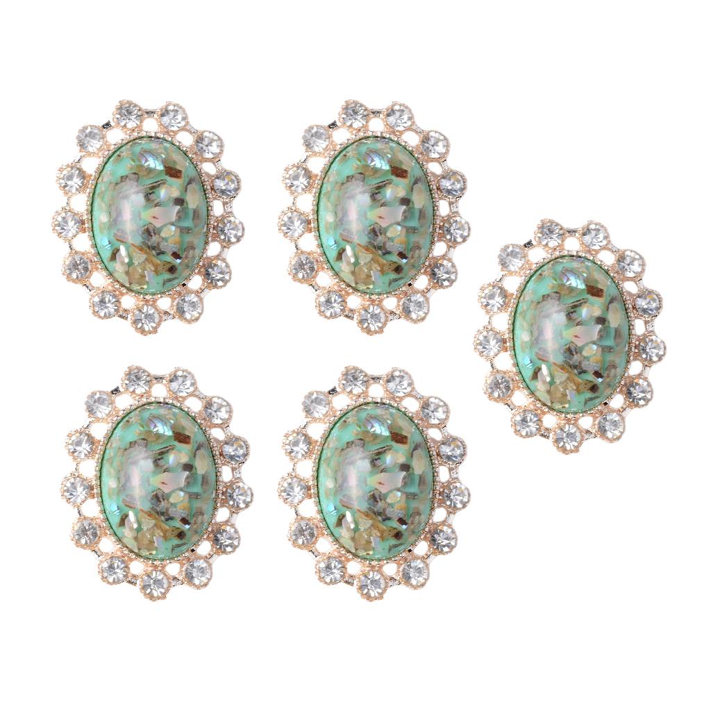 5 Pieces Alloy Oval Acrylic Rhinestones Flatback Button Charms Jewelry Making Findings Scrapbook Embellishment for DIY Hair Accessories