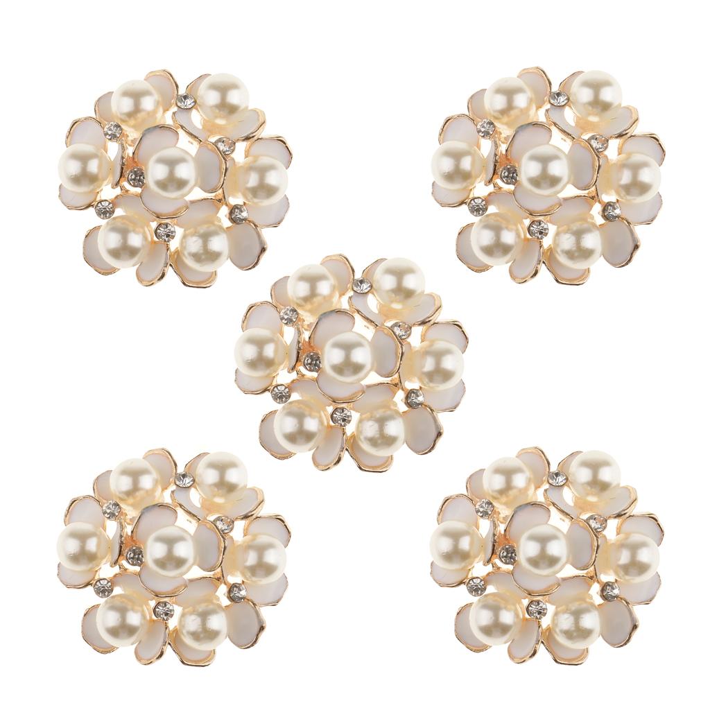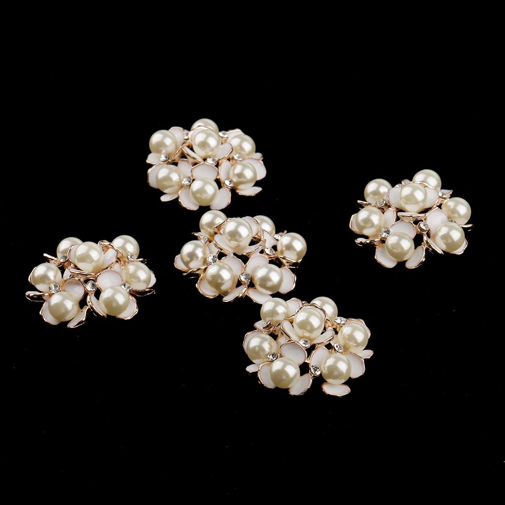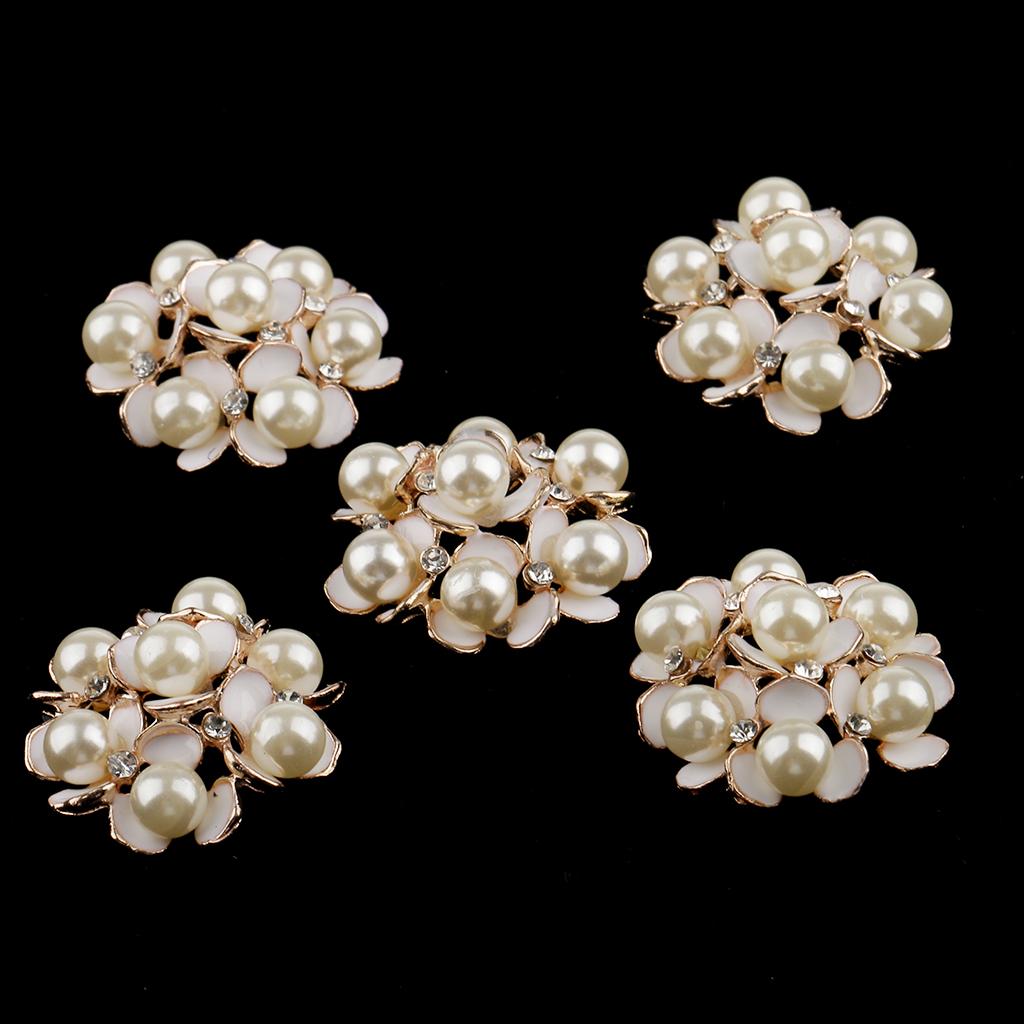 5 Pieces Pearl Rhinestone Flower Embellishments