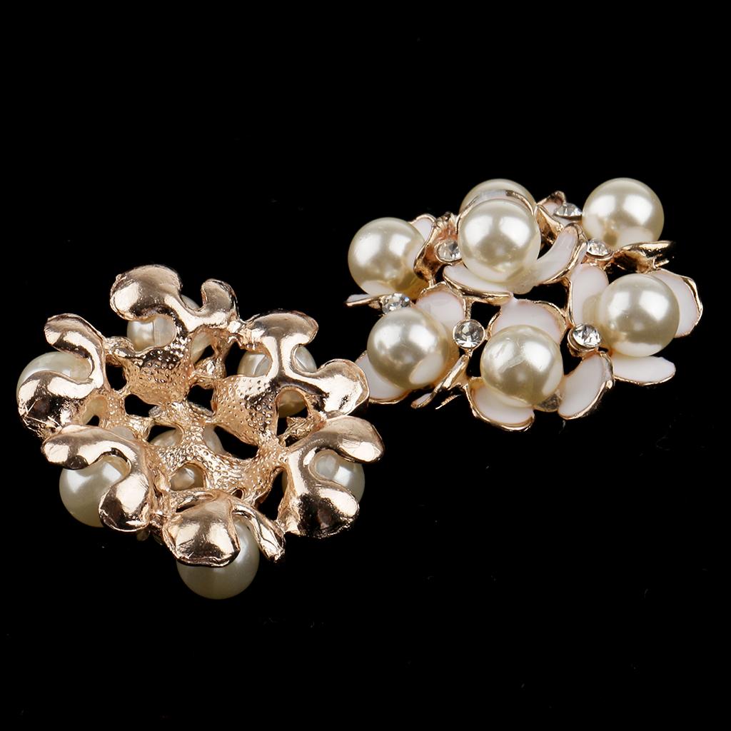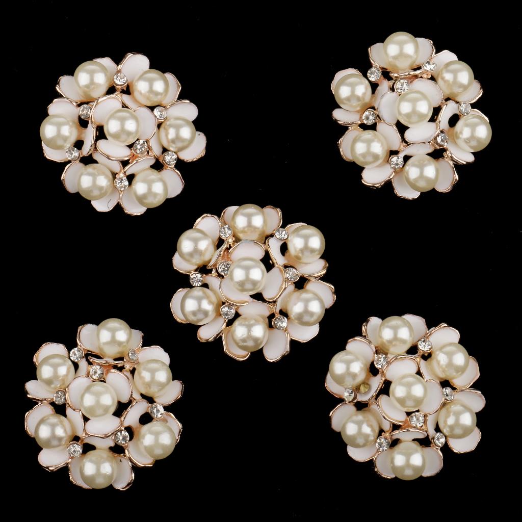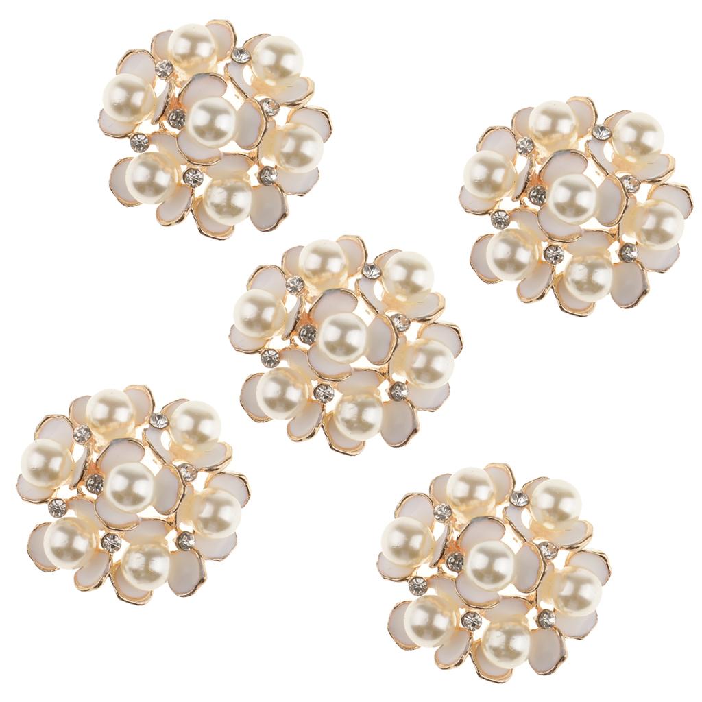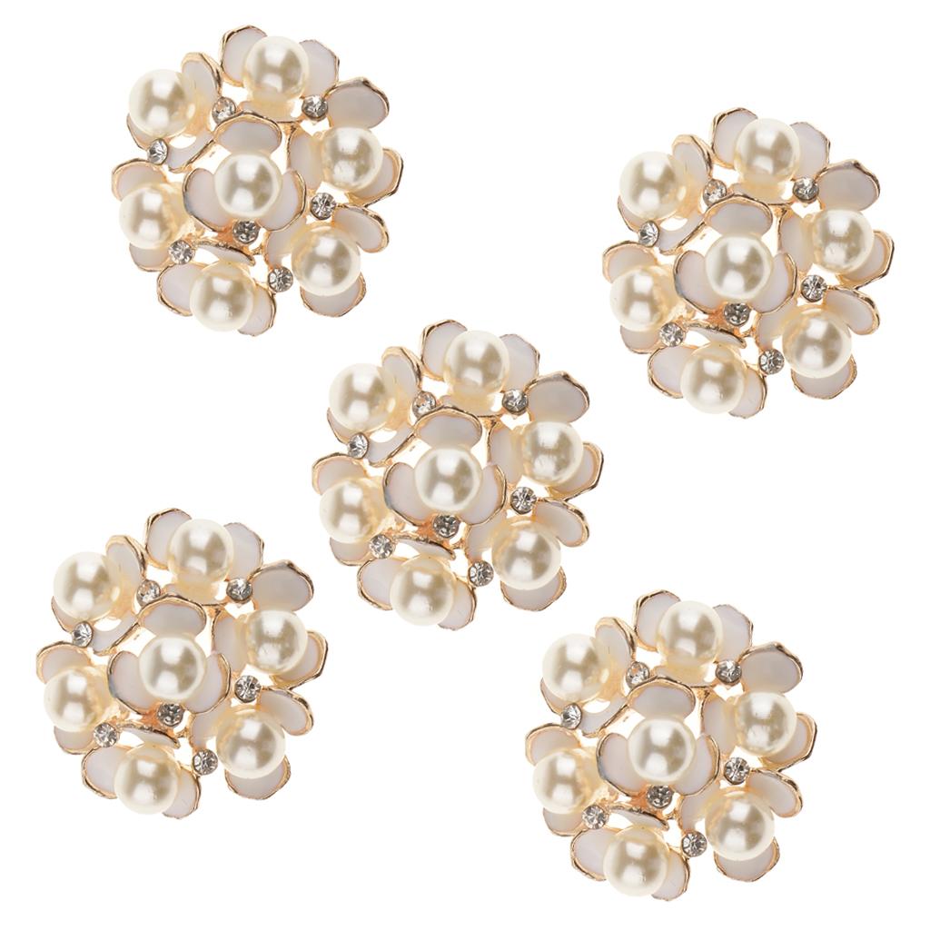 5 Pieces Pearl Rhinestone Flower Embellishments