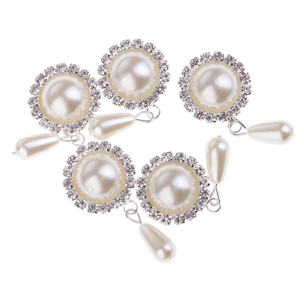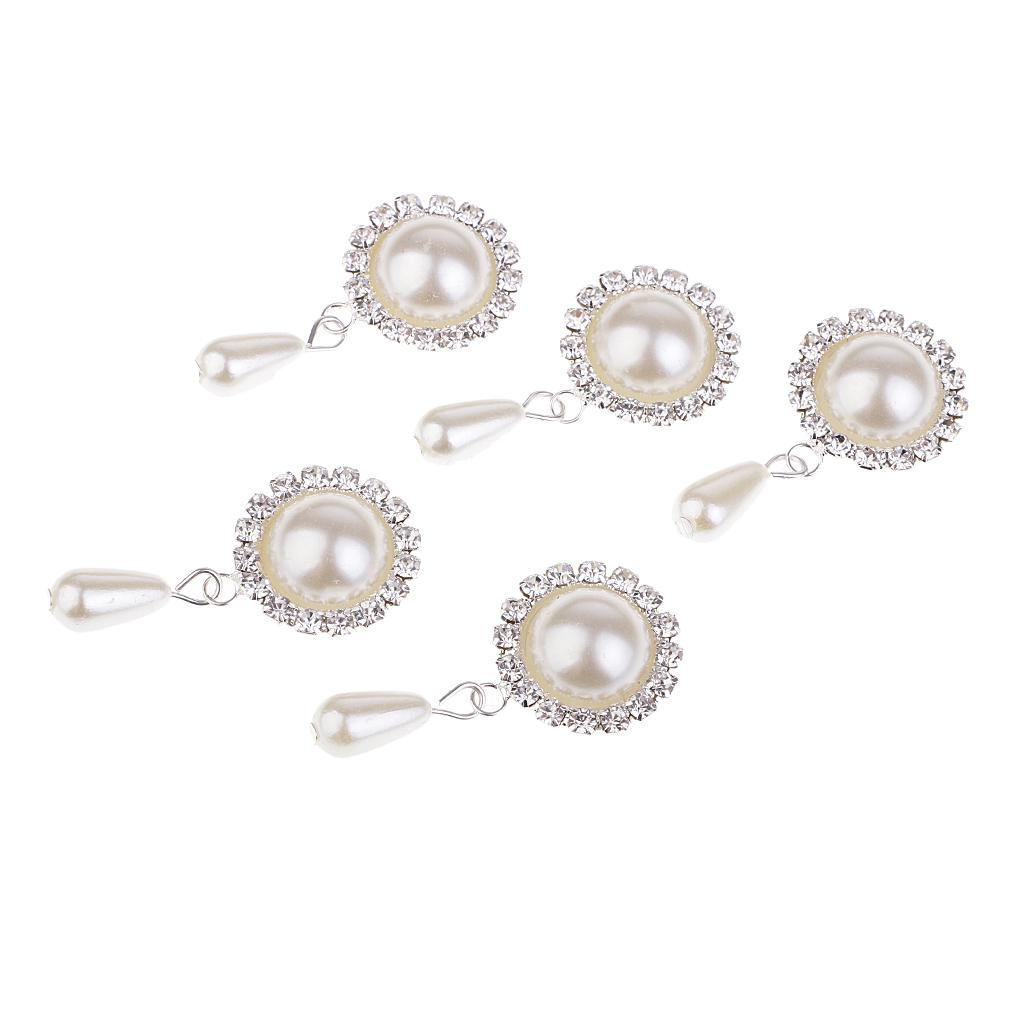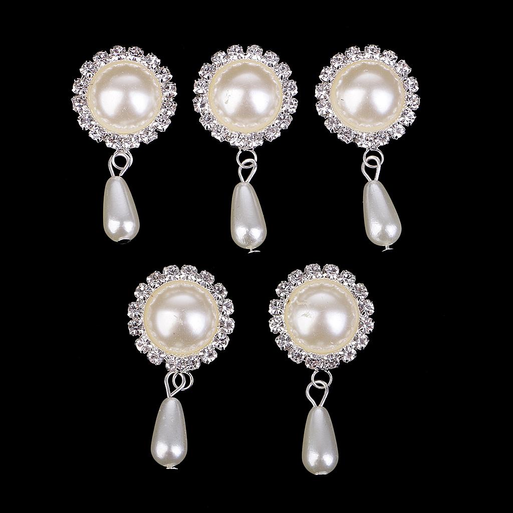 5 Pieces Dangle Pearl Rhinestone Flatback Buttons DIY Embellishments Beige