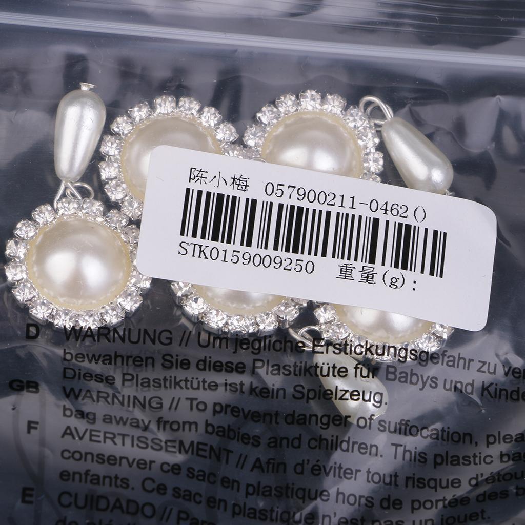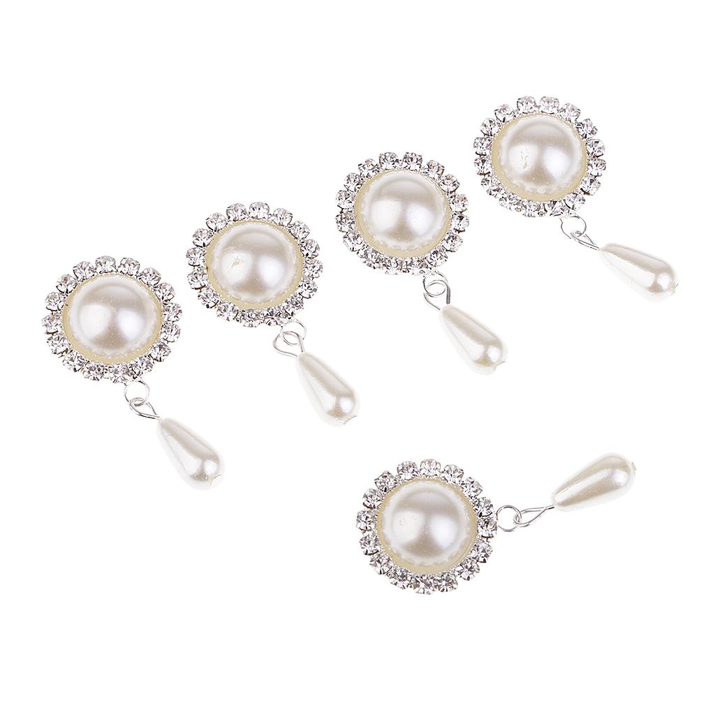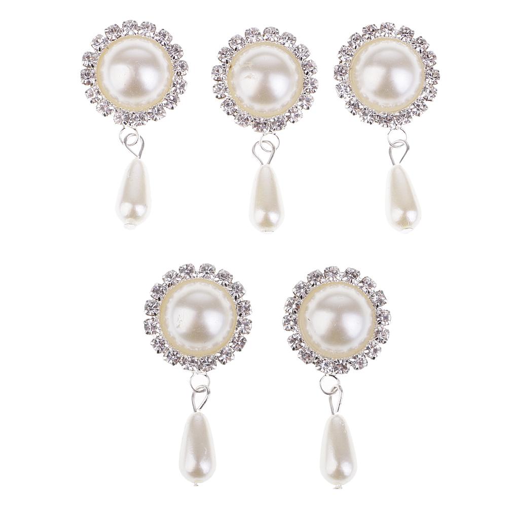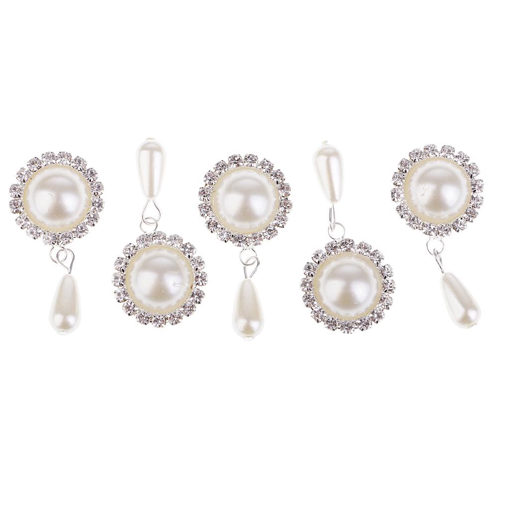 5 Pieces Dangle Pearl Rhinestone Flatback Buttons DIY Embellishments Beige