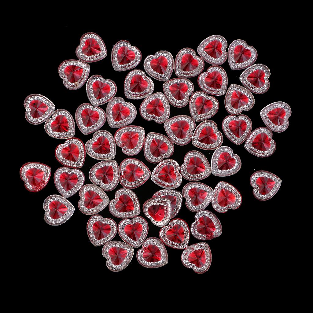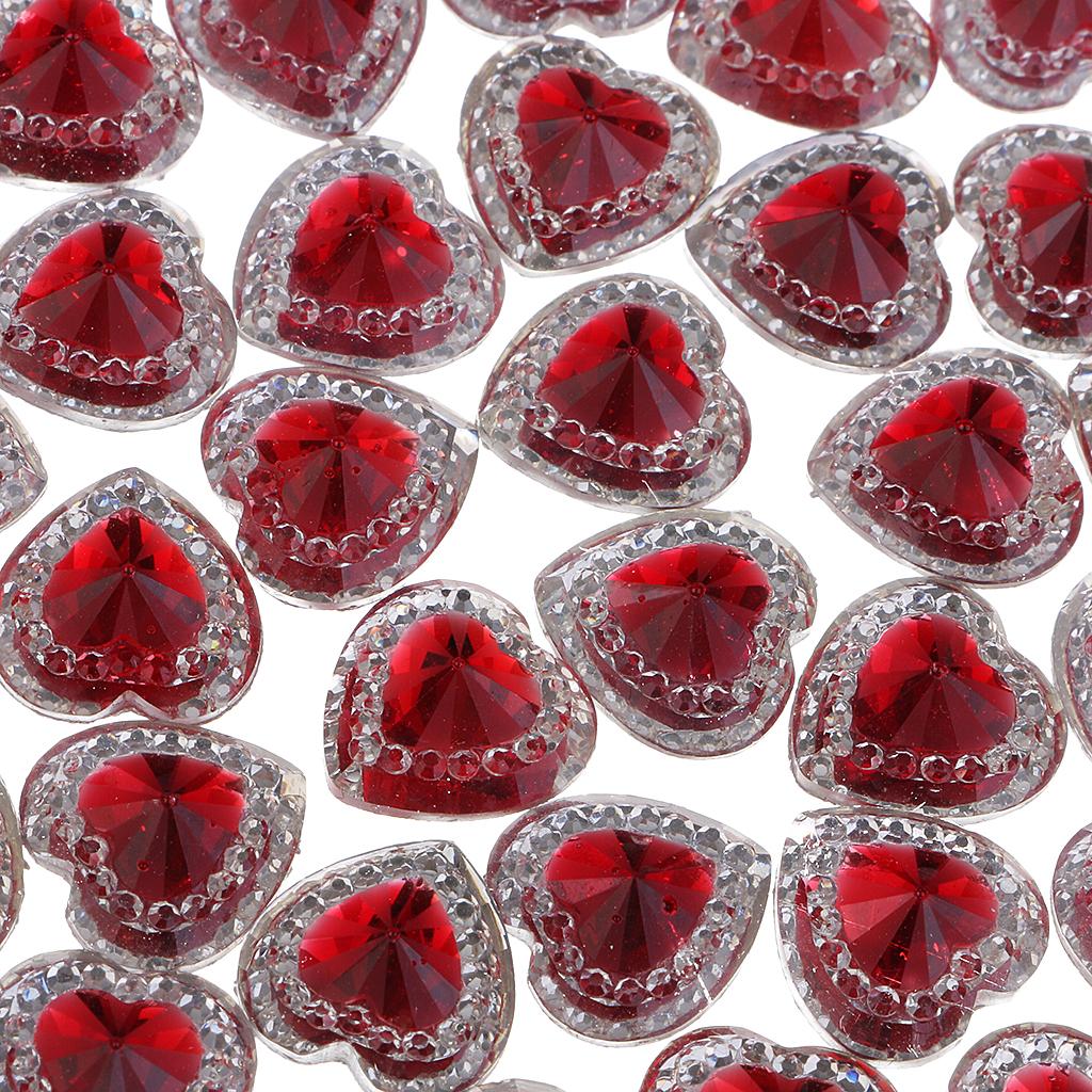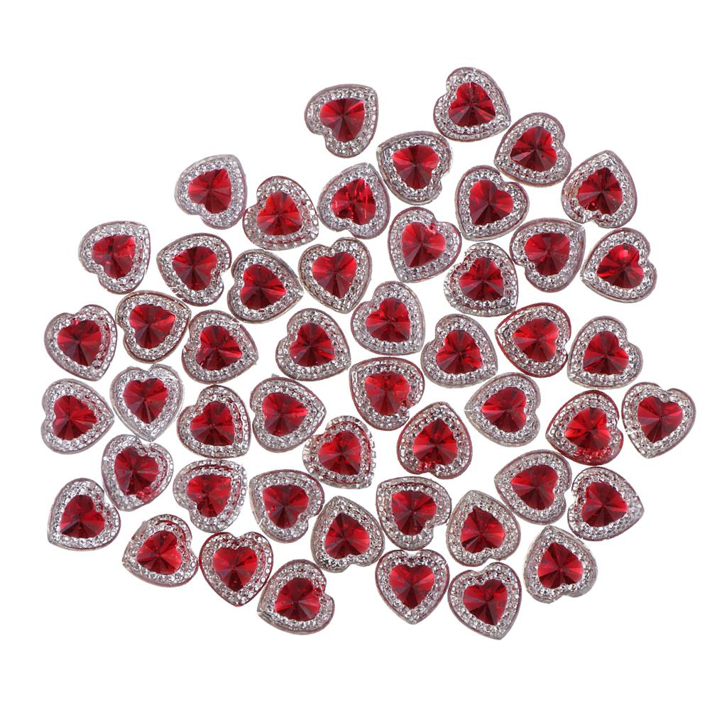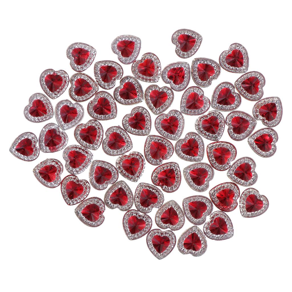 50 Pcs 12mm Heart Resin Rhinestone Flatback Buttons Double Drill Red