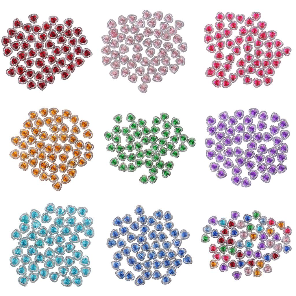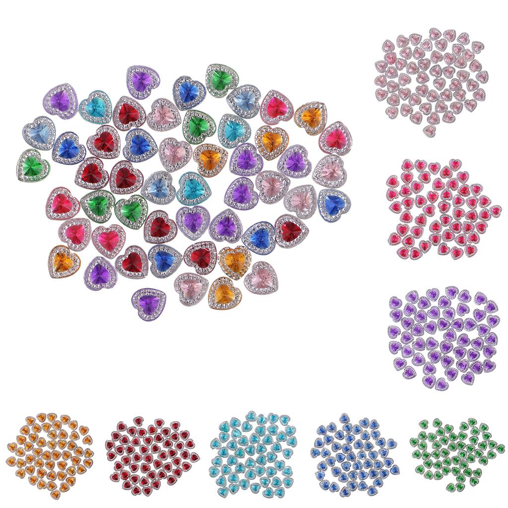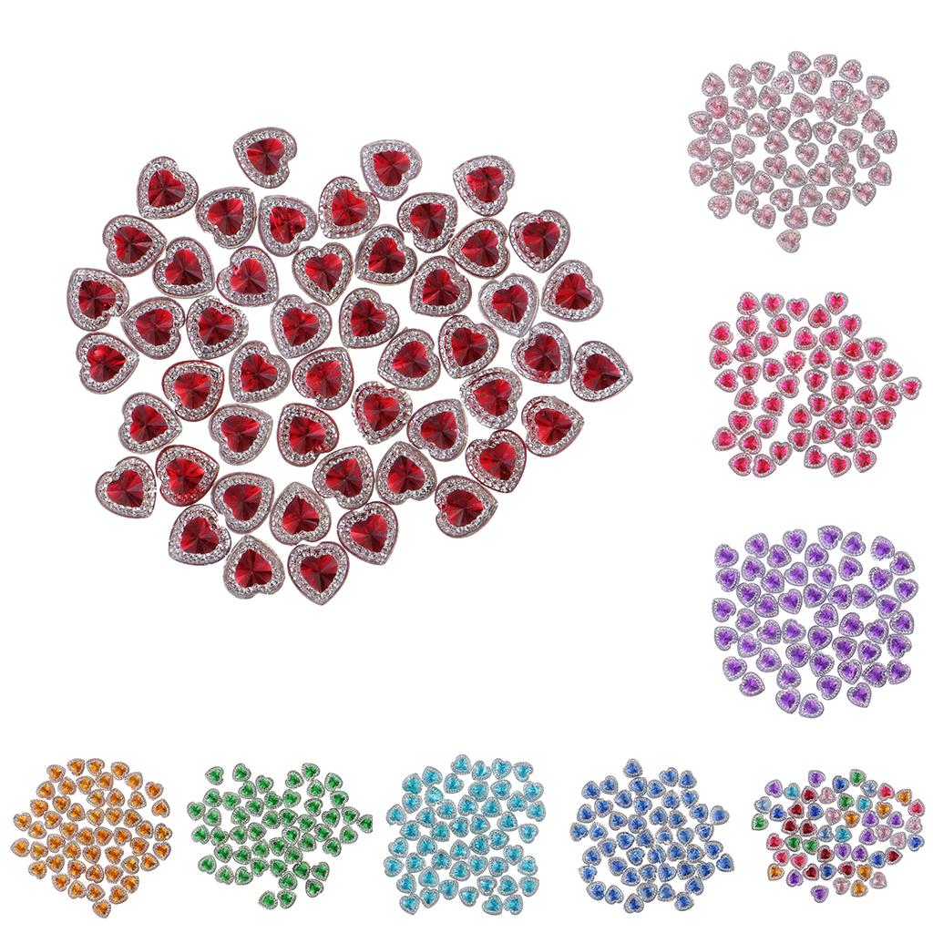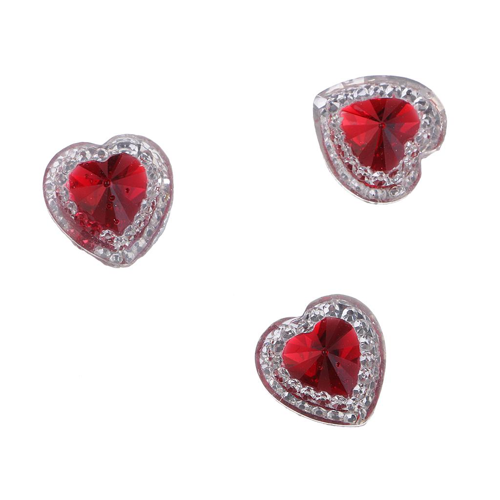 50 Pcs 12mm Heart Resin Rhinestone Flatback Buttons Double Drill Red