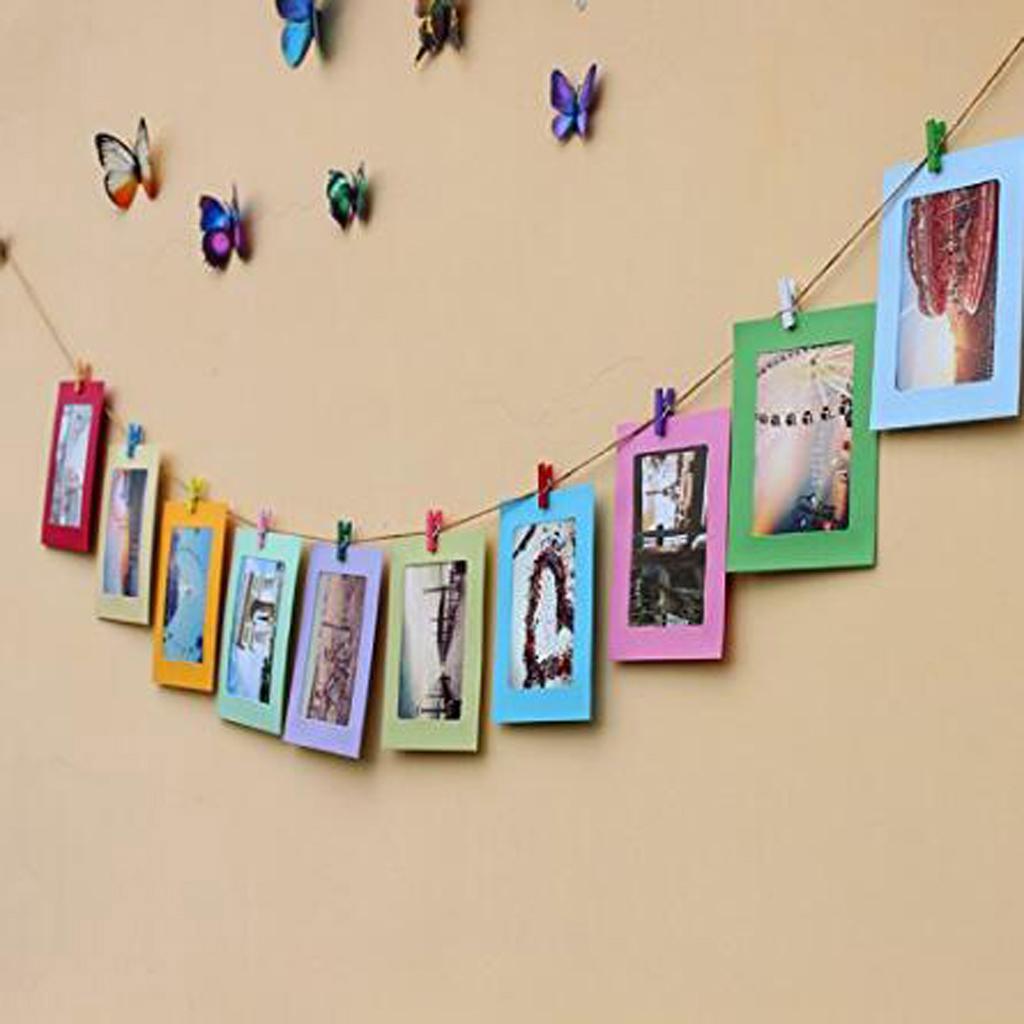 Fixed one string on the wall, make the clips go through the string and clip the photos/pictures/card/small towels/papers or anything you like.
