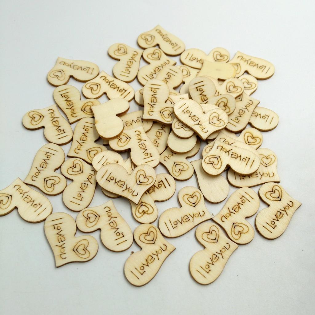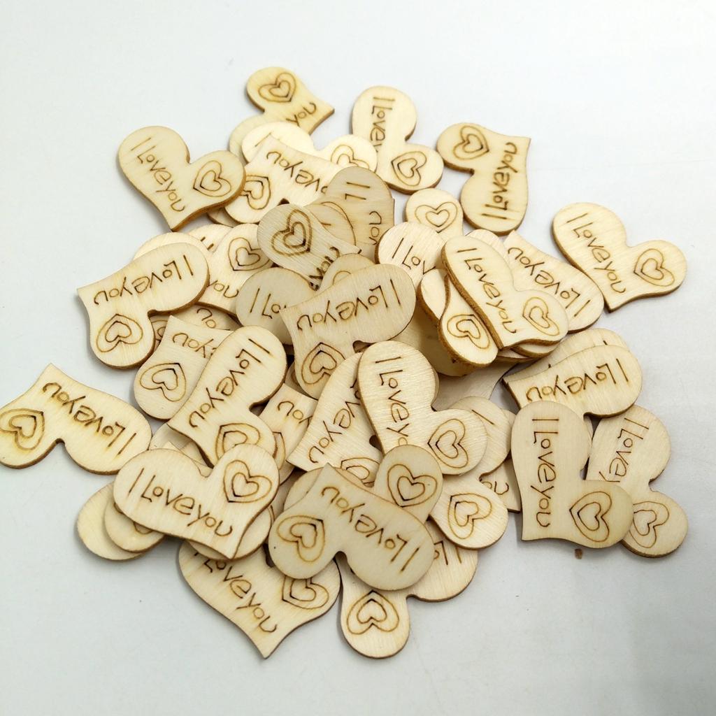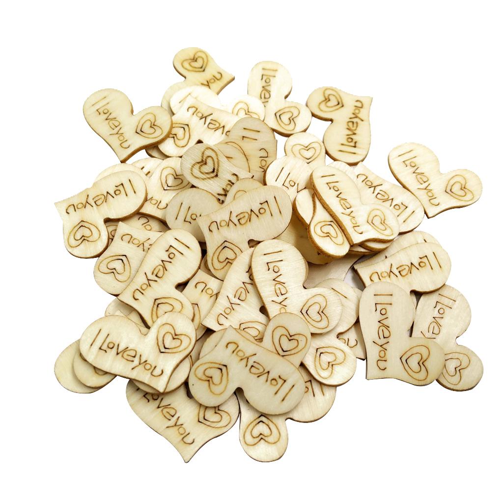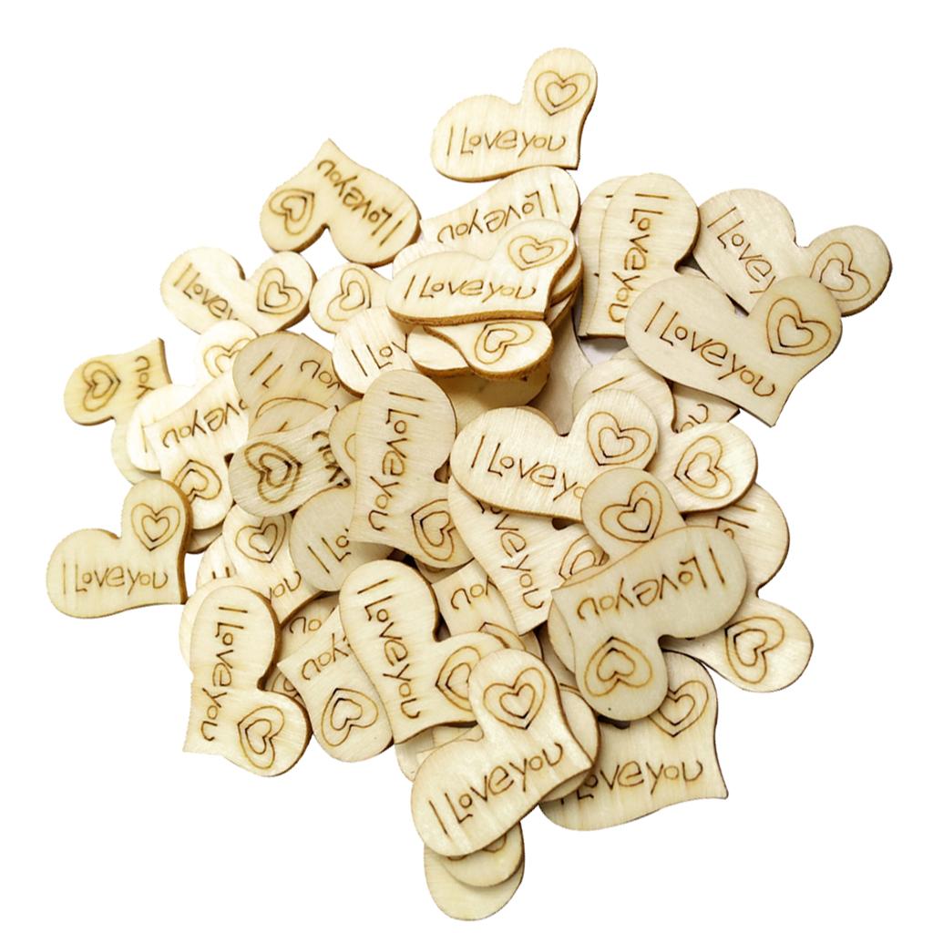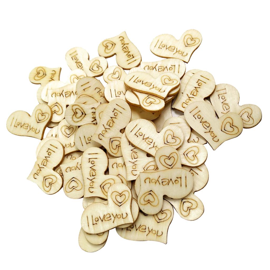 50 Pieces Wood Heart Shapes