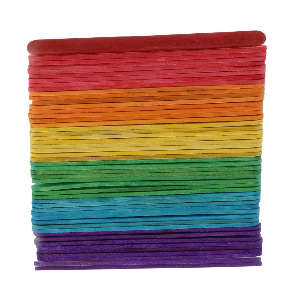 50 Pieces Multi-colored Wooden Popsicle Sticks for Diy Crafts S