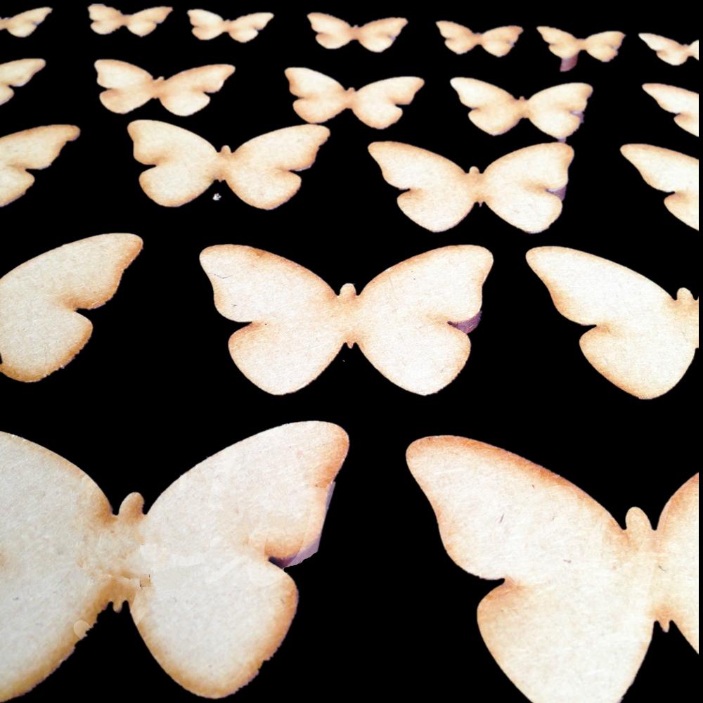 50 Wooden MDF Plain Butterfly Shapes 6cm x 3mm