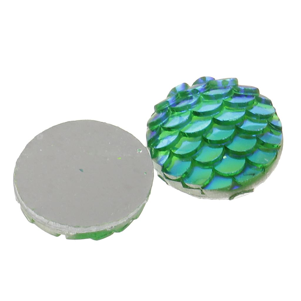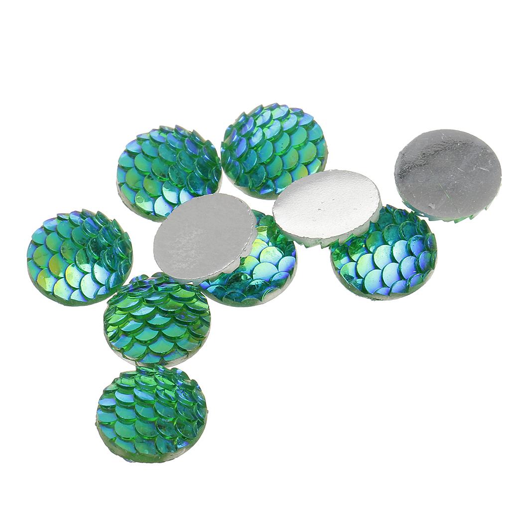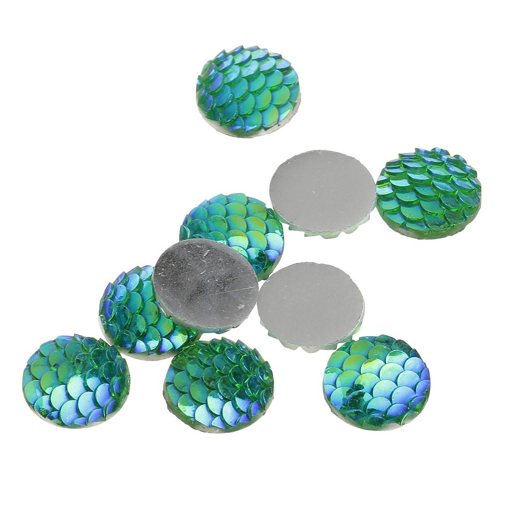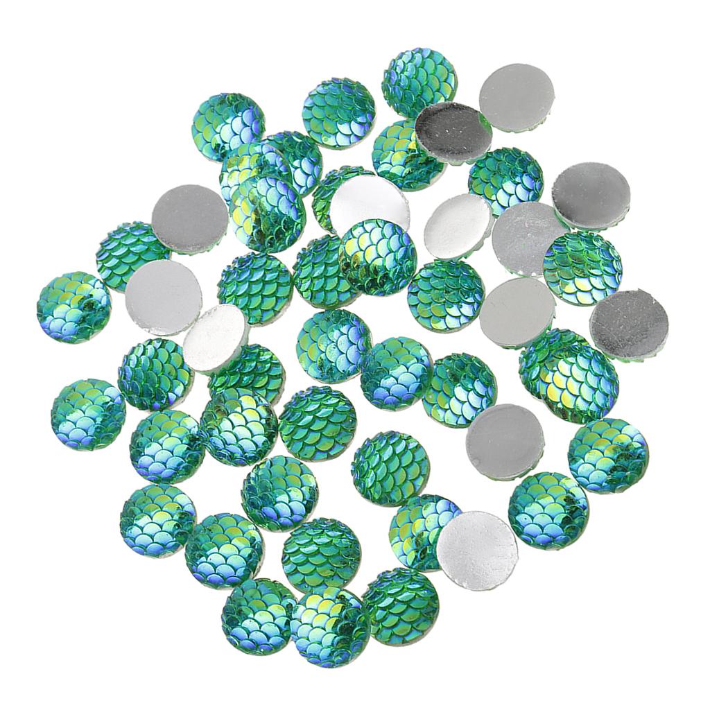 50pcs 12mm Resin Mermaid Fishscale Cabochon Multi Colour Round Green