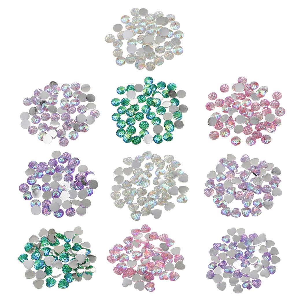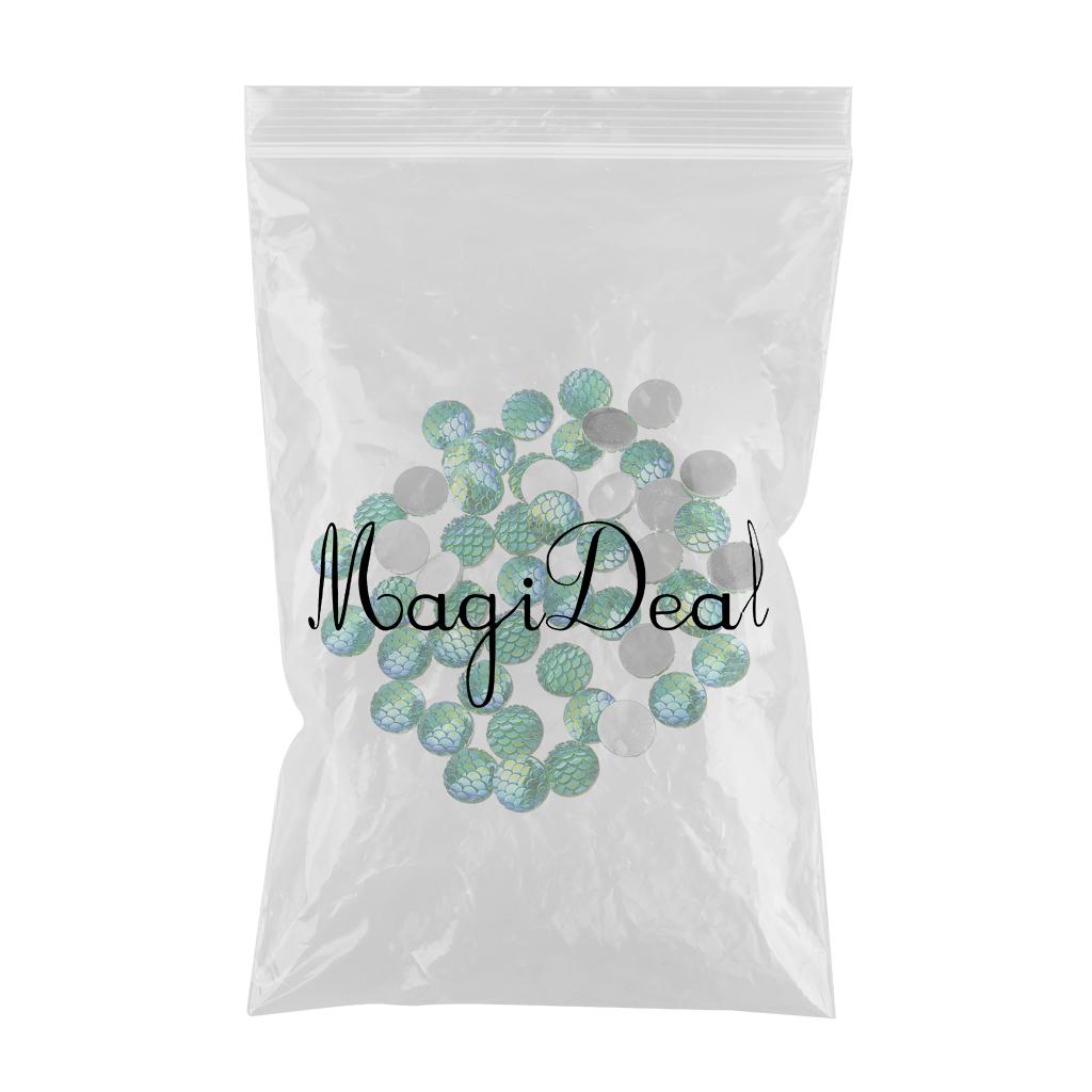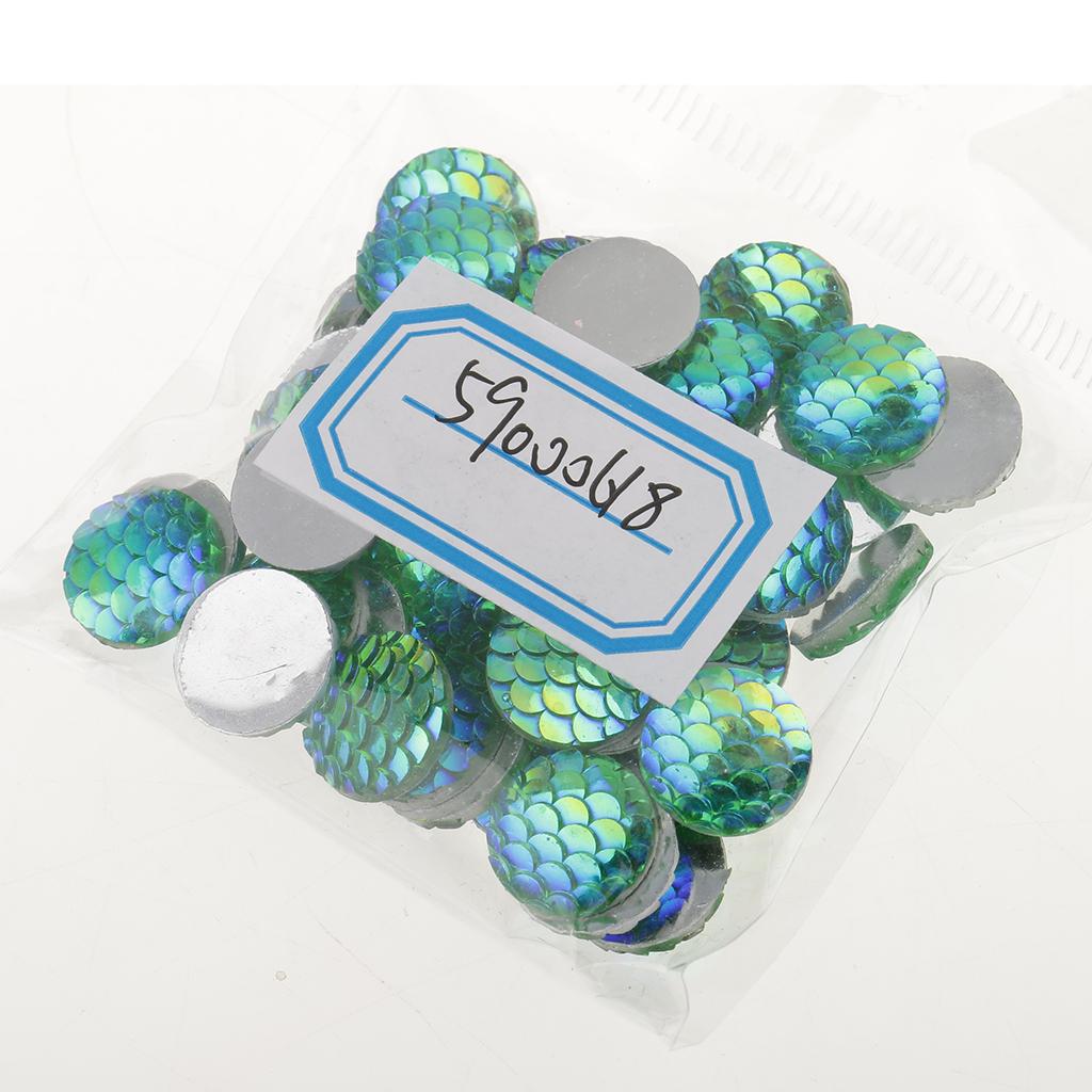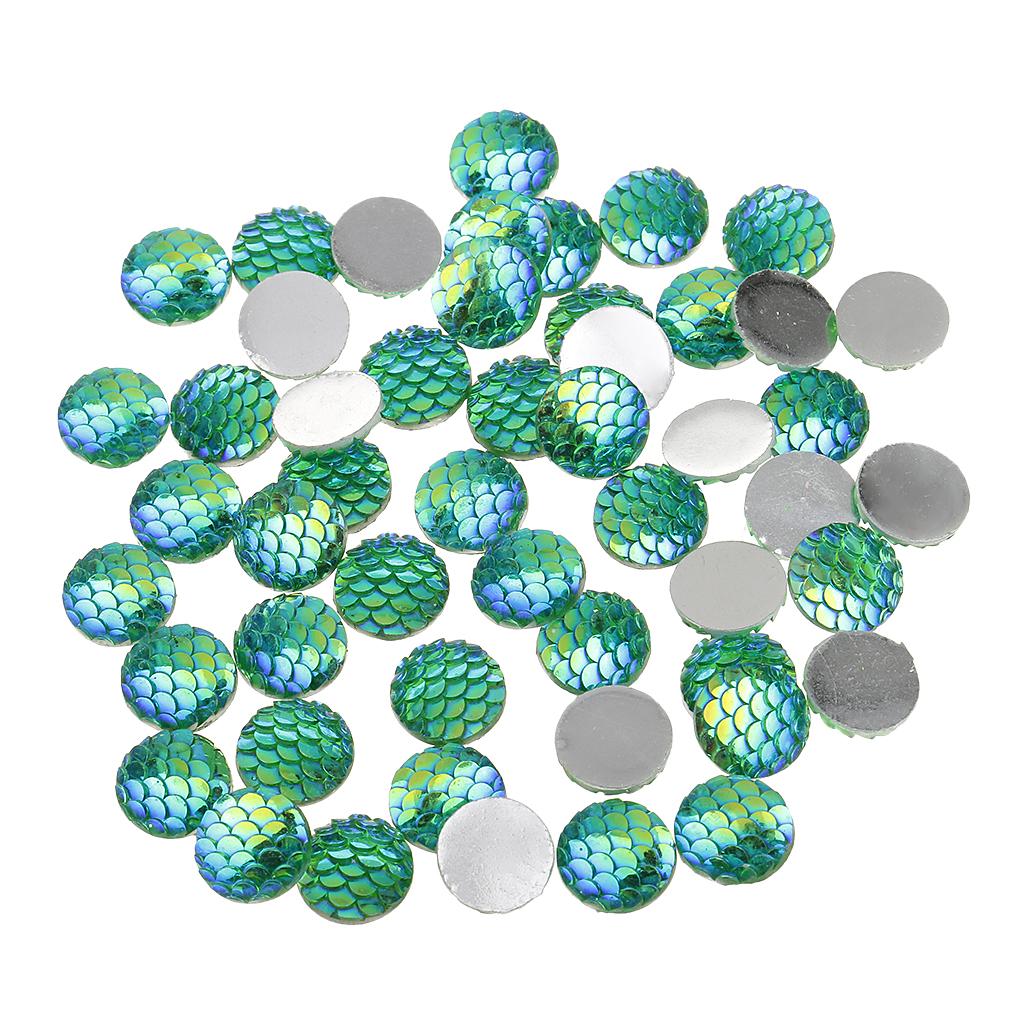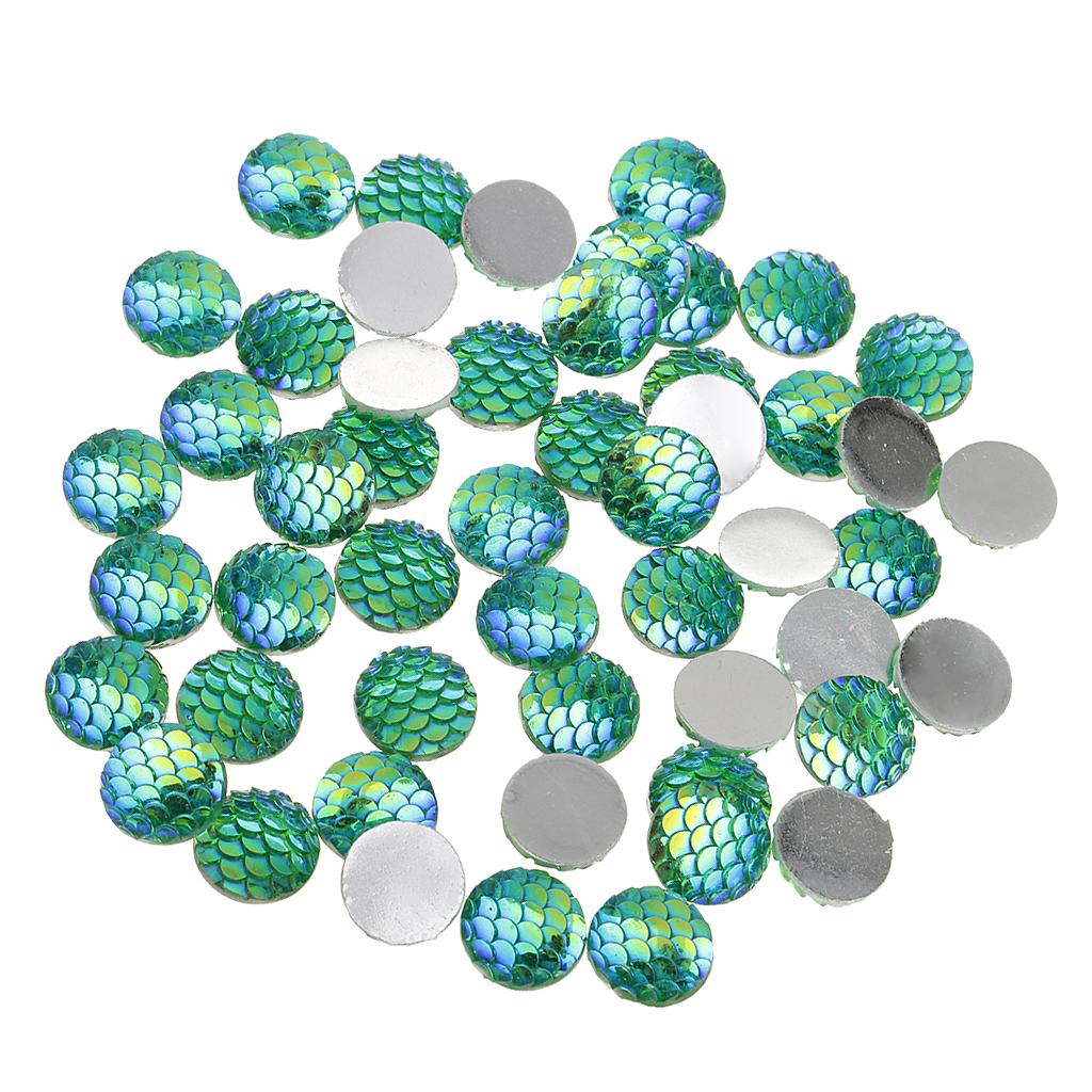 50pcs 12mm Resin Mermaid Fishscale Cabochon Multi Colour Round Green