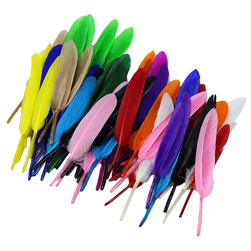 50pcs Dyed Goose Feather Jewelry Decor Headgear DIY Crafts 4-6inch Assorted