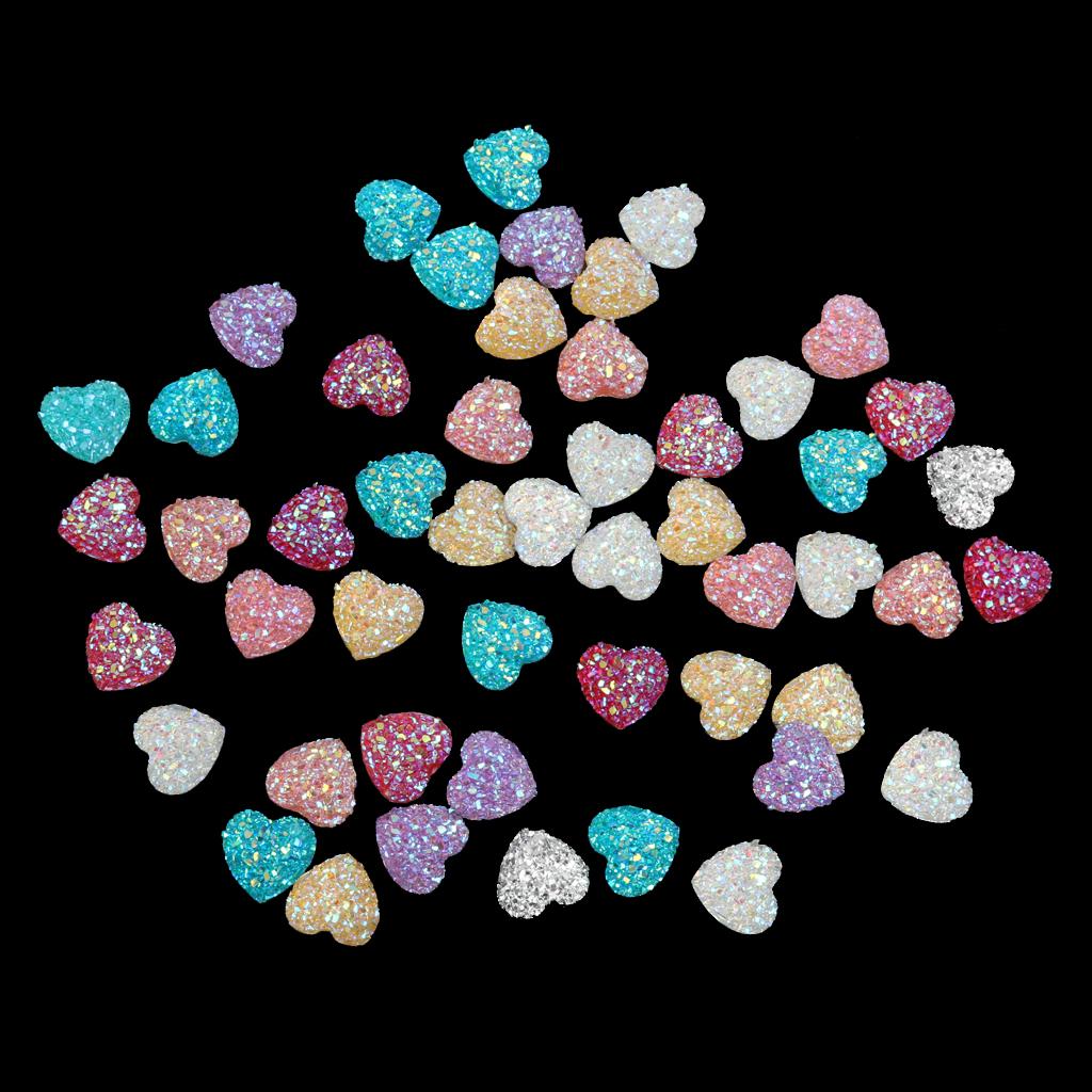 50PCS Mixed Resin Rhinestone Heart Flatback Embellishments for Scrapbooking