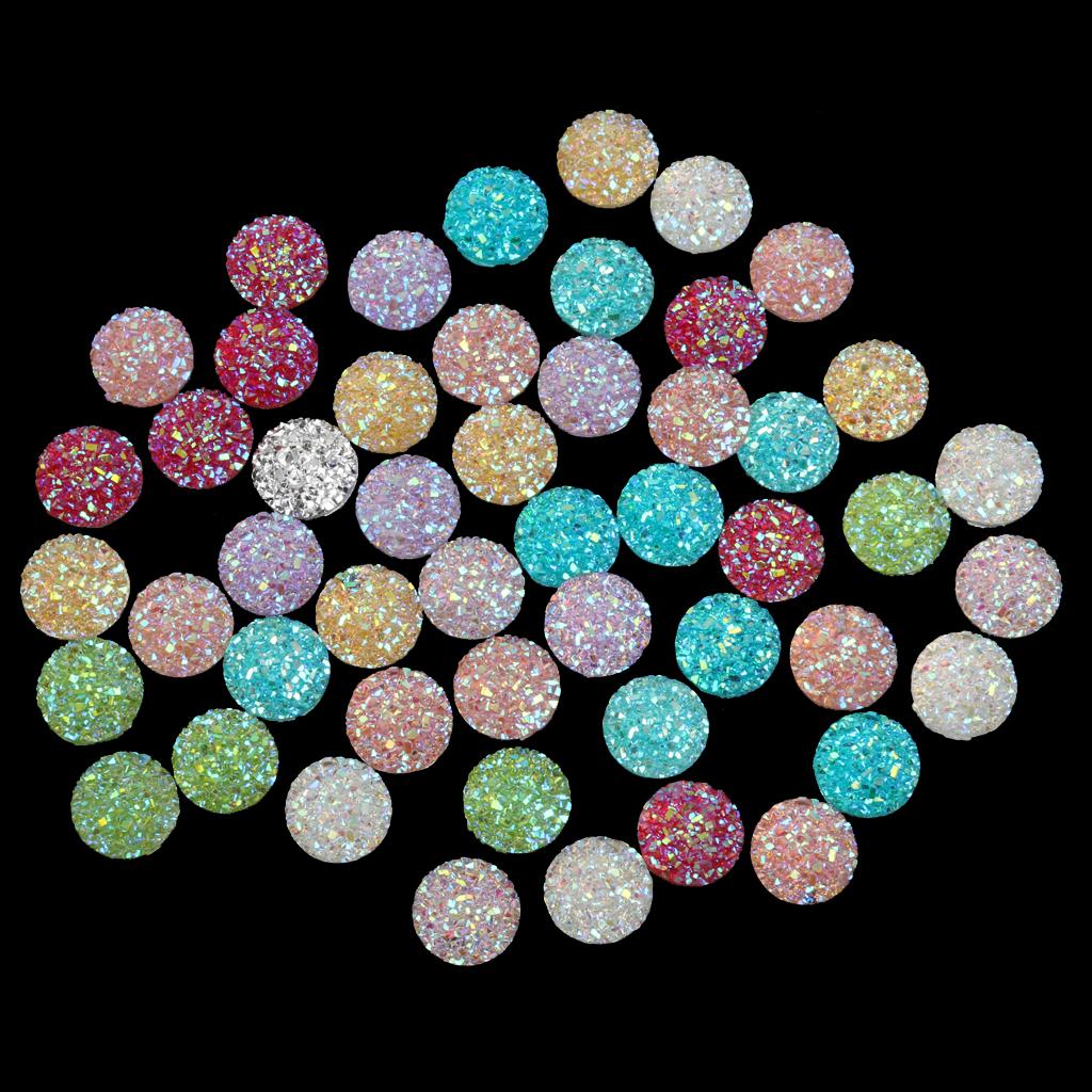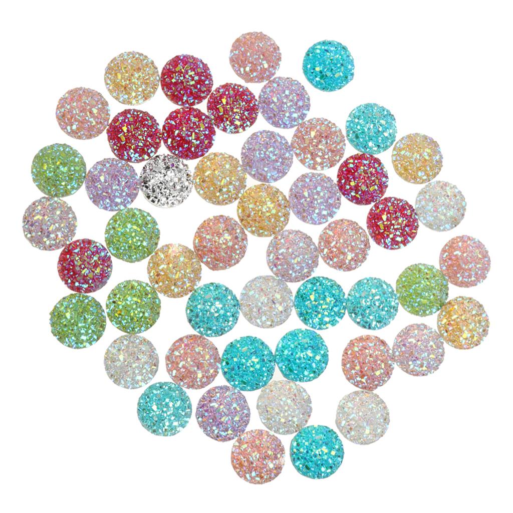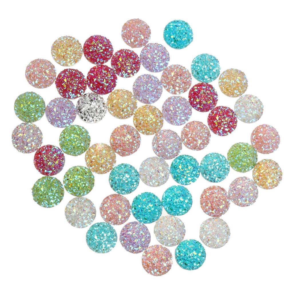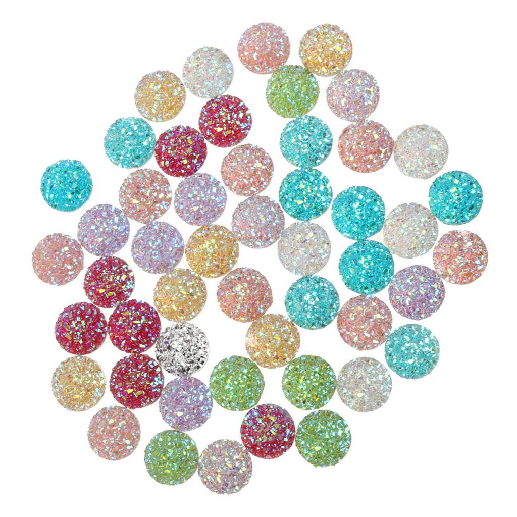 50PCS Mixed Resin Rhinestone Round Flatback Embellishments for Scrapbooking